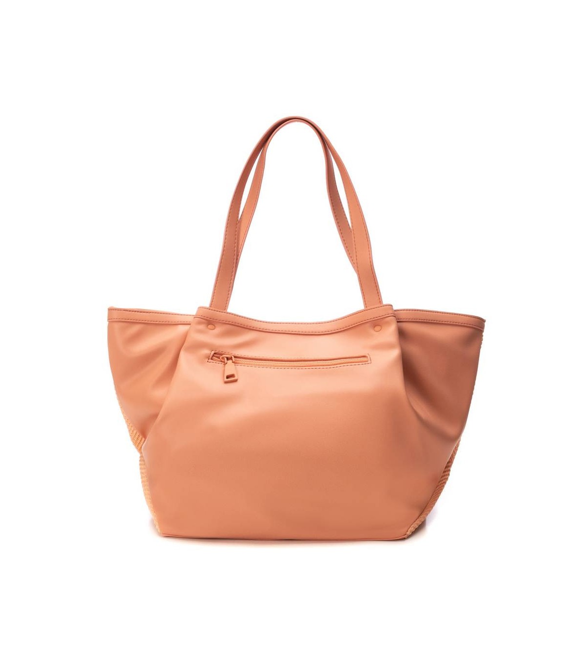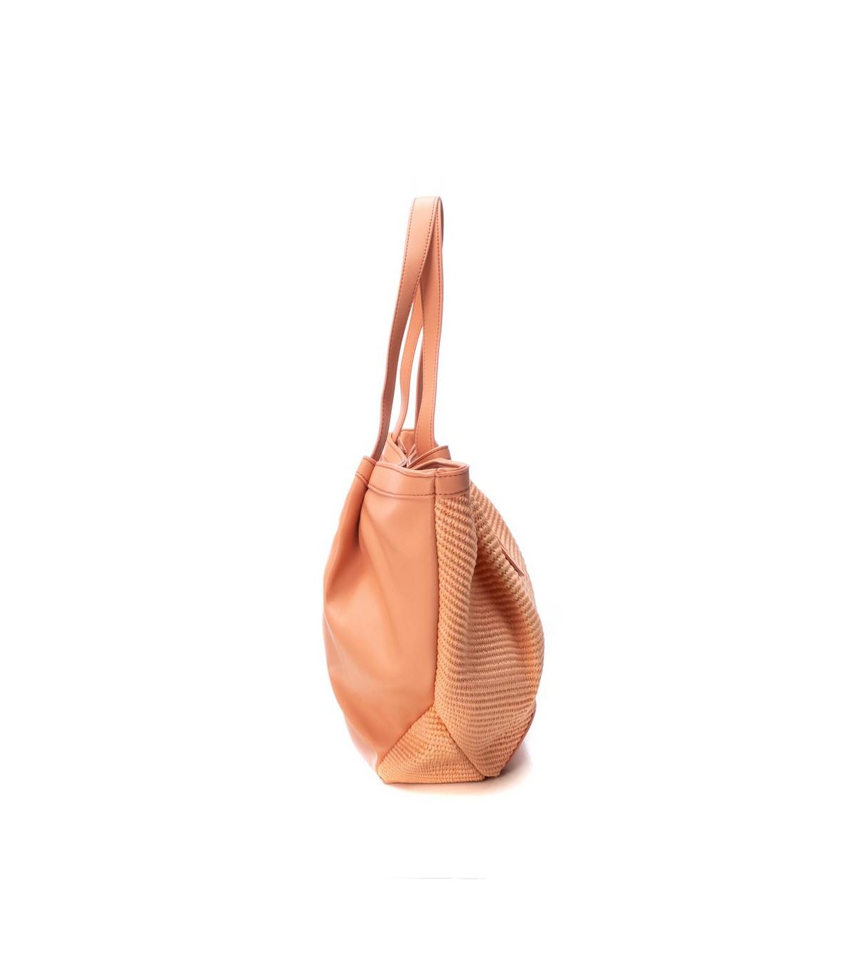 Bolso grande de hombro, marca Xti. Fabricado en rafia de alta calidad. Colores veraniegos para esta temporada. Cómodo y práctico para llevar todas tus pertenencias. Medidas 29x45x15cm. Este modelo ha obtenido el certificado vegano por la organización mundial PETA (Organización de los derechos de los animales).