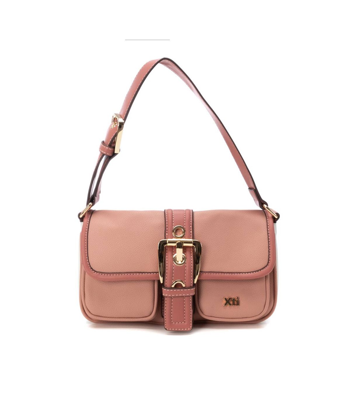 Bolso pequeño estilo bandolera, marca Xti. Fabricado en material que imita la piel. Cierre mediante botón. Bolso cómodo y práctico para tu día a día. Medidas 19x26x5 cm. Este modelo ha obtenido el certificado vegano por la organización mundial PETA (Organización de los derechos de los animales).
