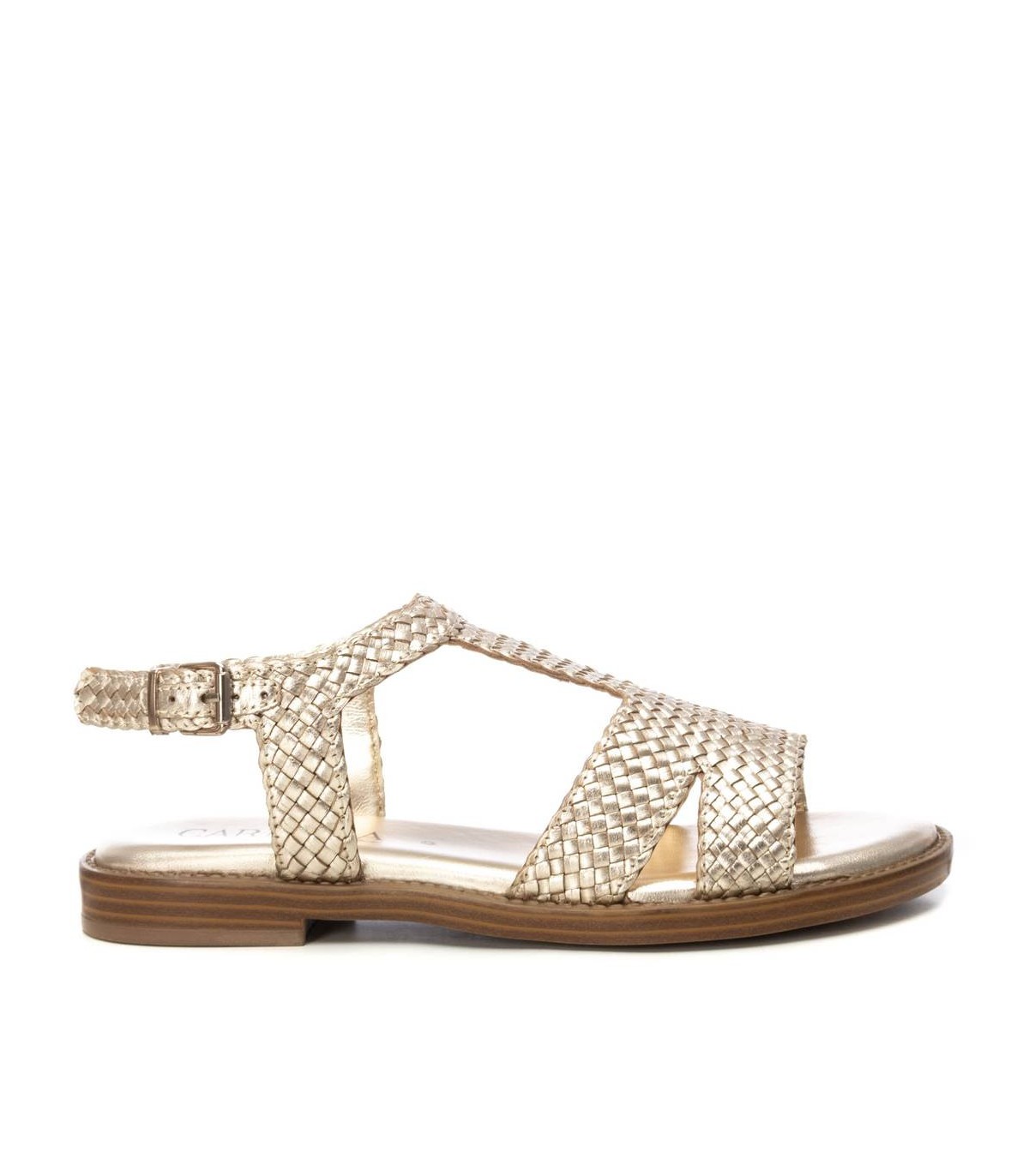 Sandalia plana de mujer, marca Carmela. Fabricada en piel de alta calidad. Modelo combinable con todo tipo de looks veraniegos. Atada al tobillo, cierre mediante hebilla para mayor comodidad. Suela antideslizante.