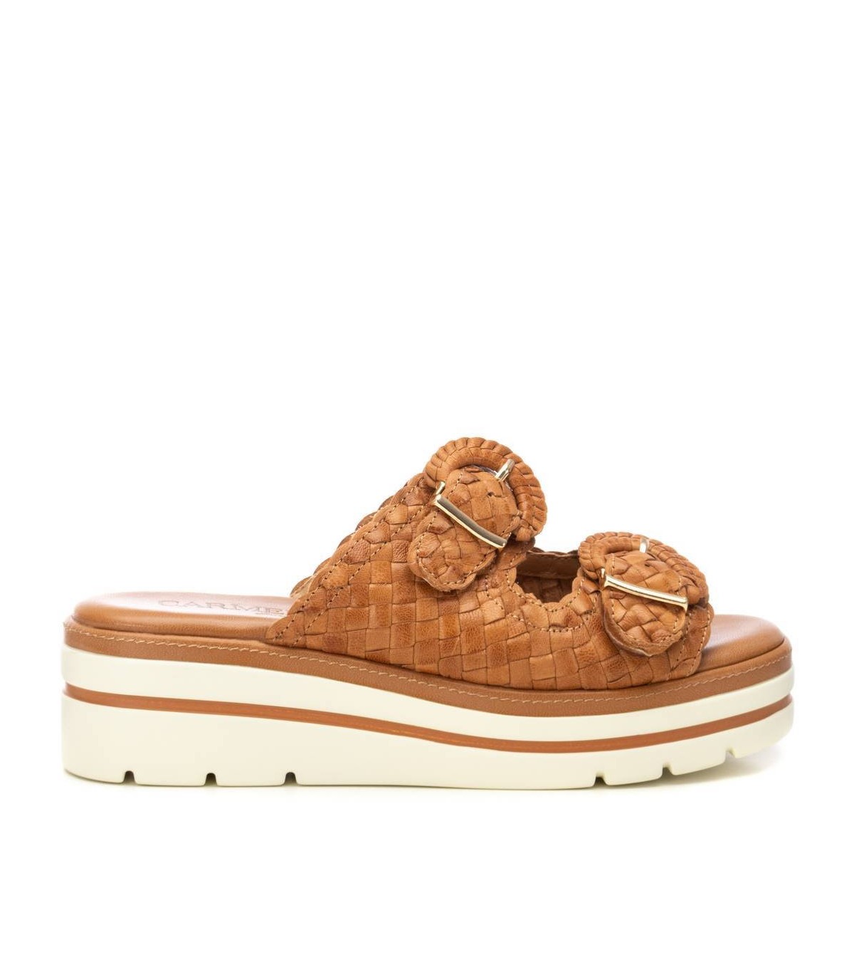 Sandalia de mujer, de la marca Carmela. Fabricado en piel de alta calidad. Hebillas funcionales para un buen ajuste. Cómoda planta para disfrutar de los días de verano.