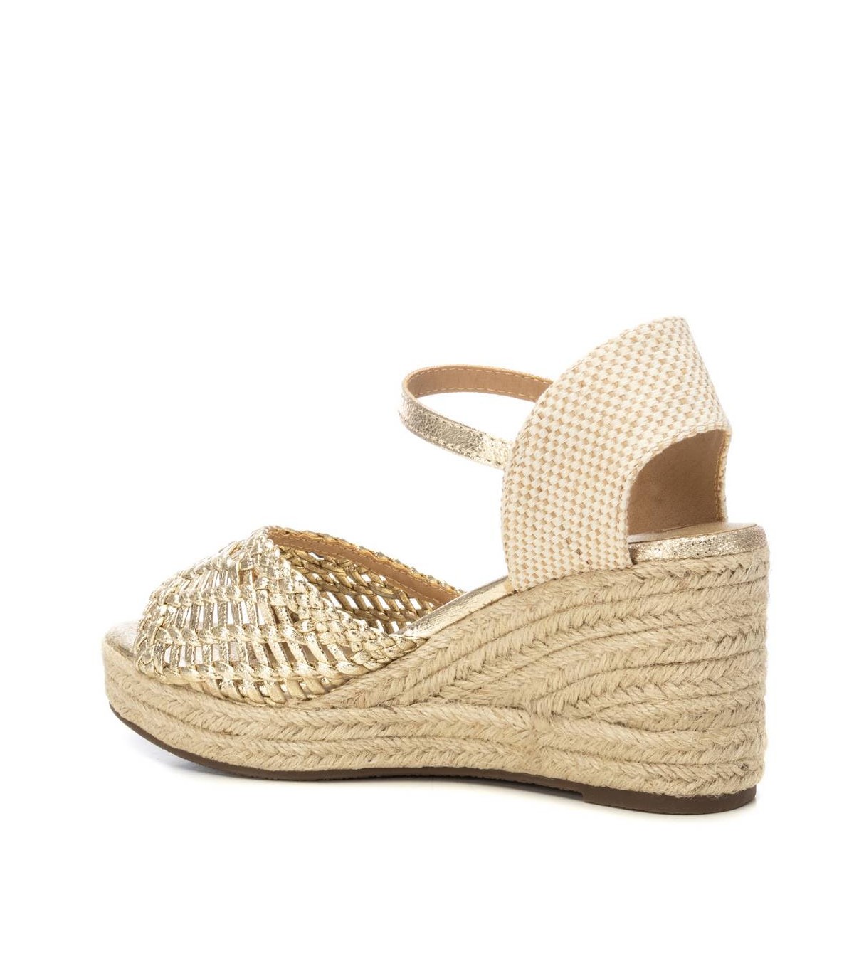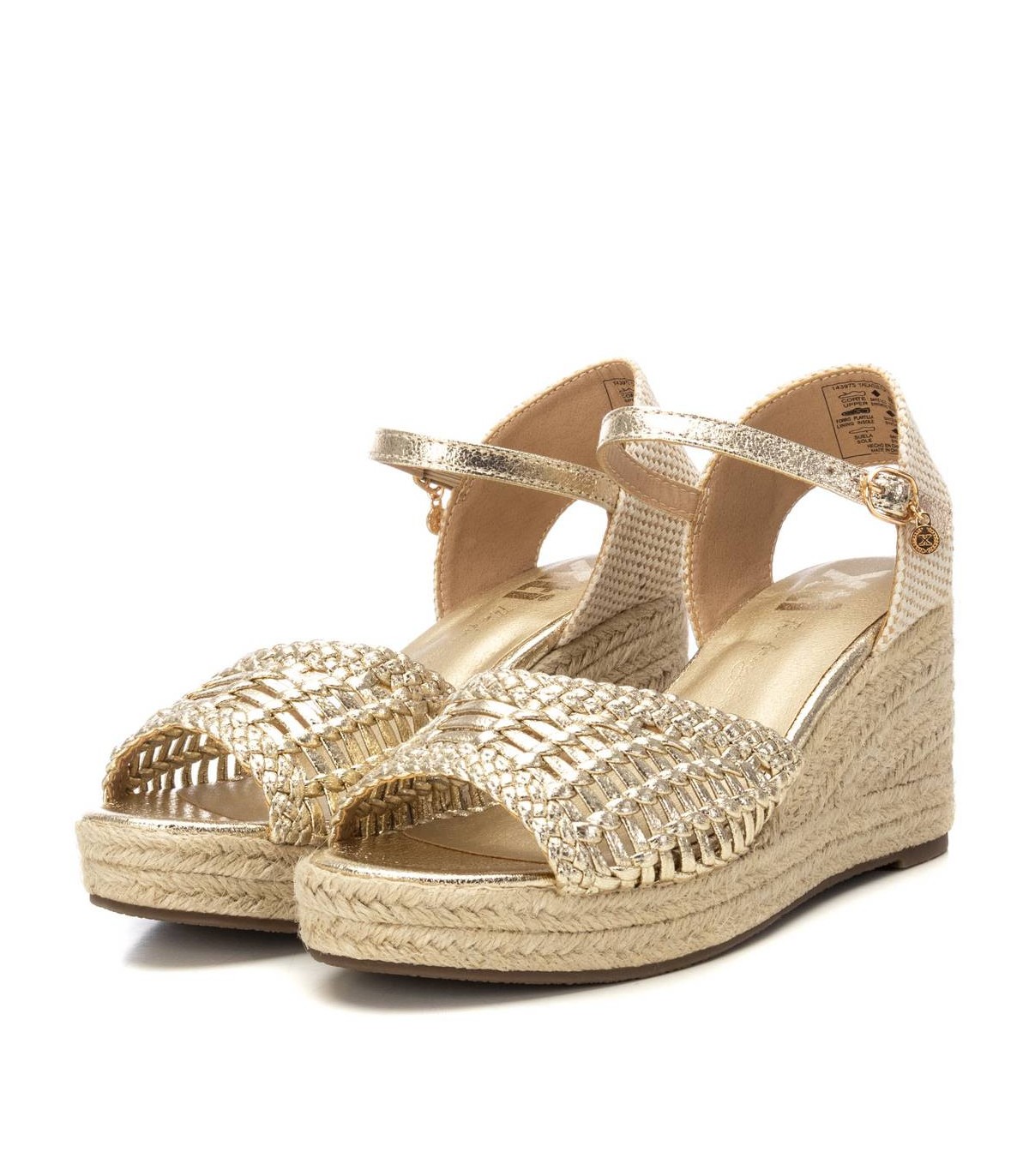 Sandalia de mujer con cuña , de la marca Xti. Diseño de pala y pulsera fabricadas en material textil. Cierre mediante hebilla metálica para facilitar el ajuste. Cuña con suela antideslizante. Este modelo ha obtenido el certificado vegano por la organización mundial PETA (Organización de los derechos de los animales).