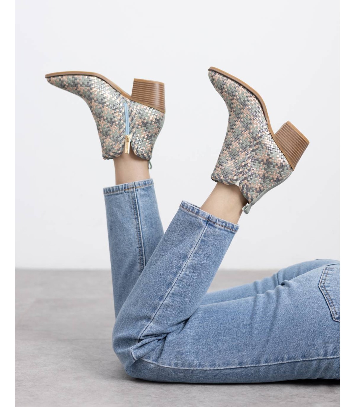 Botín de mujer, de la marca Carmela. Fabricado en piel de alta calidad. Cierre mediante cremallera lateral. Tacón ancho. Suela antideslizante. Modelo sencillo, pero en tendencia que combinará perfecto con tus looks de verano.
