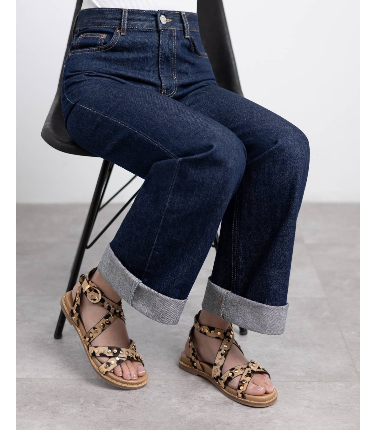 Sandalia de mujer, marca Carmela. Fabricada en piel de alta calidad. Sandalia estilo romana. Diseñada con estampado en tendencia, decorada con tachas. Forman un diseño atractivo y elegante. Cómoda planta y suela antideslizante.