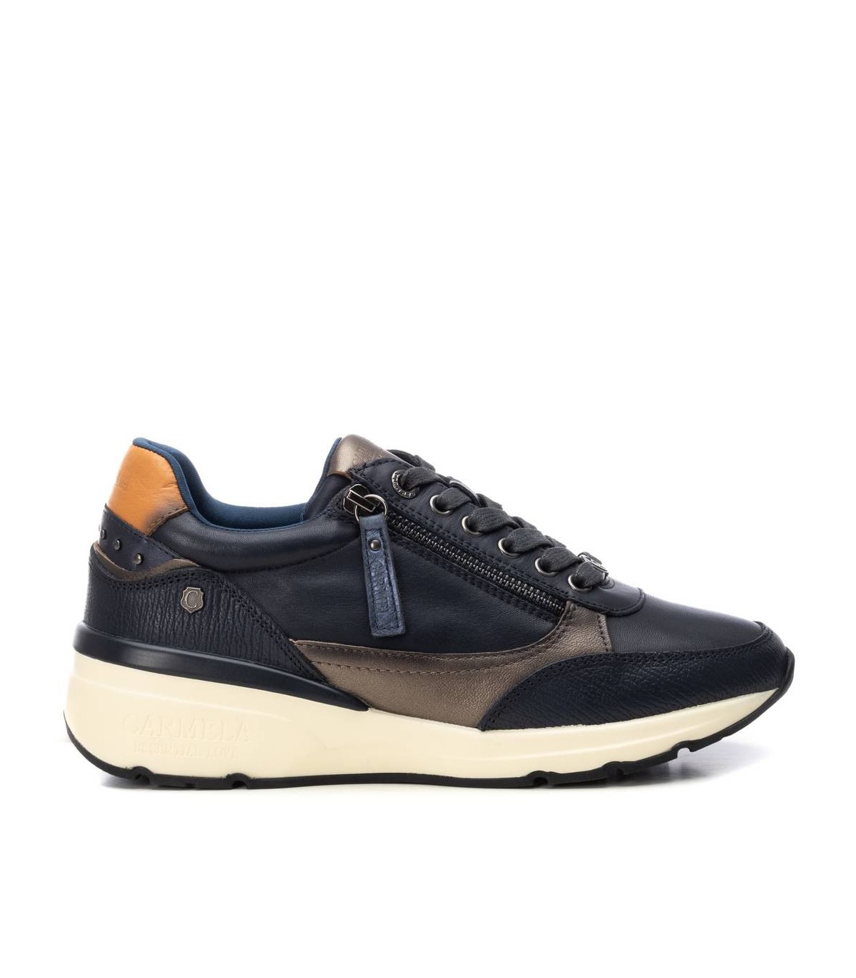 Zapatilla de mujer, de la marca Carmela. Fabricada en piel de alta calidad. Cierre mediante cremallera lateral y cordones ajustables. Sencilla y elegante, un básico para tu armario. Suela de goma con volumen antideslizante. Con plantilla extraíble.