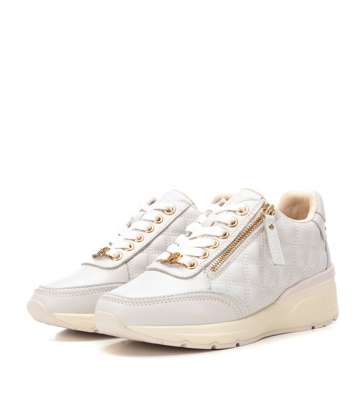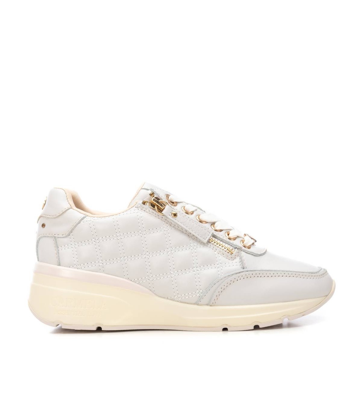 Zapatilla de mujer, de la marca Carmela. Fabricado en piel de alta calidad. Acolchado decorativo. Cierre cremallera lateral y cordones ajustables para mayor comodidad. Cuña deportiva de 4 cm, eleva tu look de invierno. Suela antideslizante. Con plantilla extraíble.