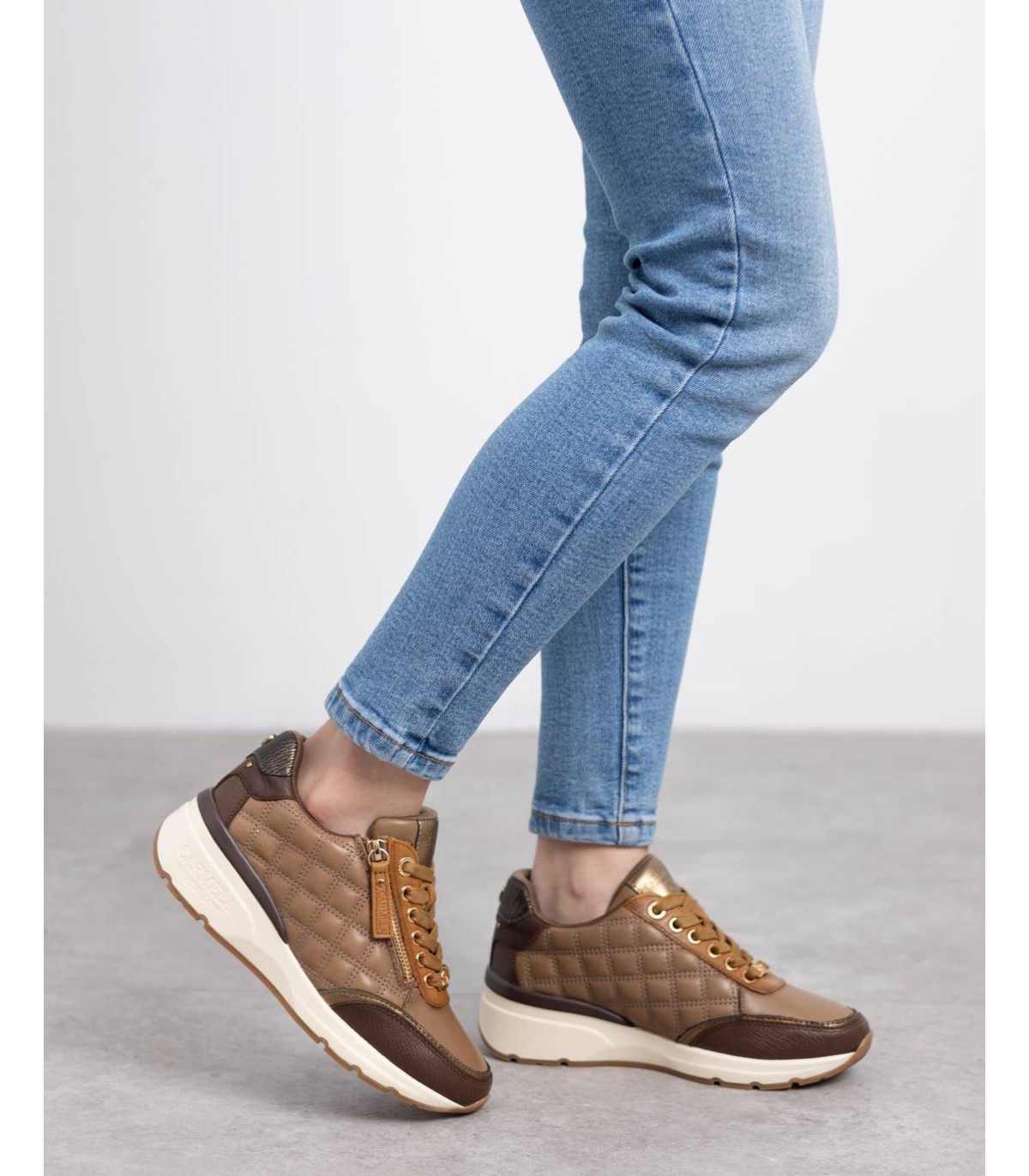Zapatilla de mujer, de la marca Carmela. Fabricado en piel de alta calidad. Acolchado decorativo. Cierre cremallera lateral y cordones ajustables para mayor comodidad. Cuña deportiva de 4 cm, eleva tu look de invierno. Suela antideslizante. Con plantilla extraíble.