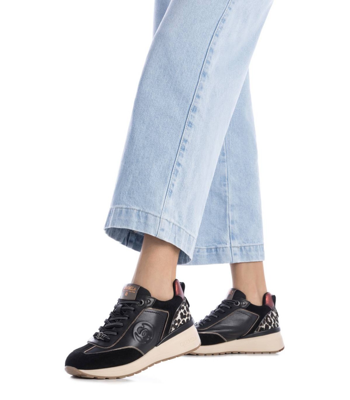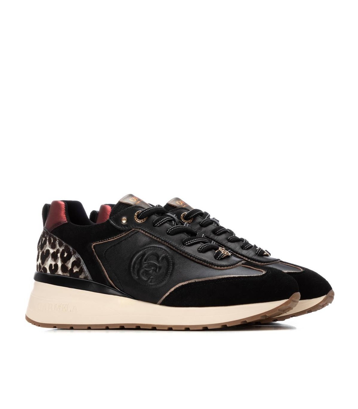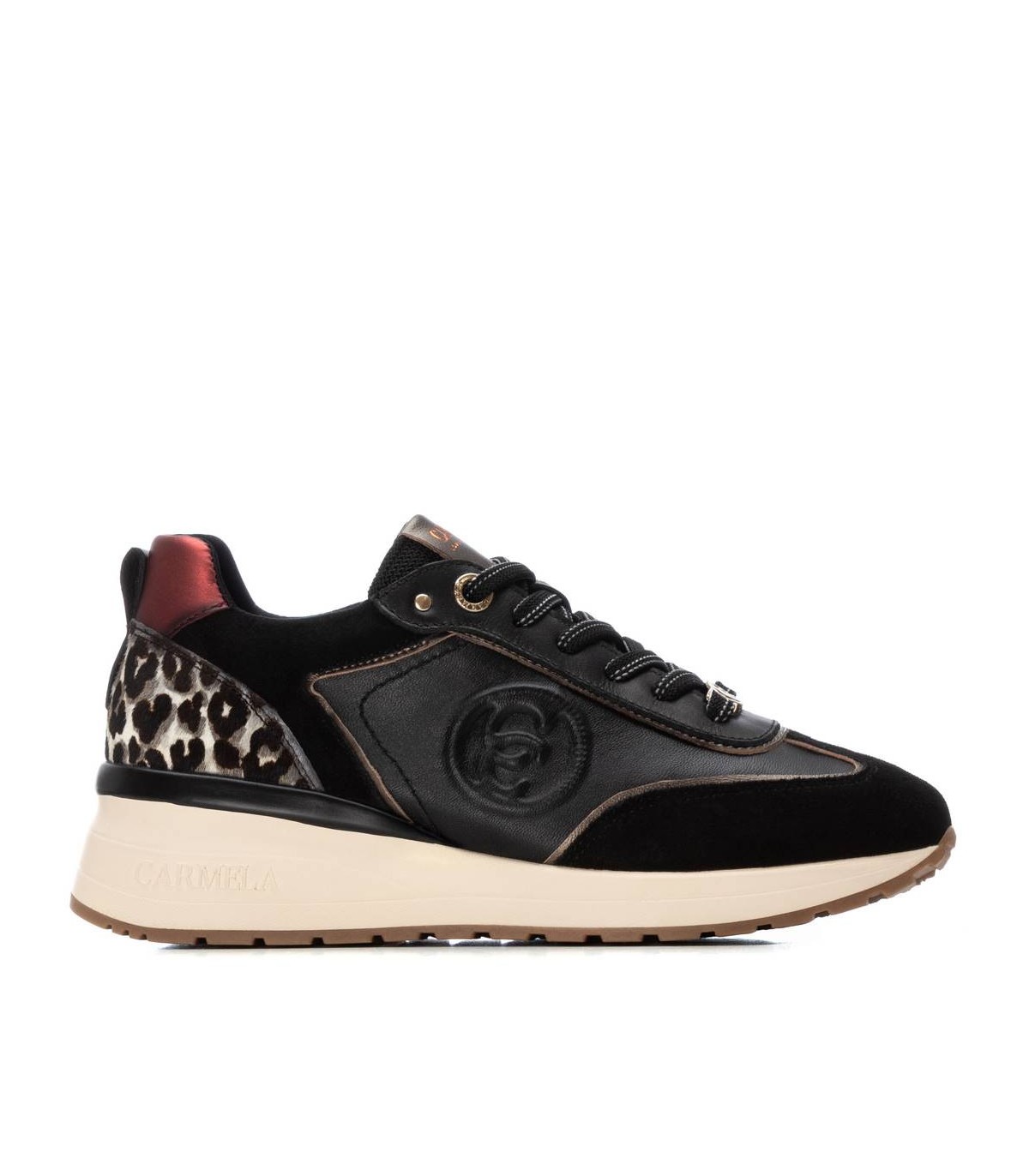 Zapatilla de mujer, de la marca Carmela. Fabricada en piel de alta calidad. Cierre mediante cordones ajustables. Detalle de piezas con efecto metalizado. Tirador trasero para facilitar la puesta. Suela de goma antideslizante. Plantilla extraíble.