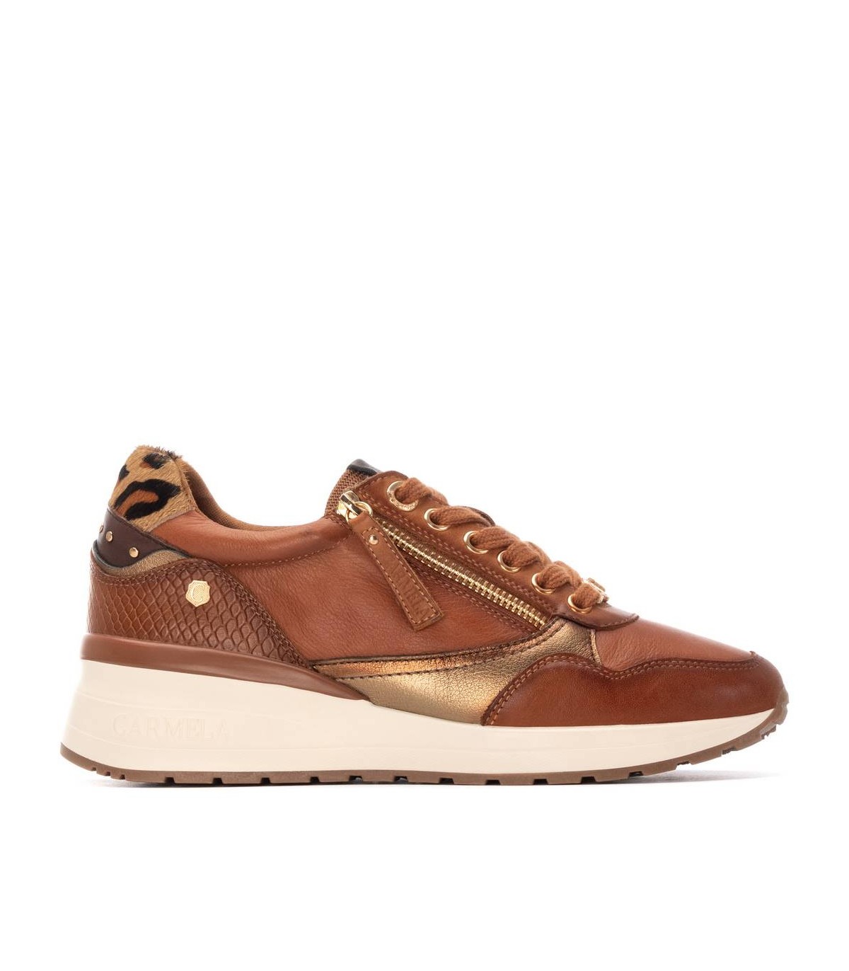 Zapatilla de mujer, de la marca Carmela. Fabricada en piel de alta calidad. Cierre mediante cremallera lateral y cordones ajustables. Detalle trasero con tachuelas pequeñas y detalles laterales con efecto metalizado. Sencilla y elegante, un básico para tu armario. Suela de goma, antideslizante. Con plantilla extraíble.