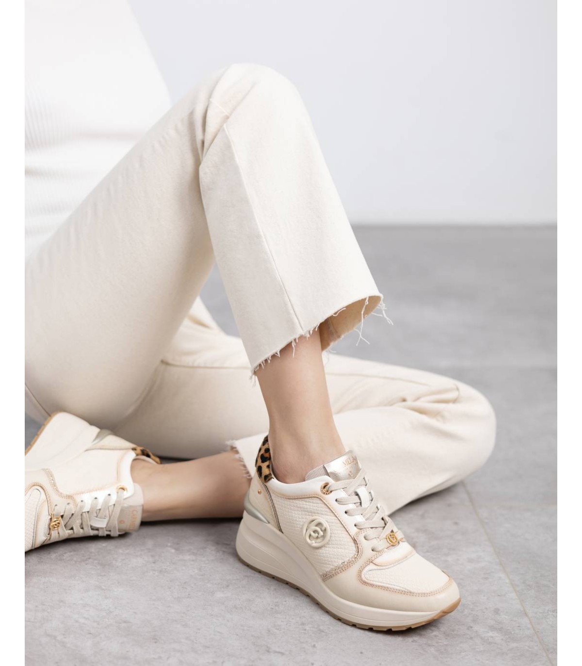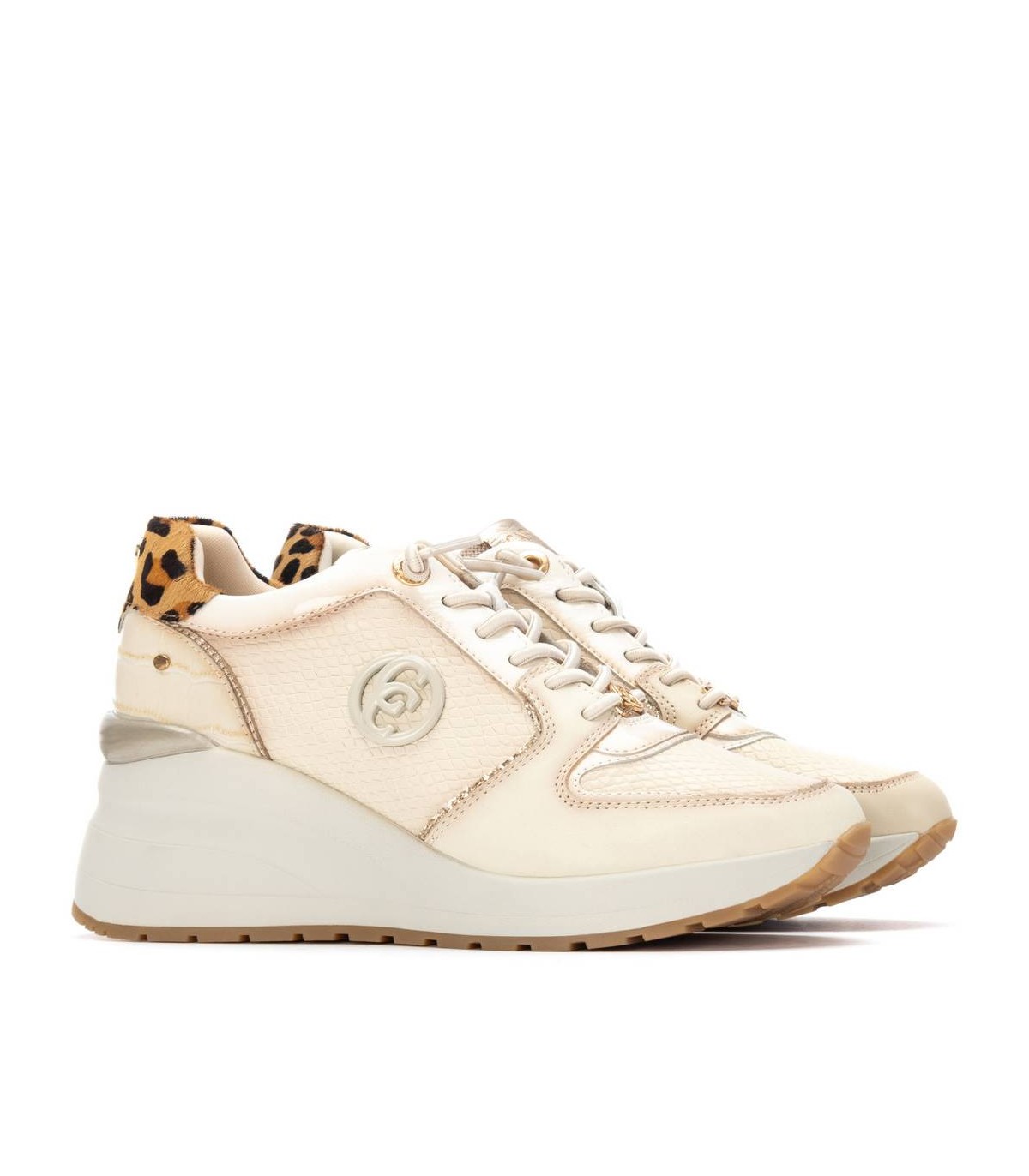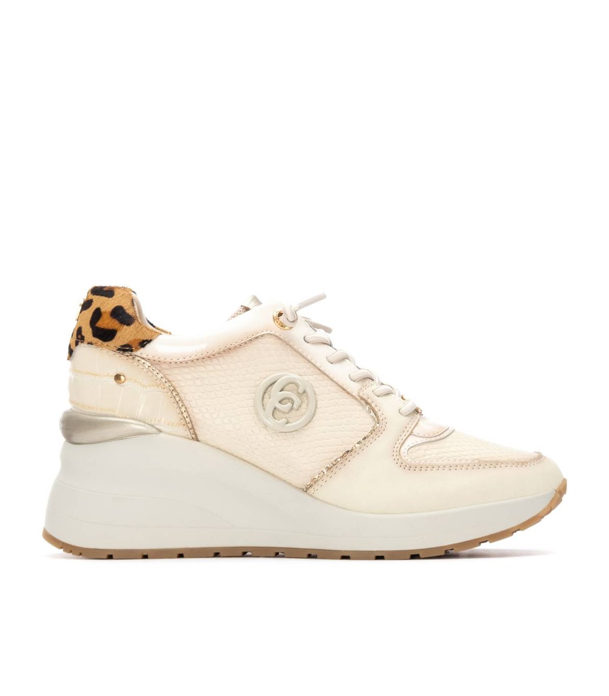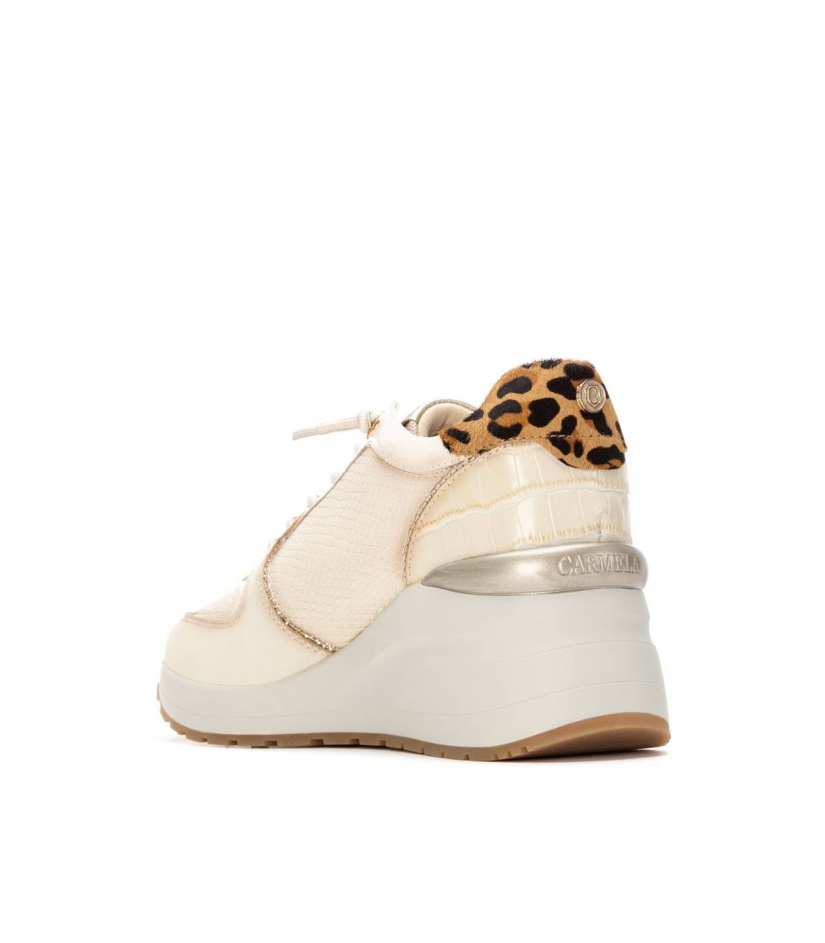 Zapatilla de mujer, de la marca Carmela. Fabricada en piel de alta calidad. Cierre mediante cordones. Detalle de pieza trasera con estampado. Suela de goma antideslizante. Plantilla extraíble.
