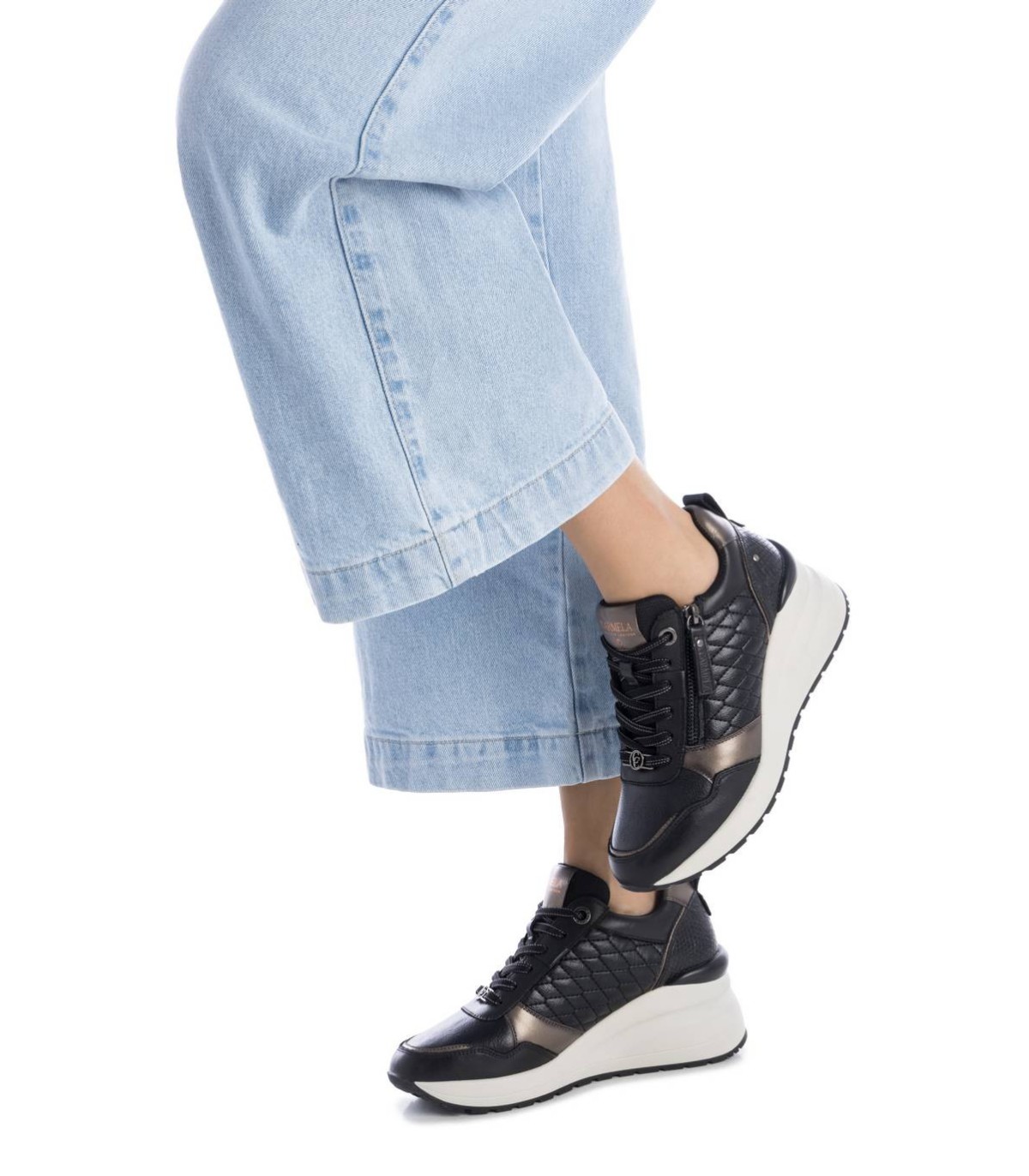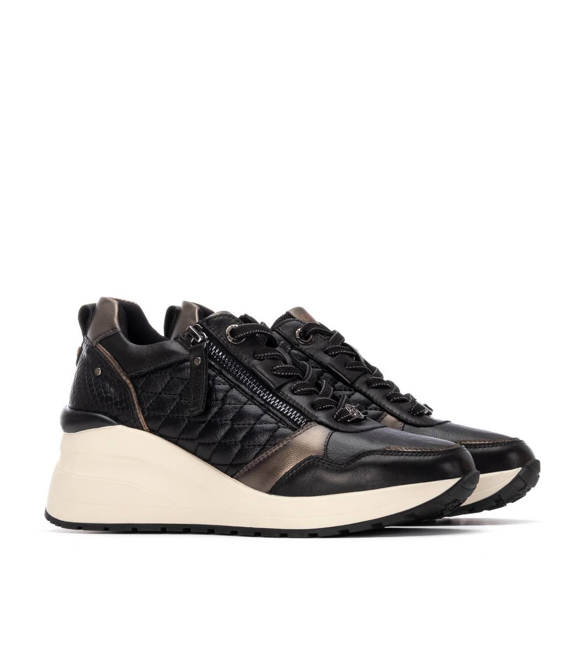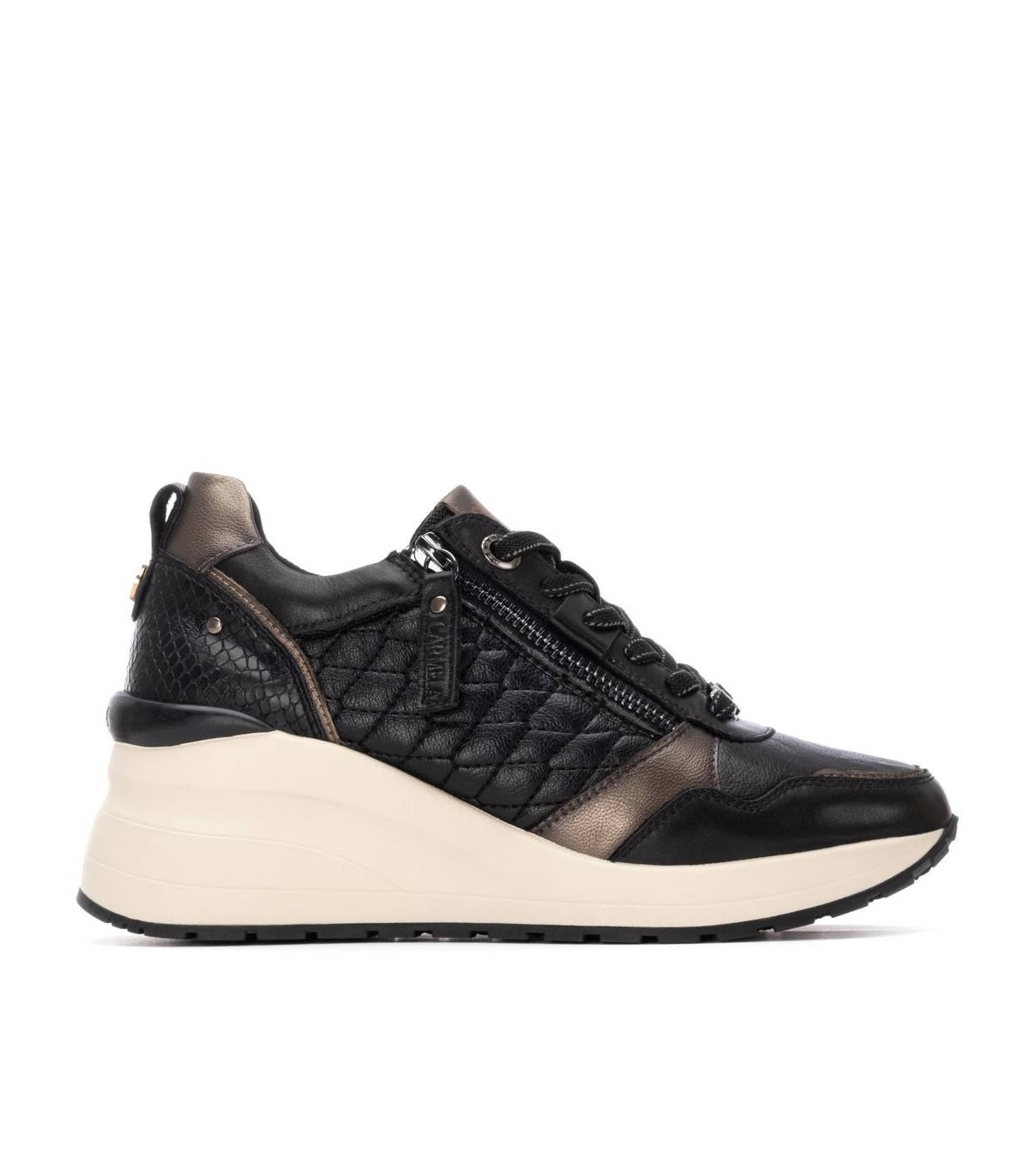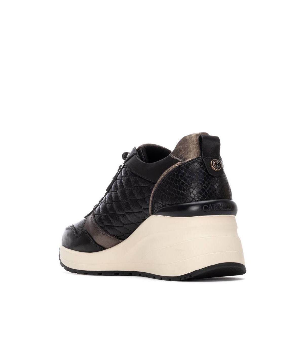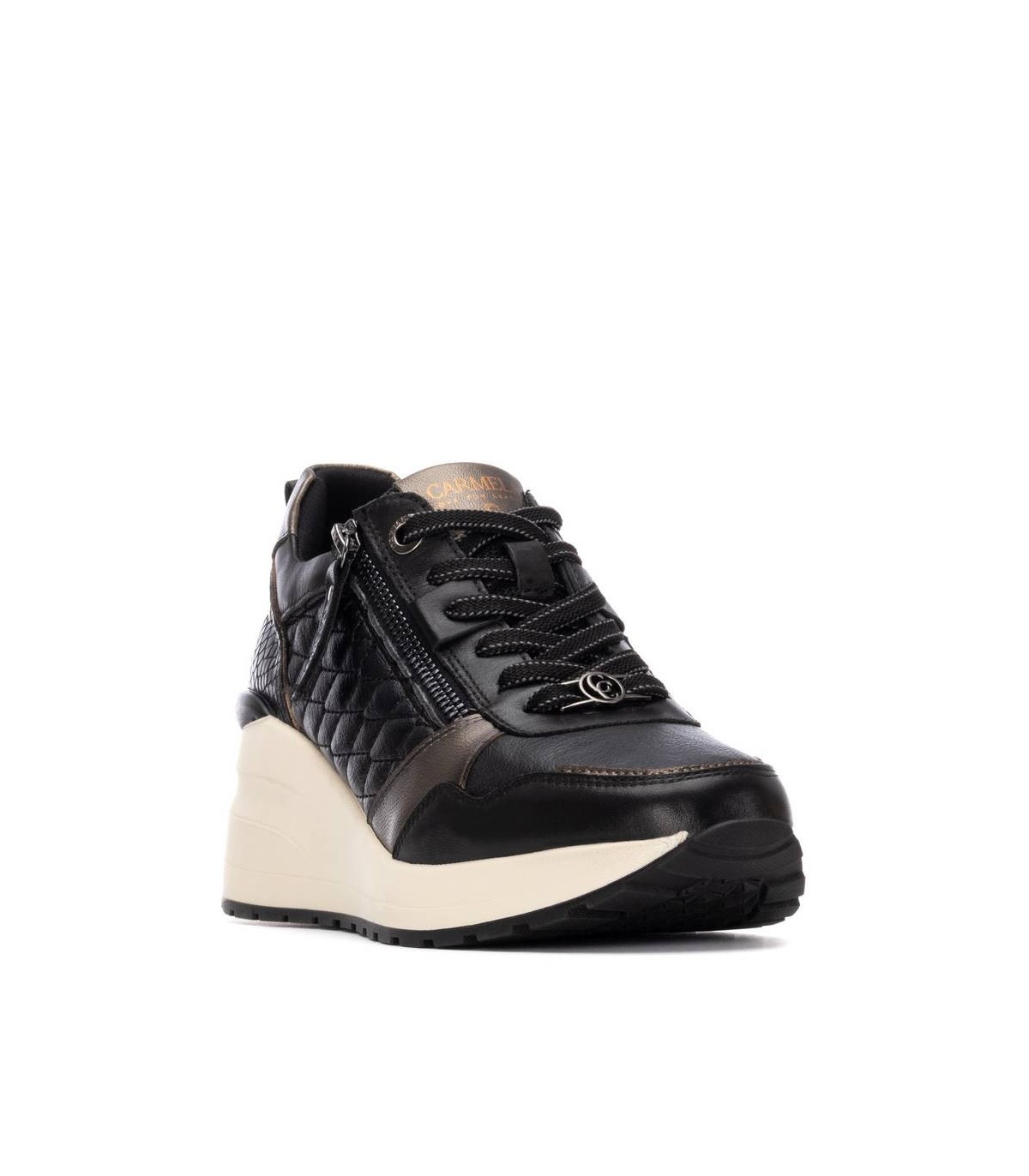 Zapatilla de mujer de la marca Carmela. Fabricado en piel de alta calidad. Cierre con cremallera lateral y cordones ajustables. Detalles con efecto metalizado. Sencilla y elegante, un básico para tu armario. Suela de goma, antideslizante. Con plantilla extraíble.