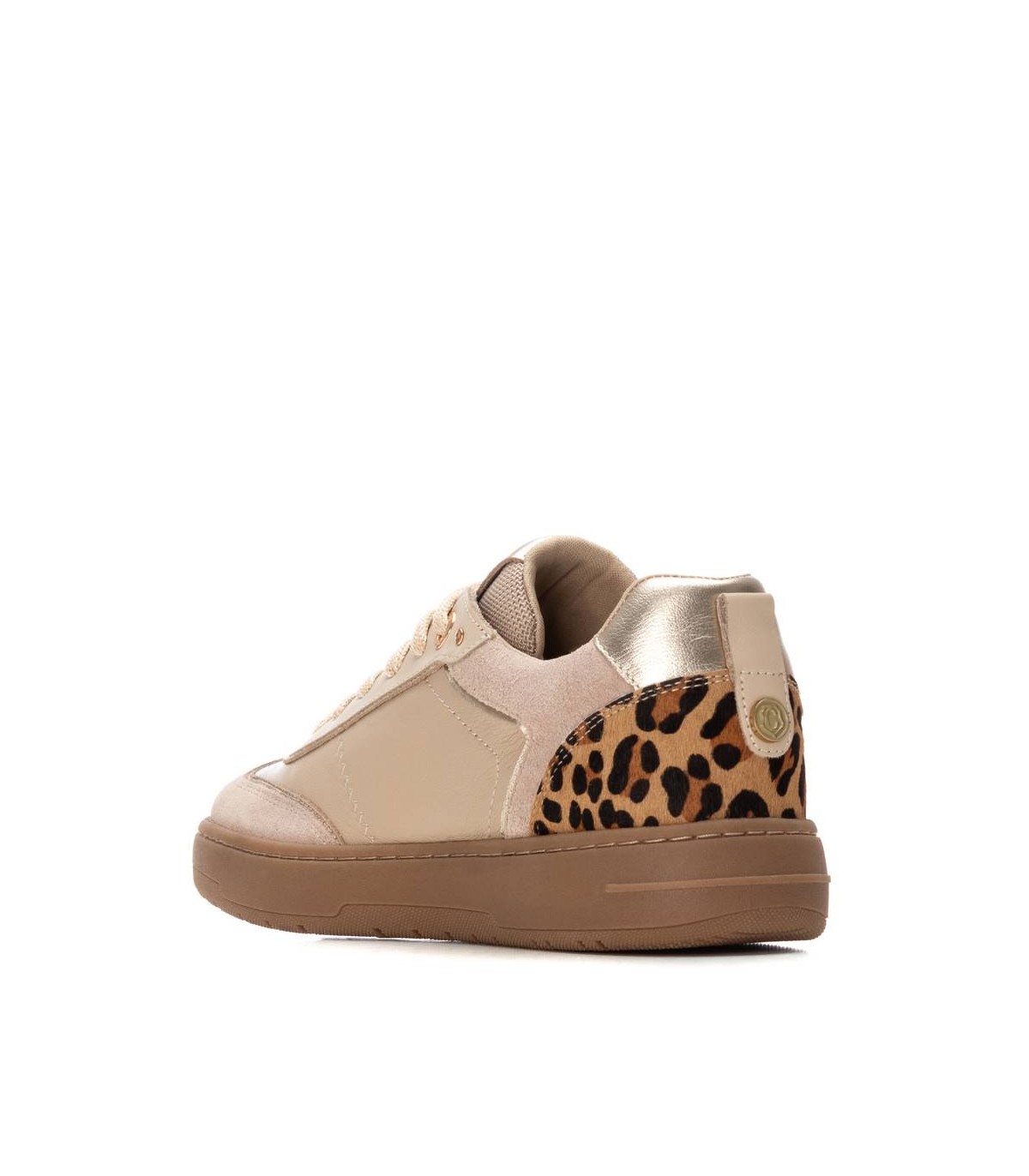 Zapatilla de mujer, de la marca Carmela. Fabricada en un suave serraje. Cierre mediante cordones ajustables. Detalles dorados y con estampado. Tirador trasero para facilitar la puesta. Suela de goma antideslizante.
