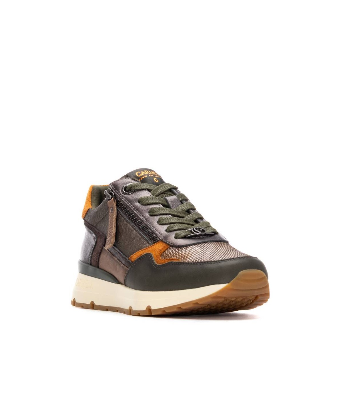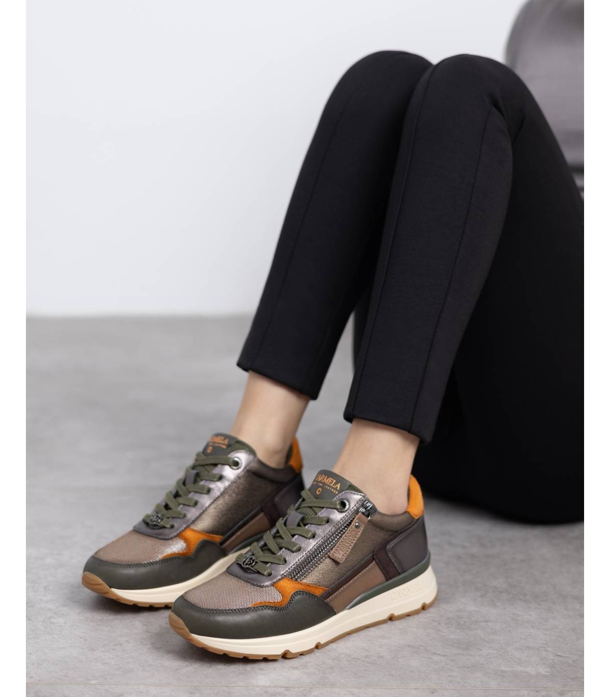 Zapatilla de mujer, de la marca Carmela. Fabricada en piel de alta calidad. Cierre mediante cremallera lateral y cordones ajustables. Detalles con efecto metalizado. Sencilla y elegante, un básico para tu armario. Suela de goma, antideslizante. Con plantilla extraíble.