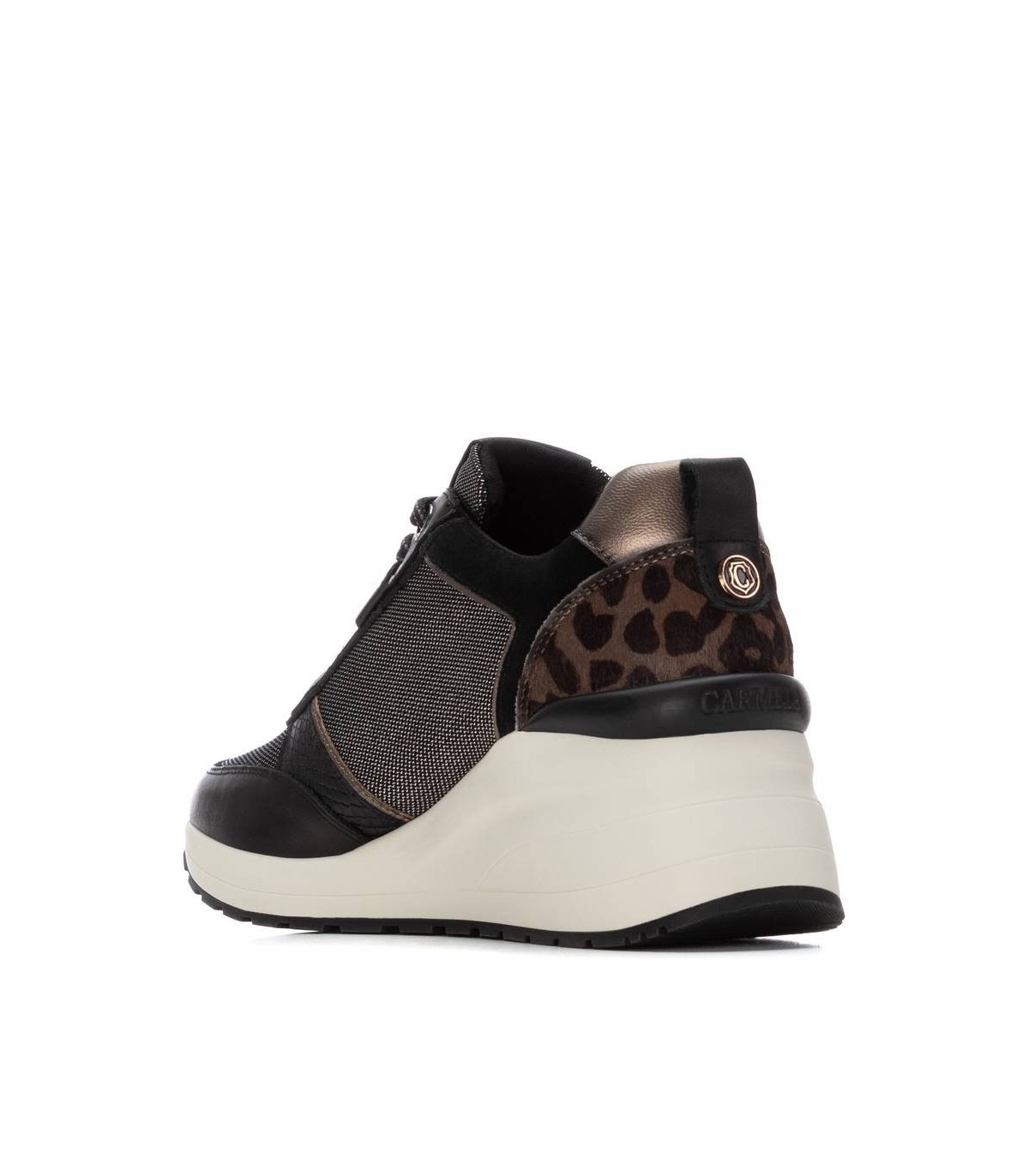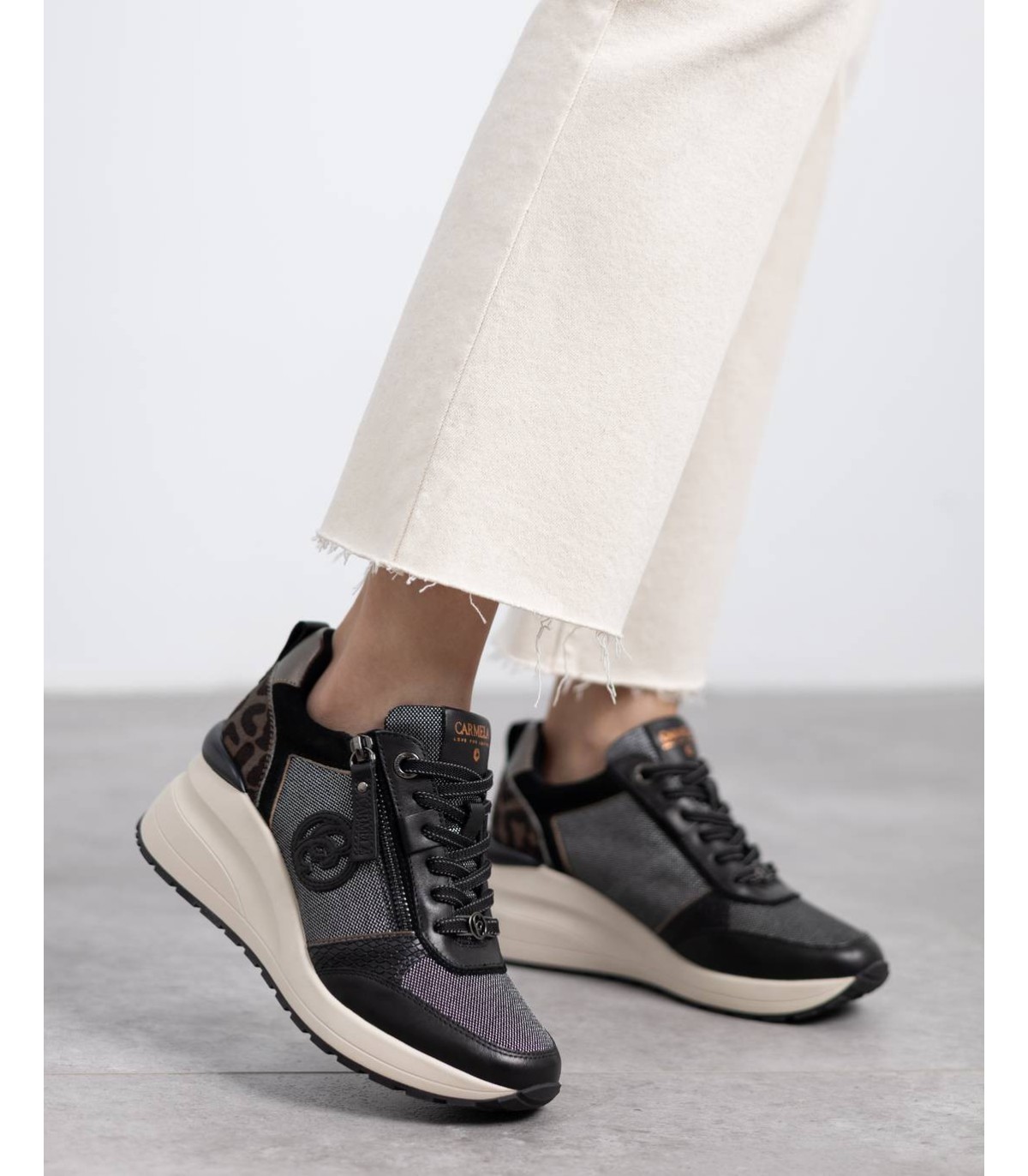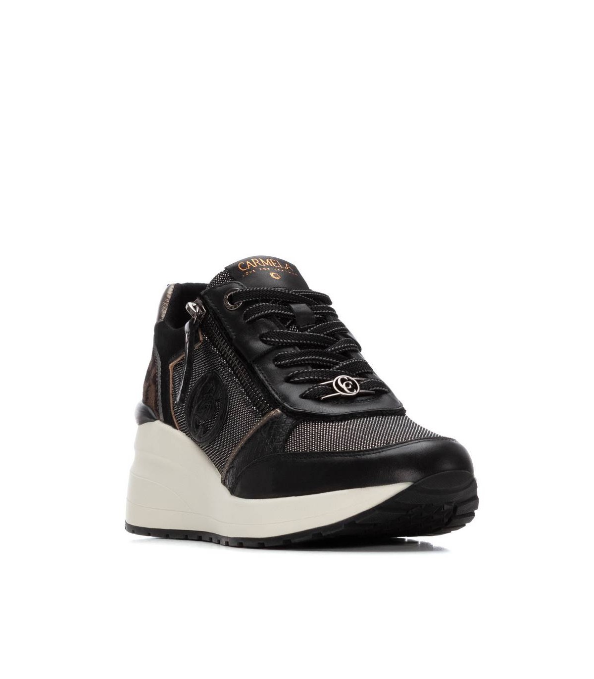 Zapatilla de mujer, de la marca Carmela. Fabricada en piel de alta calidad. Cierre mediante cremallera lateral y cordones ajustables. Detalle trasero con estampado. Tirador trasero para facilitar la puesta. Suela de goma, antideslizante. Plantilla extraíble.
