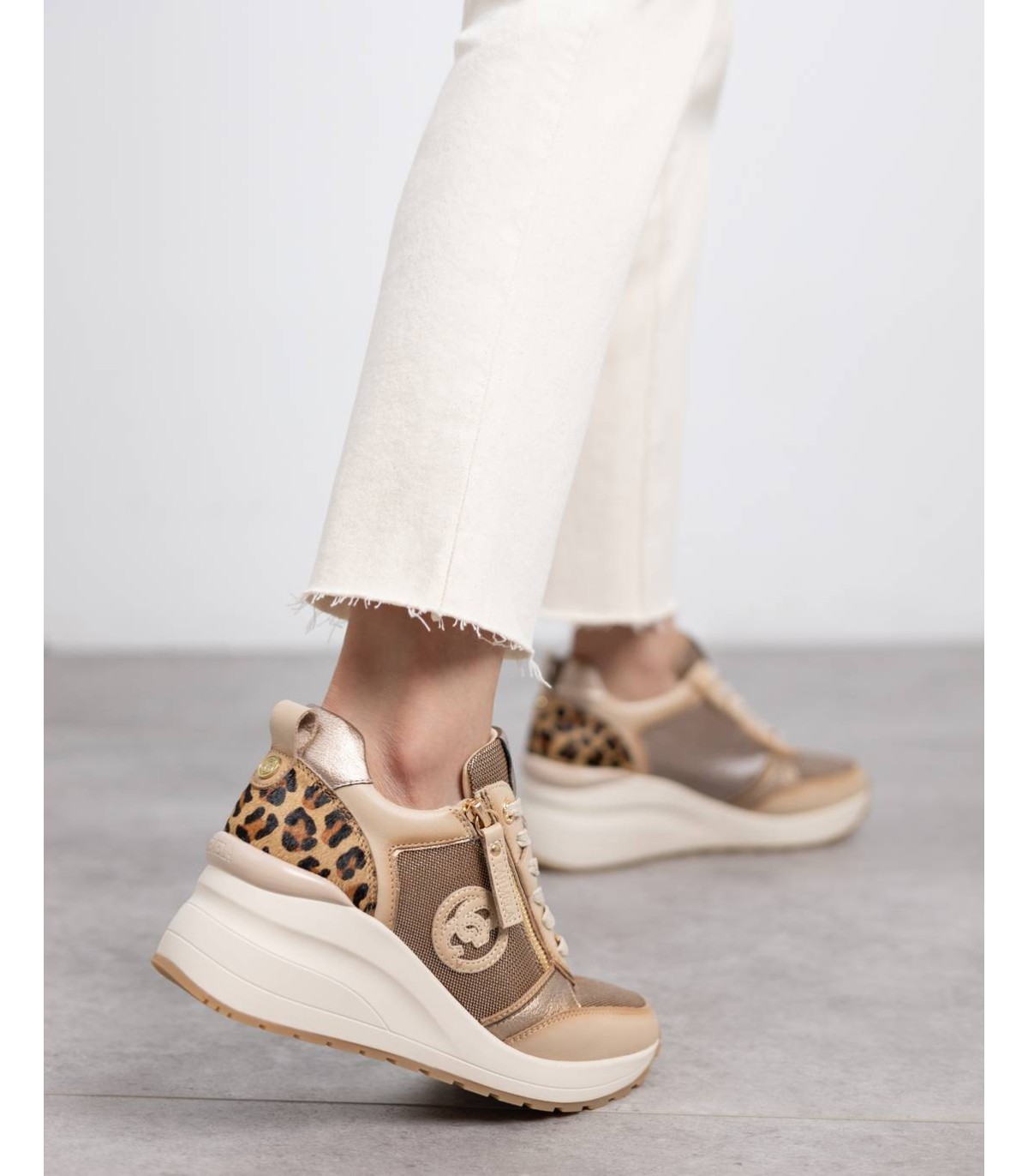 Zapatilla de mujer, de la marca Carmela. Fabricada en piel de alta calidad. Cierre mediante cremallera lateral y cordones ajustables. Detalle trasero con estampado. Tirador trasero para facilitar la puesta. Suela de goma, antideslizante. Plantilla extraíble.