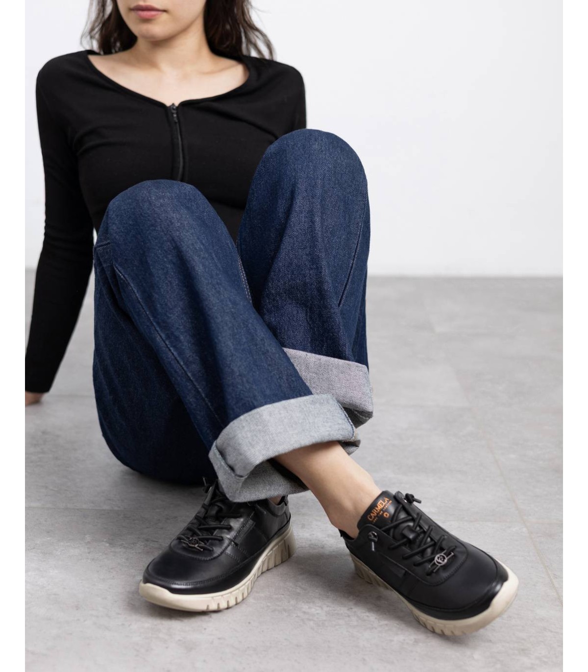 Zapatilla mujer, de la marca Carmela. Fabricada en piel de alta calidad. Cordones ajustables. Sencilla y elegante, un básico para tu armario. Suela de goma, antideslizante.