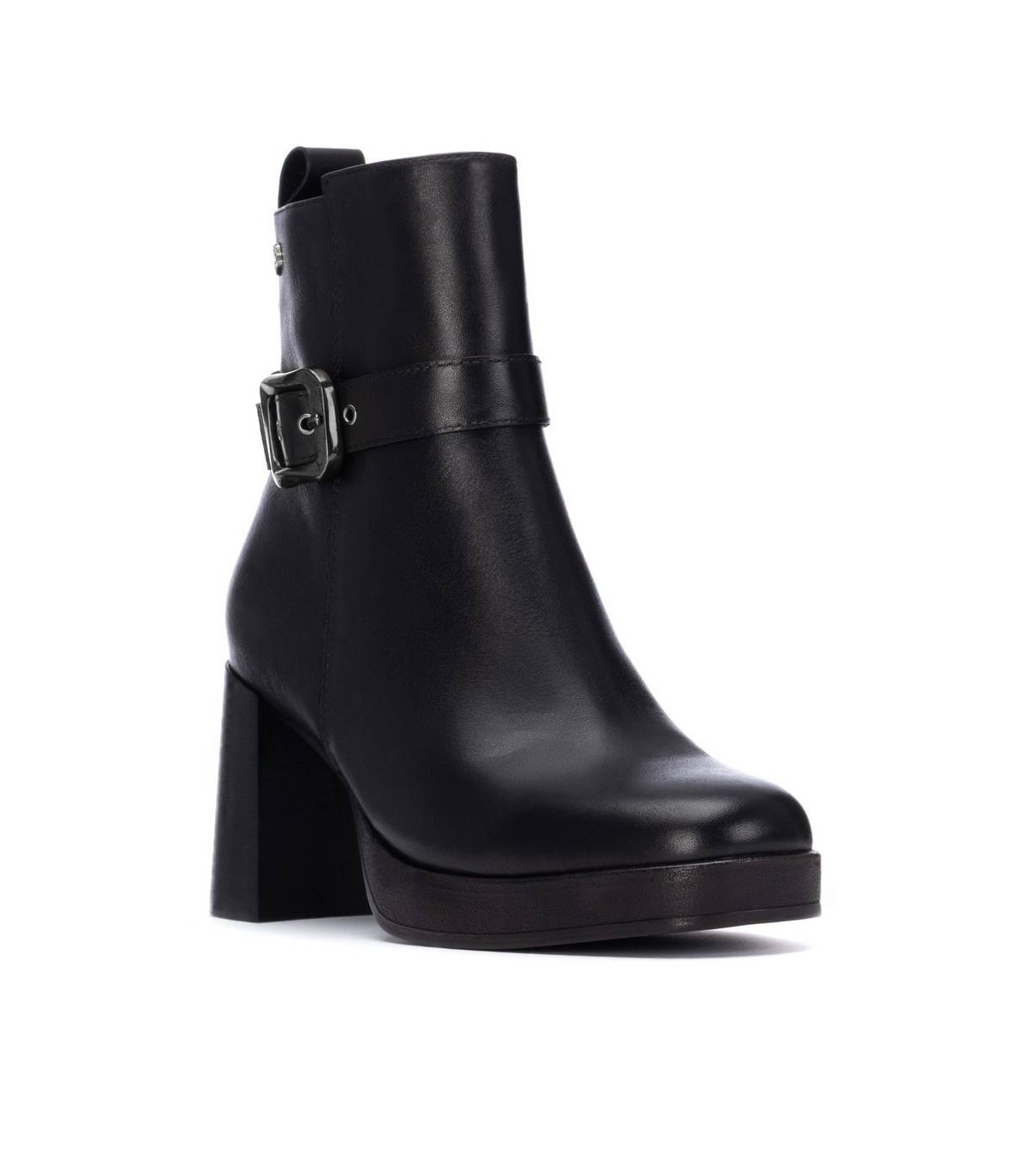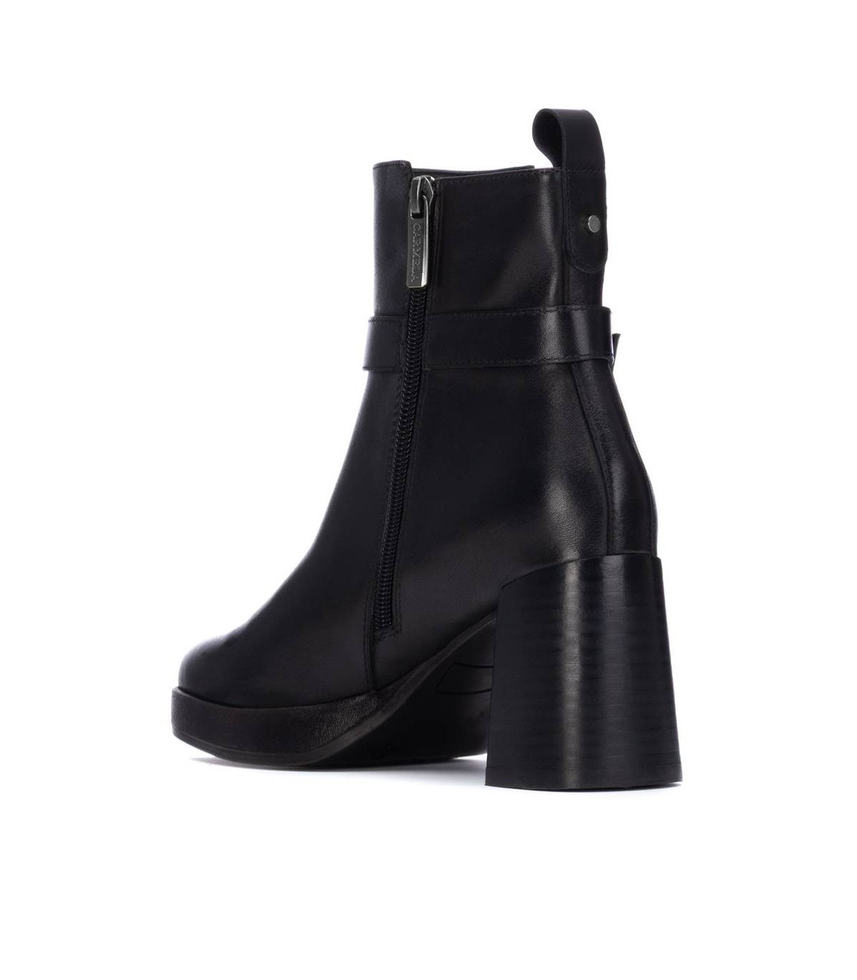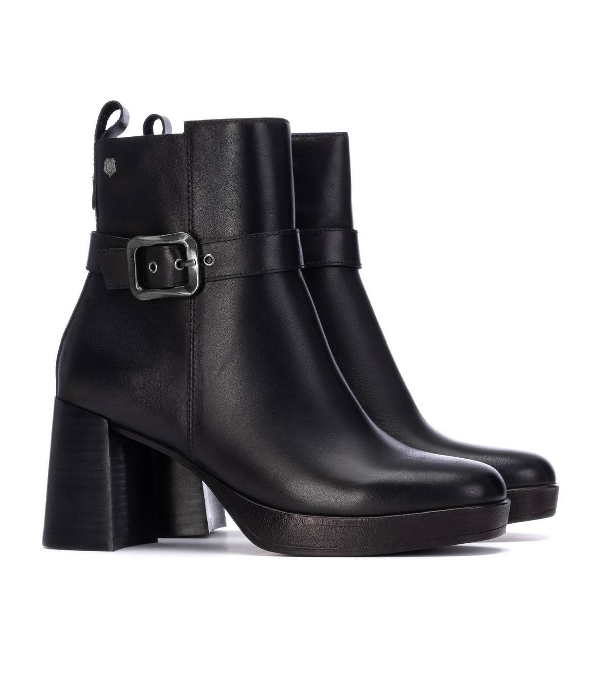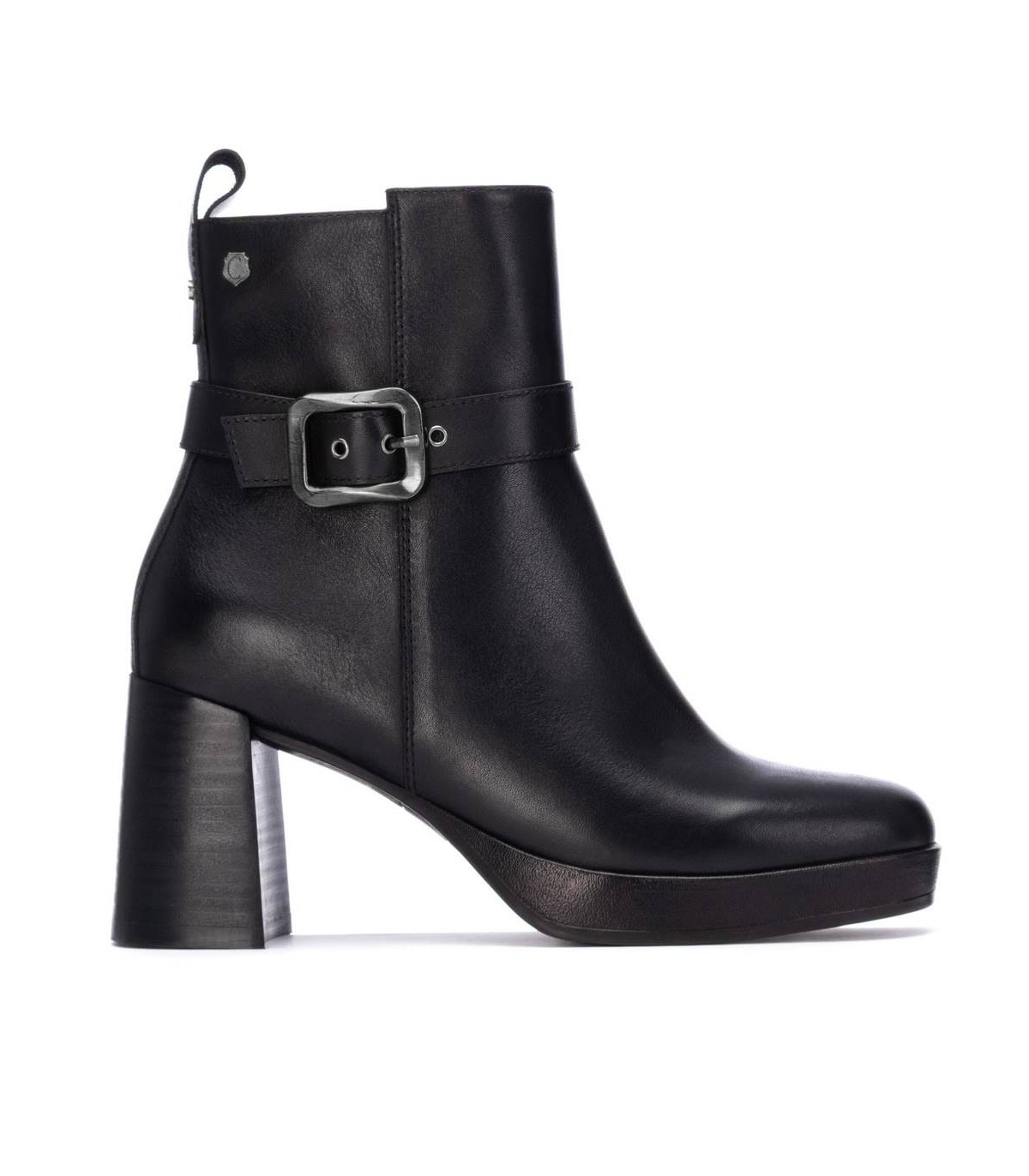 Botín de mujer, de la marca Carmela. Fabricado en piel de alta calidad. Cierre mediante interna. Tirador trasero para facilitar la puesta. Detalle lateral con hebilla. Suela antideslizante. Plantilla extraíble.