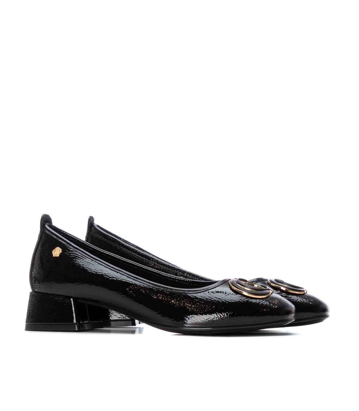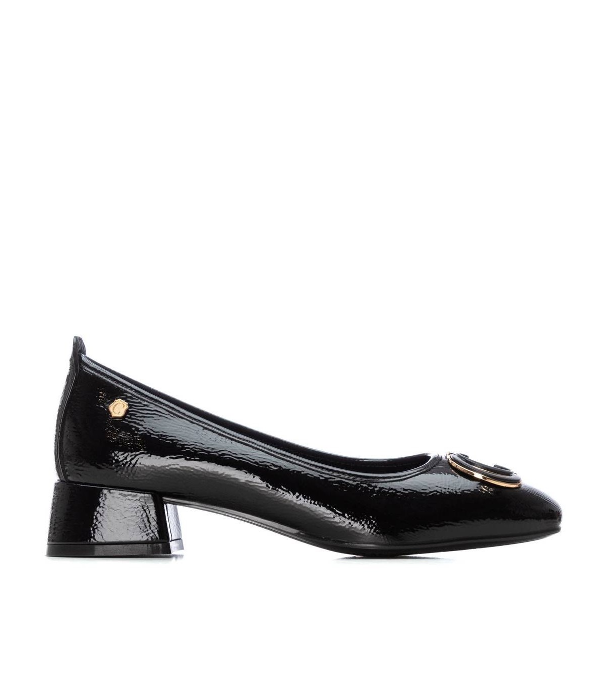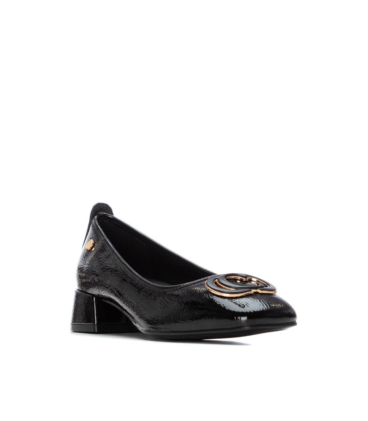 Zapato de mujer, de la marca Carmela. Fabricado en charol. Estilo bailarina, con decorado en el frente. Cómoda suela fina antideslizante. Plantilla extraíble.