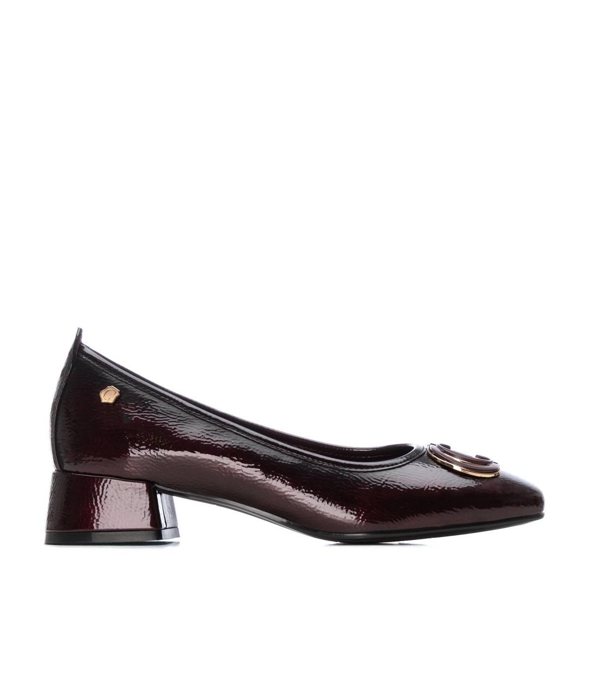 Zapato de mujer, de la marca Carmela. Fabricado en charol. Estilo bailarina, con decorado en el frente. Cómoda suela fina antideslizante. Plantilla extraíble.
