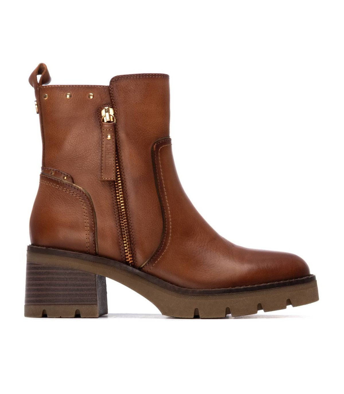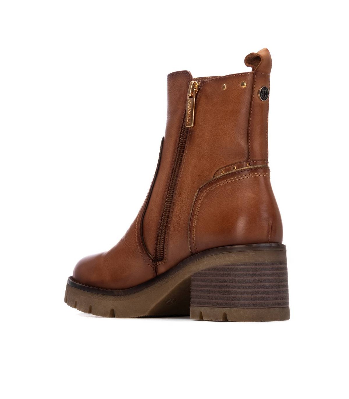 Botín de mujer, de la marca Carmela. Fabricado en piel de alta calidad. Cierre con cremallera lateral. Tirador trasero para facilitar la puesta. Suela de goma antideslizante.