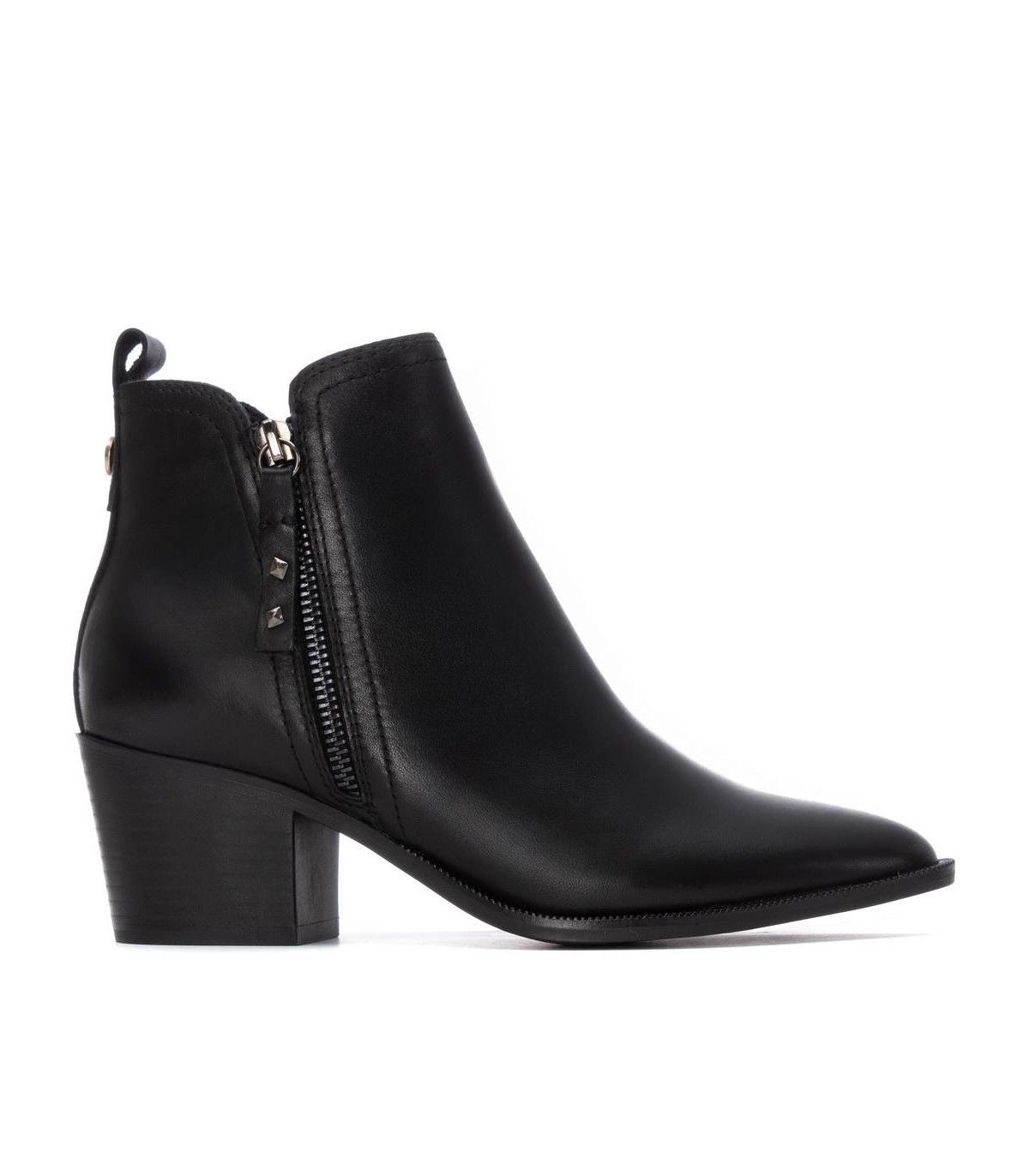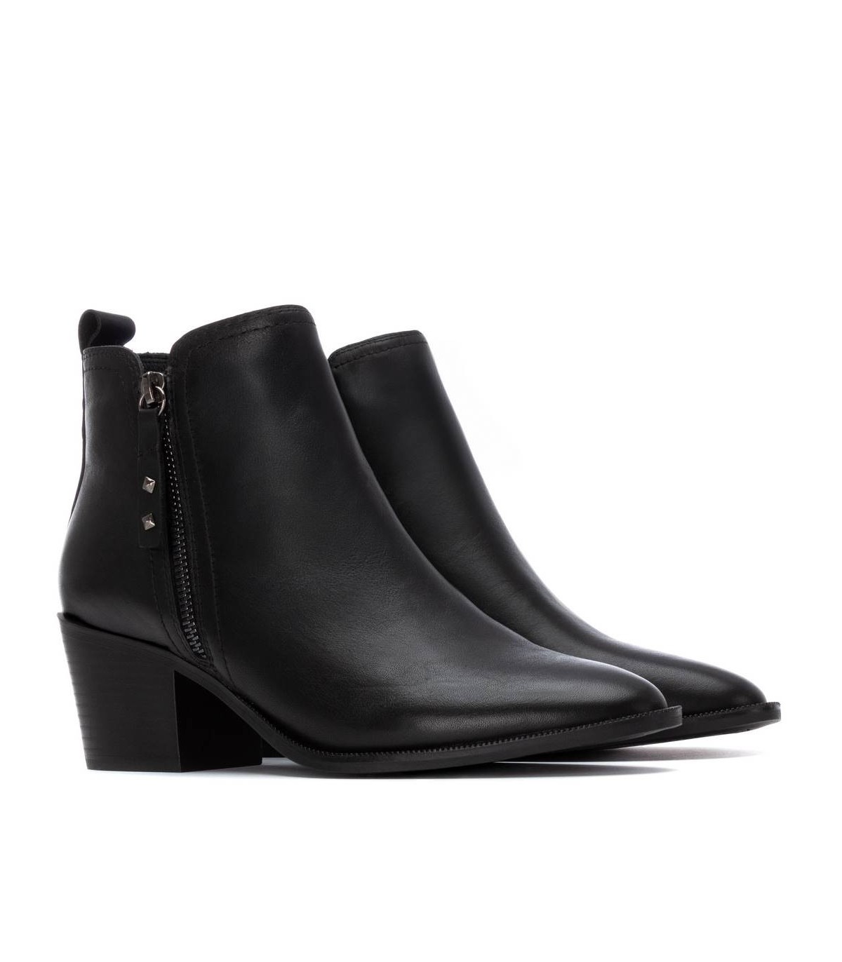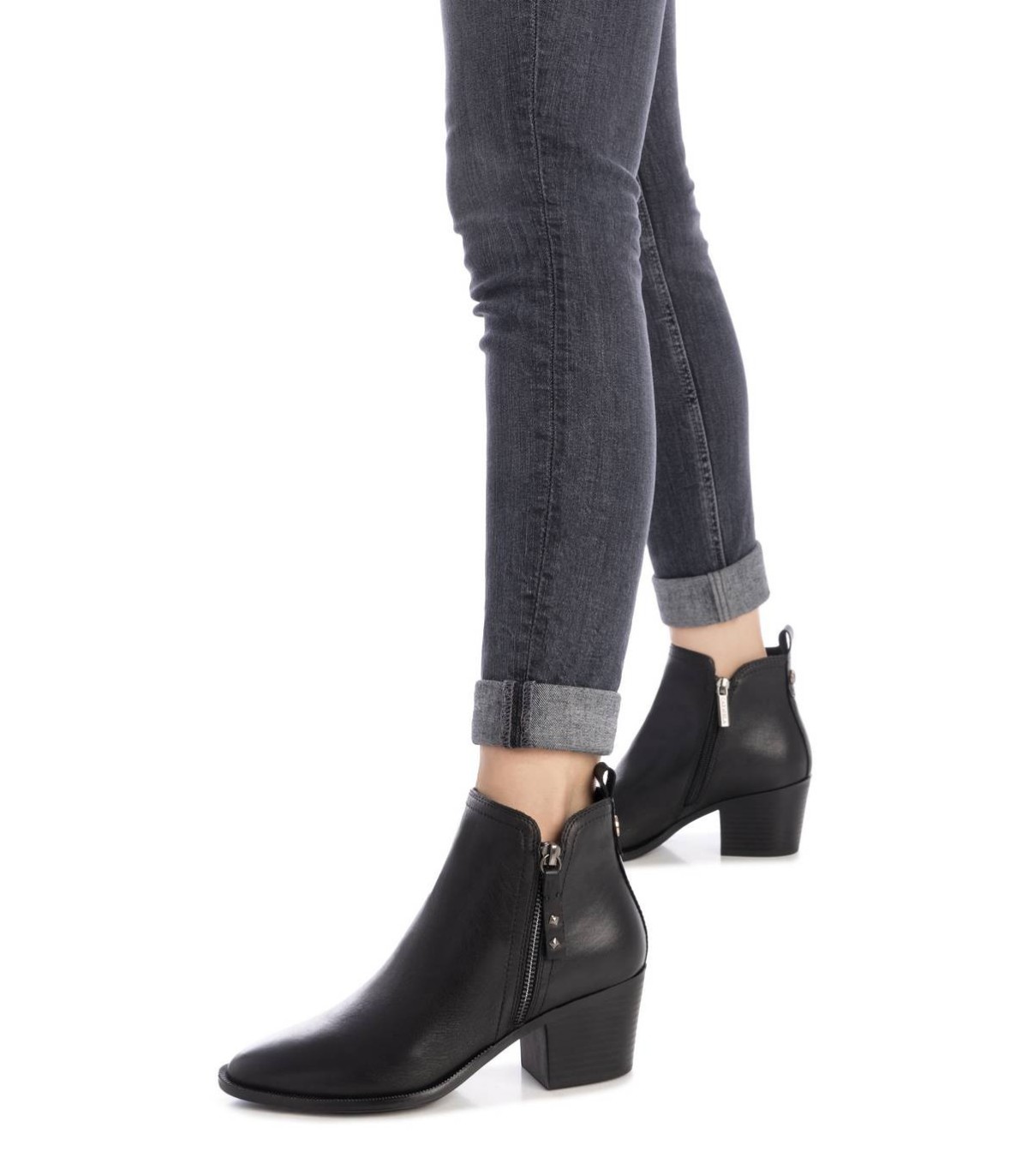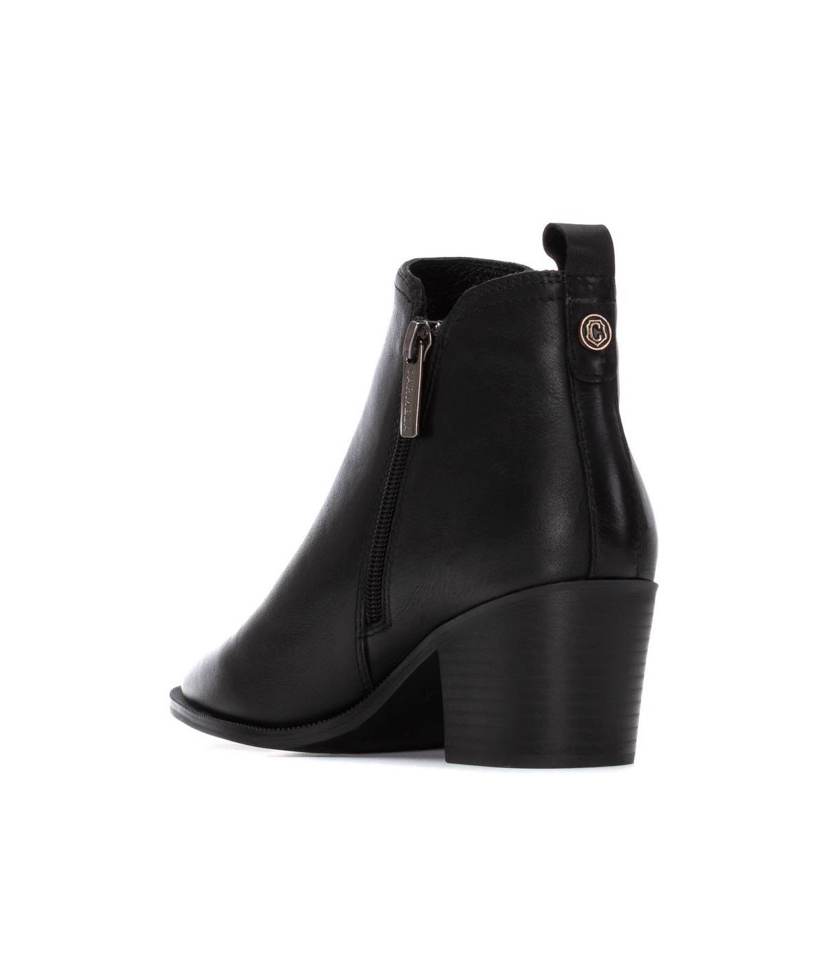 Botín de mujer, de la marca Carmela. Fabricado con material sintético que imita a la piel. Cierre lateral con cremallera. Tirador trasero para facilitar la puesta. Suela antideslizante.