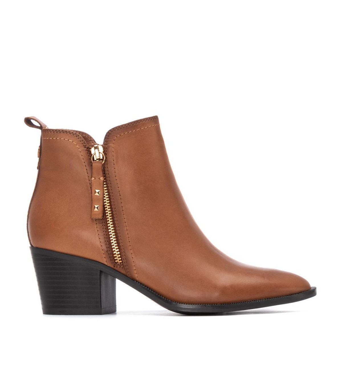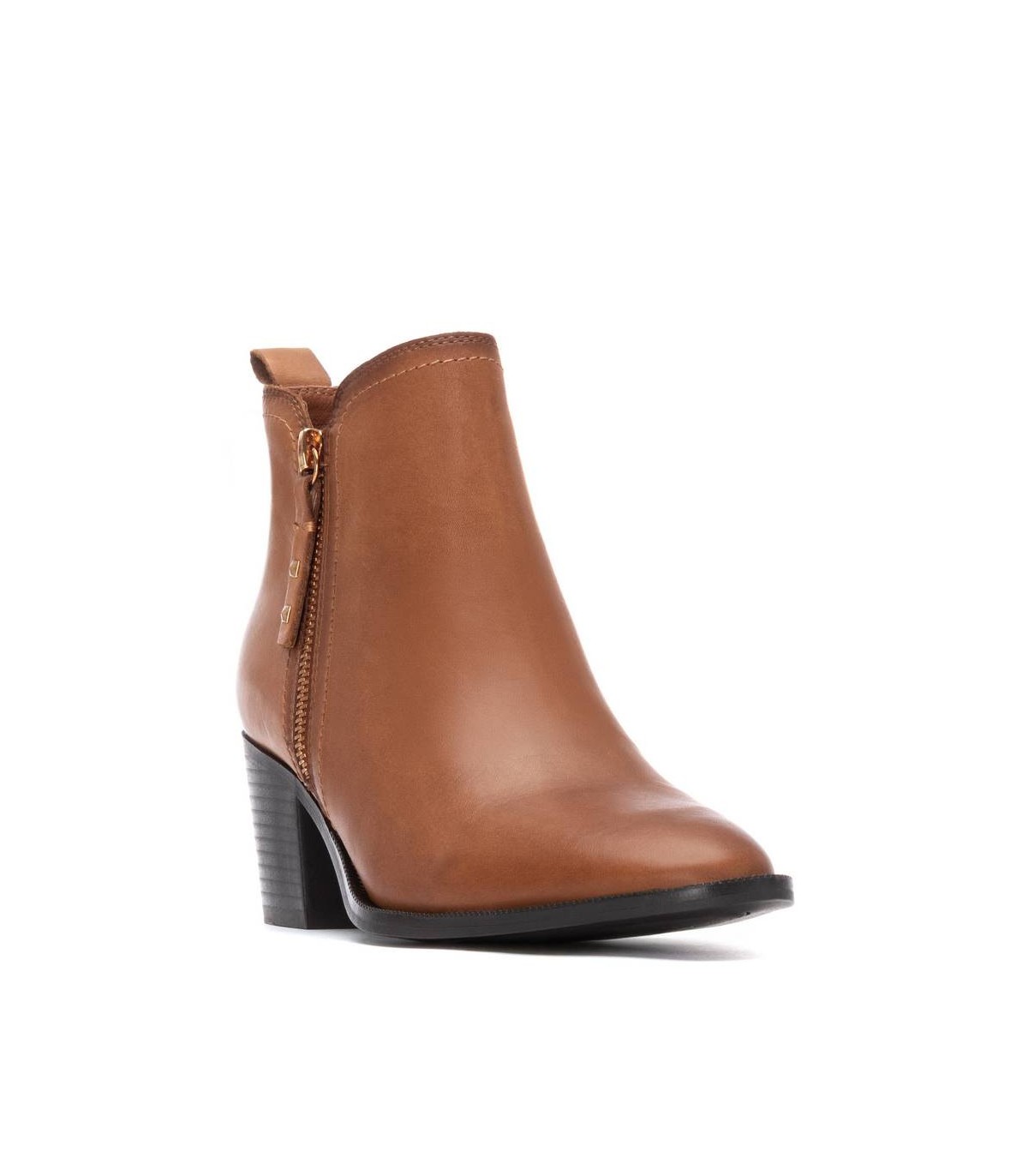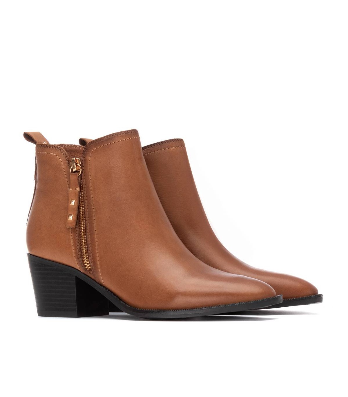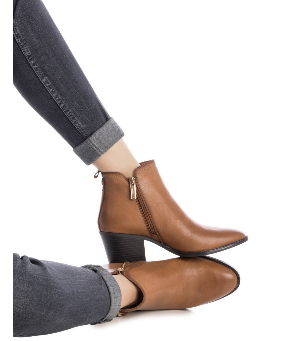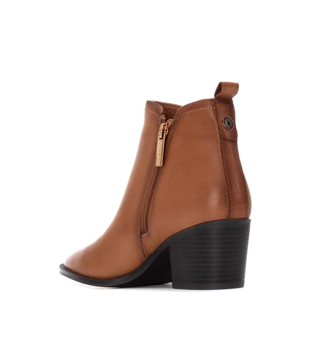 Botín de mujer, de la marca Carmela. Fabricado con material sintético que imita a la piel. Cierre lateral con cremallera. Tirador trasero para facilitar la puesta. Suela antideslizante.