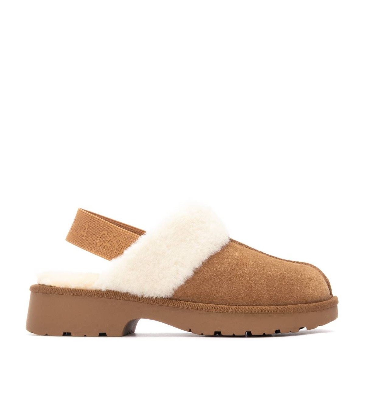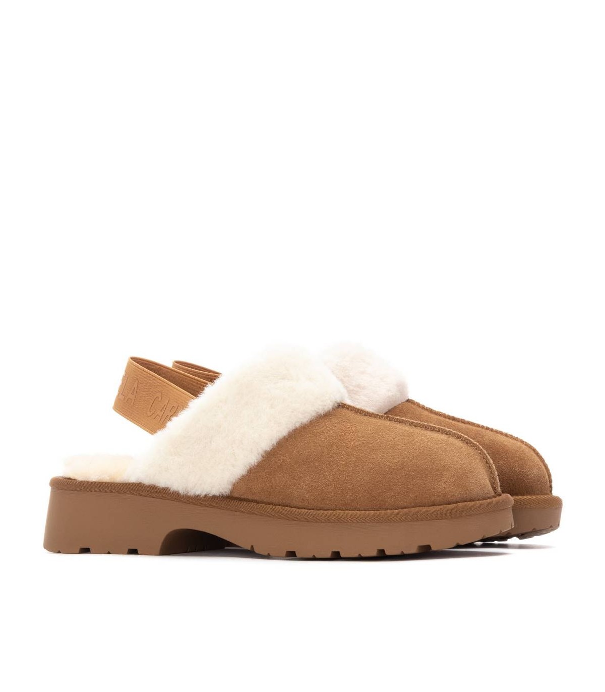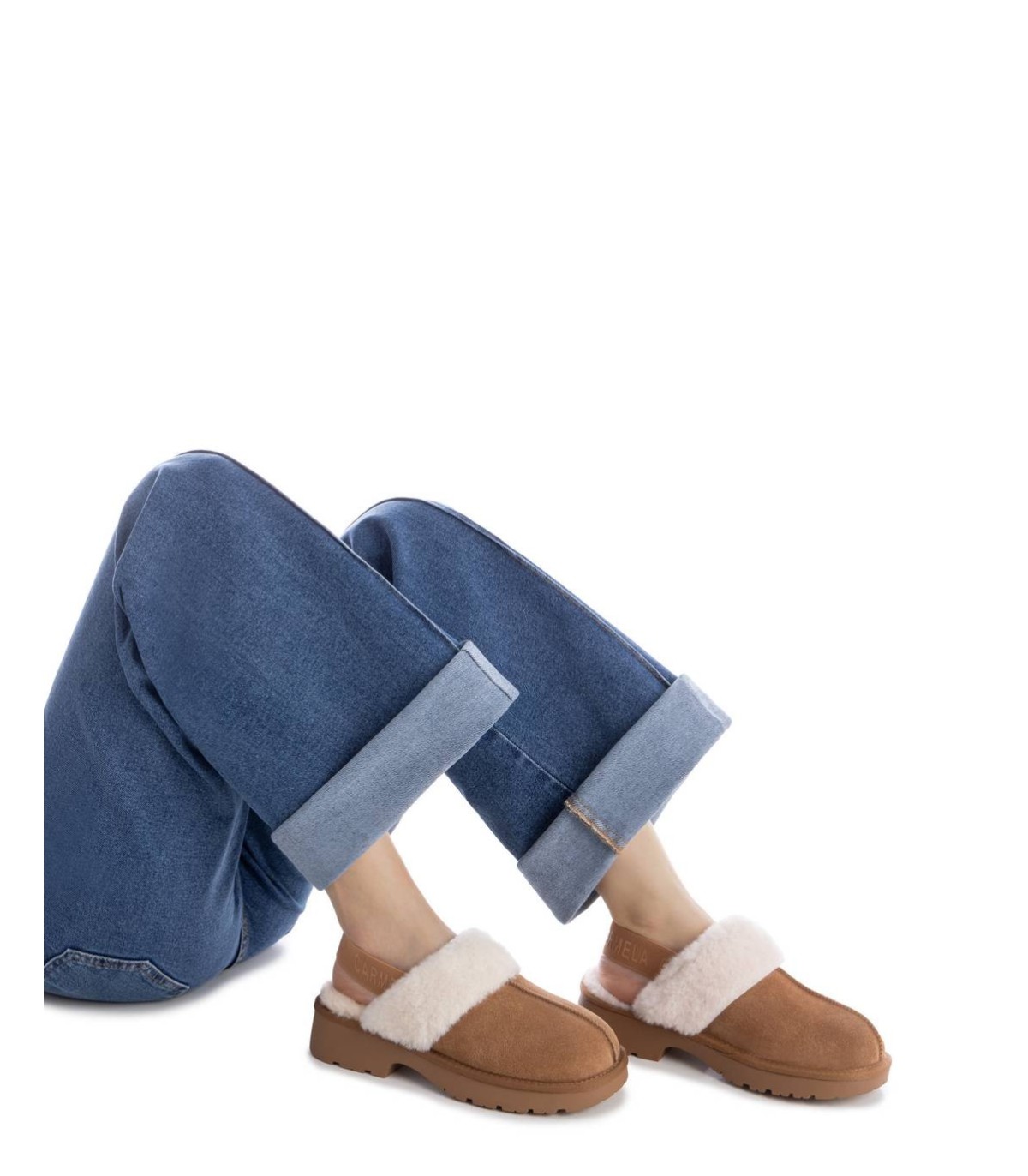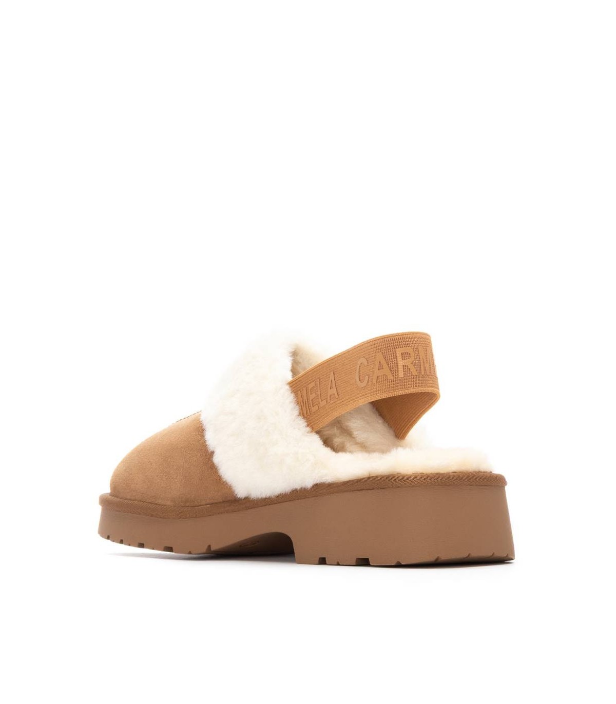 Zapato de mujer, de la marca Carmela. Fabricado en un suave serraje. Estilo sandalia con cierre de goma en la parte trasera. Super Calentito con pelo en su interior. Suela de goma antideslizante.