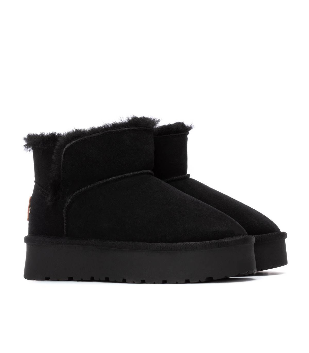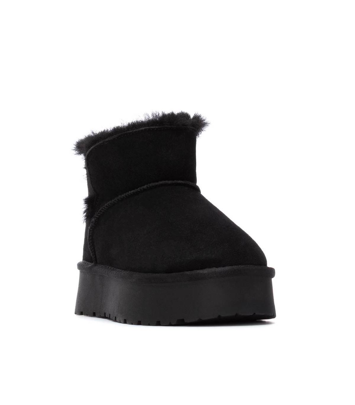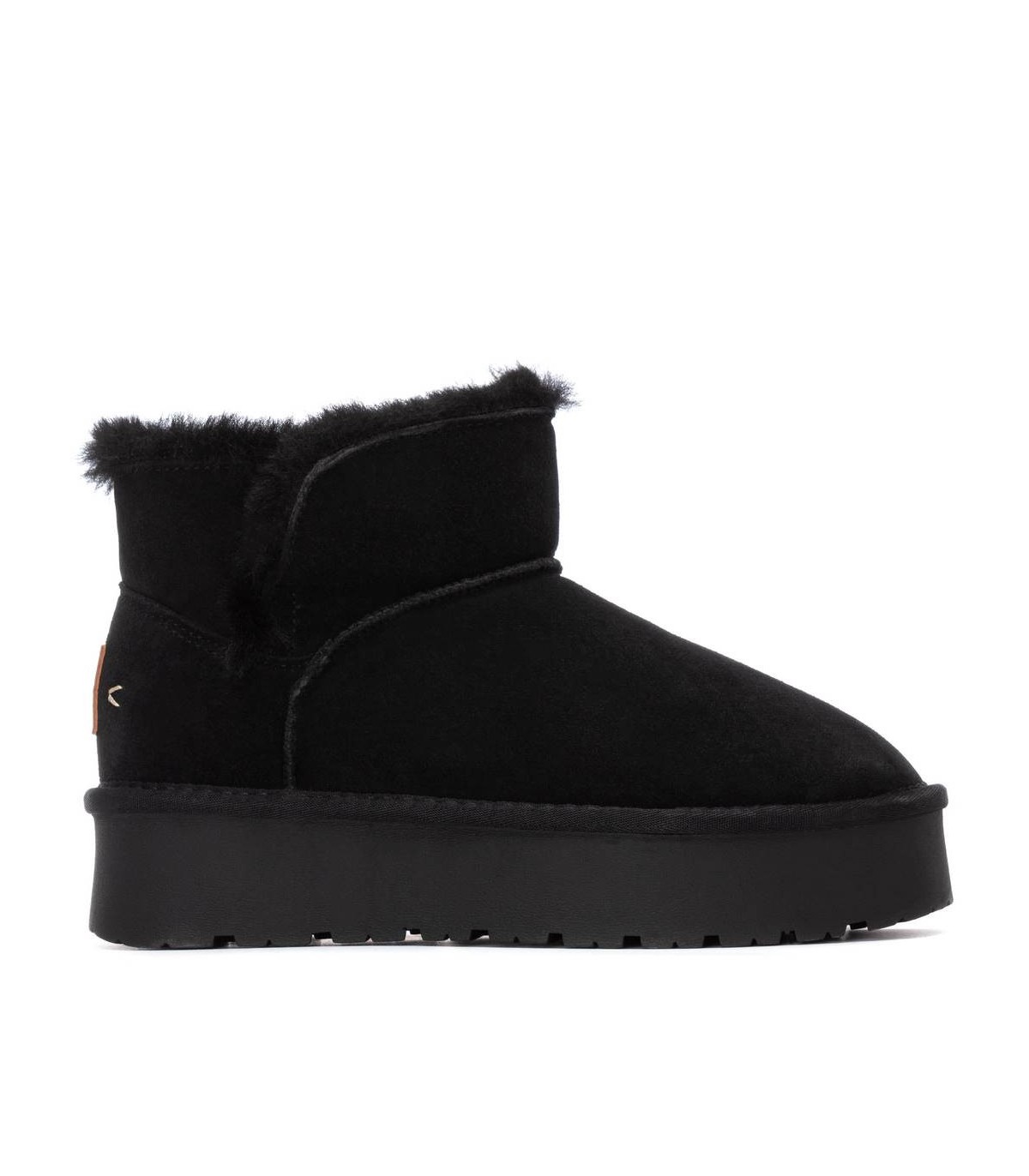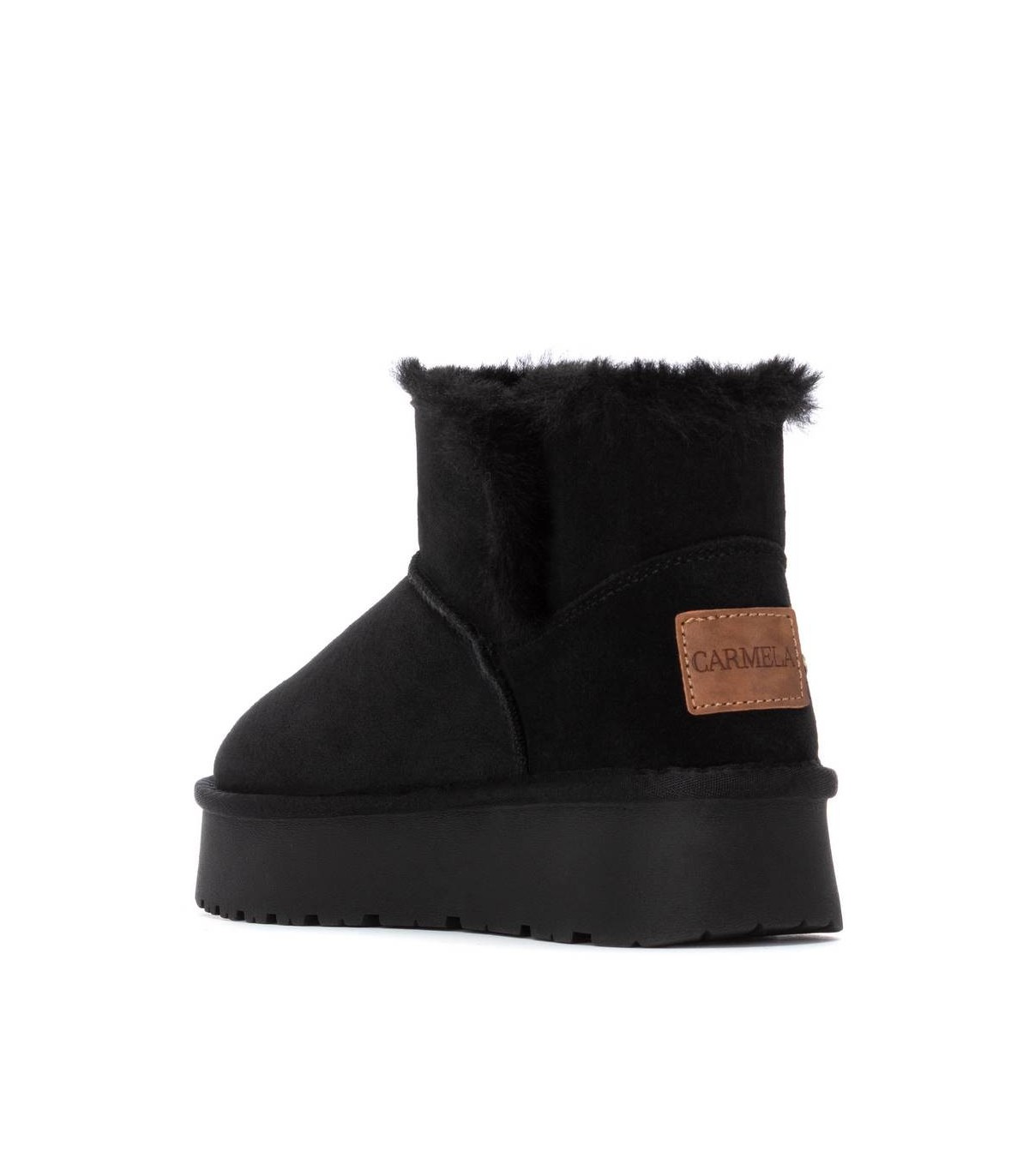 Botín de mujer, de la marca Carmela. Fabricado en un suave serraje. Super Calentito con pelo en el interior. Estilo bota australiana, un básico de cada invierno. Tirador trasero para facilitar la puesta. Suela gruesa de goma antideslizante.