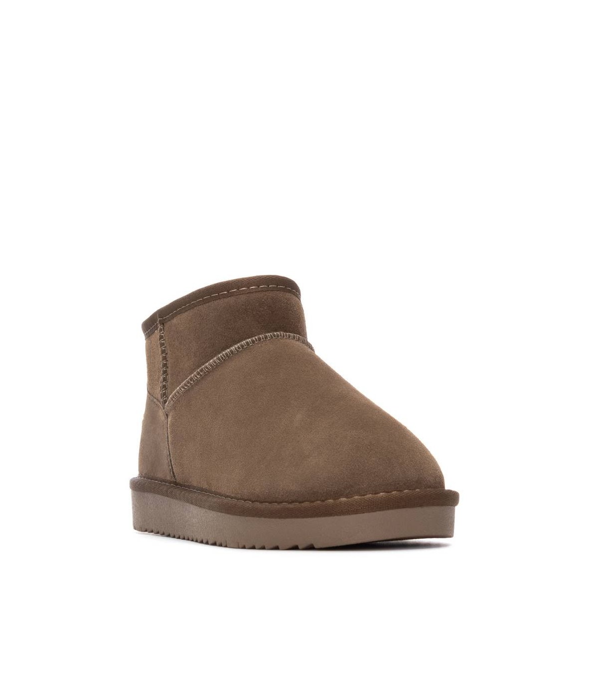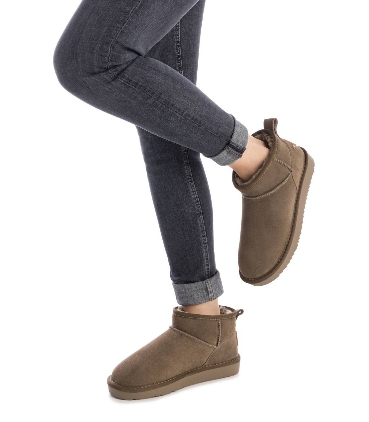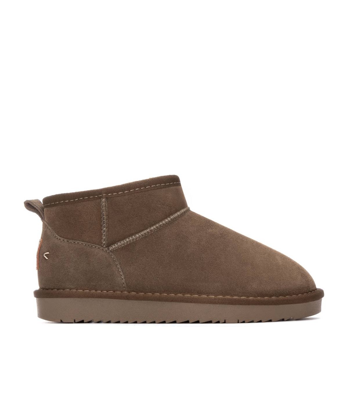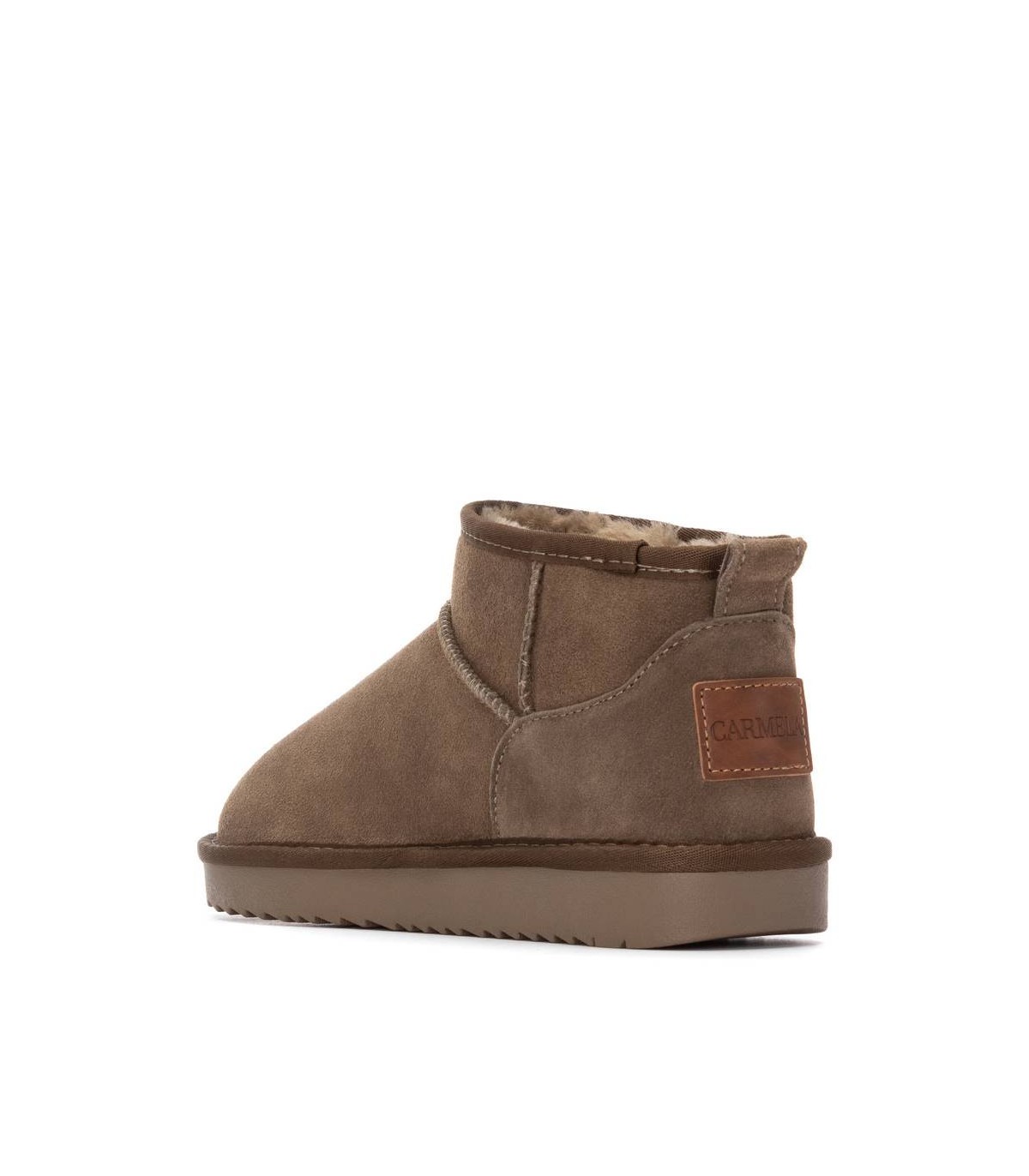 Botín de mujer de la marca Carmela. Fabricado en un suave serraje. Super Calentito con pelo en el interior. Estilo bota australiana, un básico de cada invierno. Tirador trasero para facilitar la puesta. Suela de goma antideslizante.
