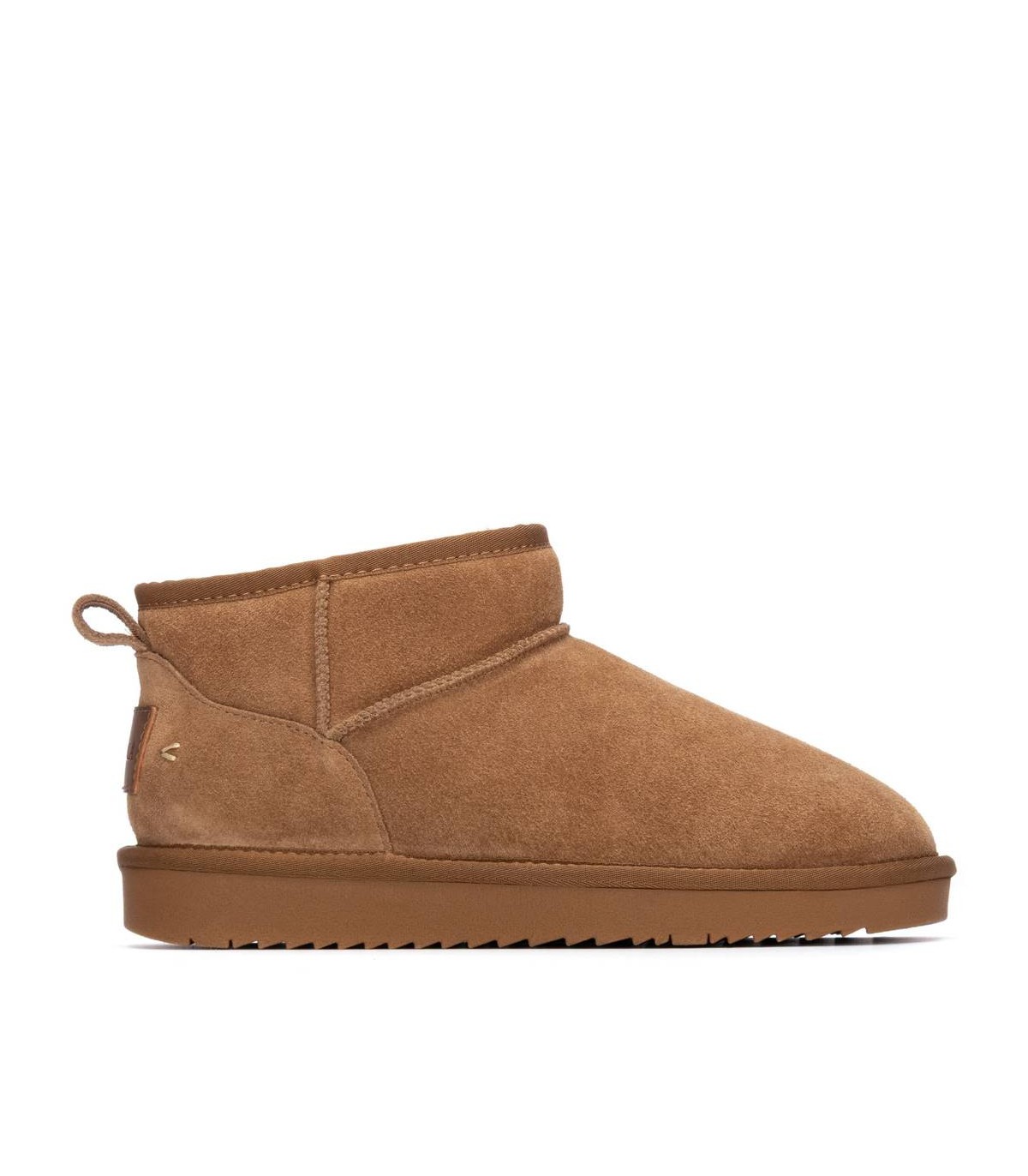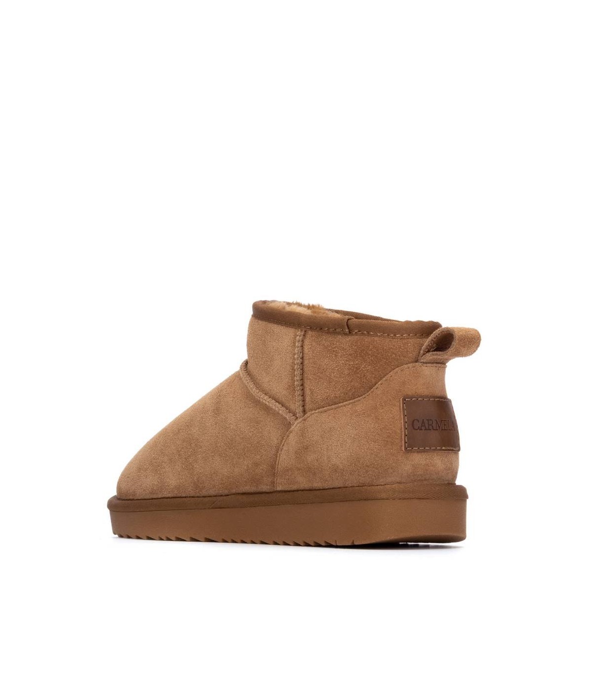 Botín de mujer de la marca Carmela. Fabricado en un suave serraje. Super Calentito con pelo en el interior. Estilo bota australiana, un básico de cada invierno. Tirador trasero para facilitar la puesta. Suela de goma antideslizante.