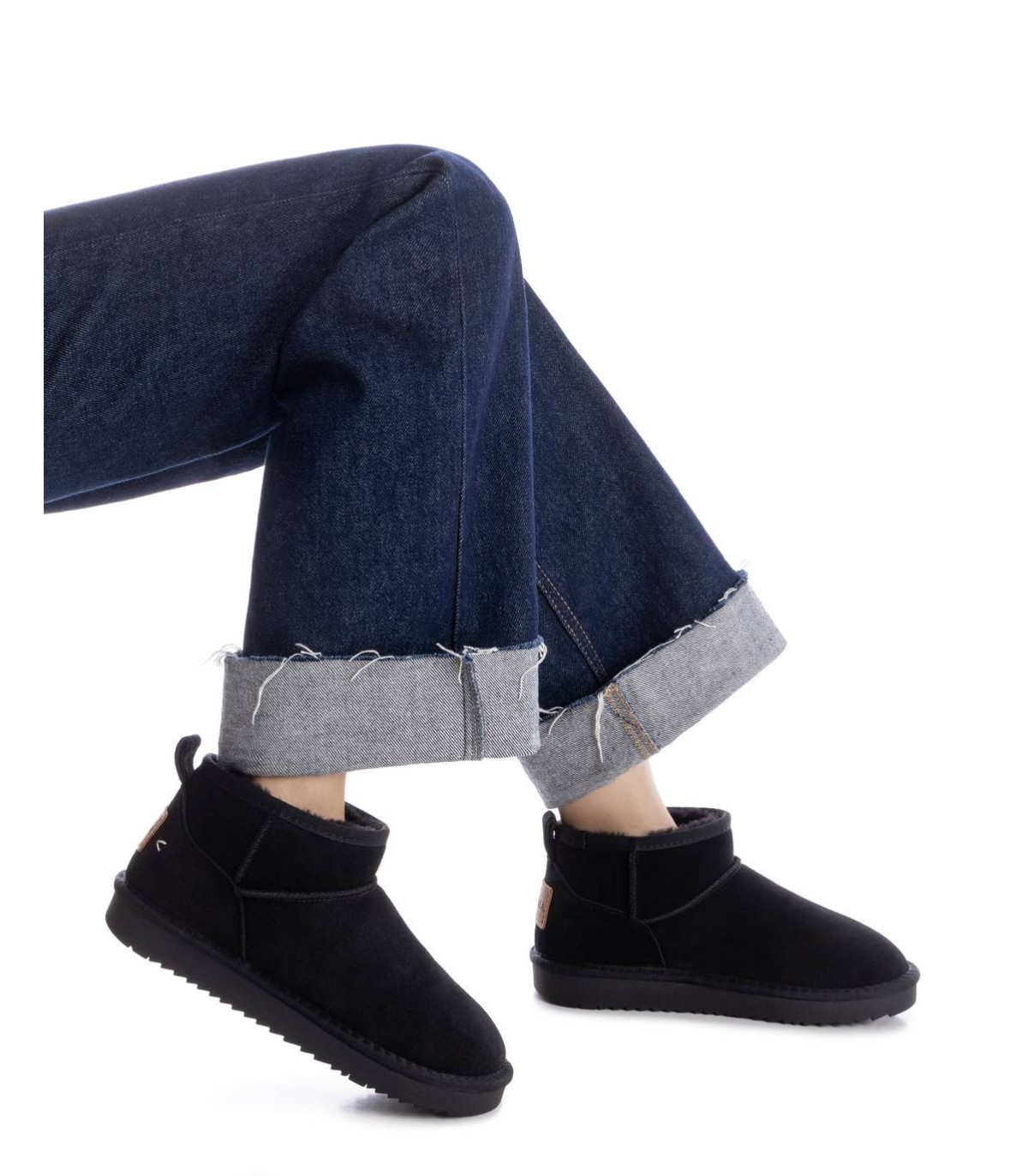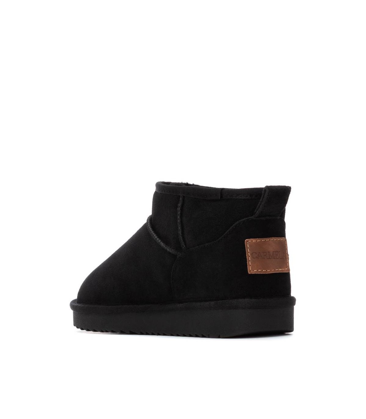 Botín de mujer de la marca Carmela. Fabricado en un suave serraje. Super Calentito con pelo en el interior. Estilo bota australiana, un básico de cada invierno. Tirador trasero para facilitar la puesta. Suela de goma antideslizante.
