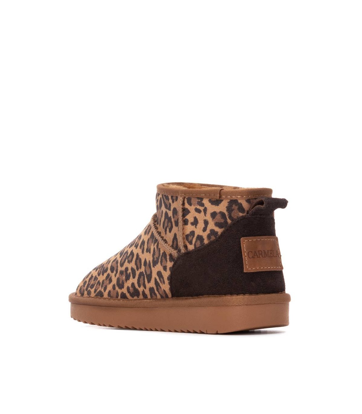 Botín de mujer de la marca Carmela. Fabricado en un suave serraje. Super Calentito con pelo en el interior. Estilo bota australiana, un básico de cada invierno. Tirador trasero para facilitar la puesta. Suela de goma antideslizante.