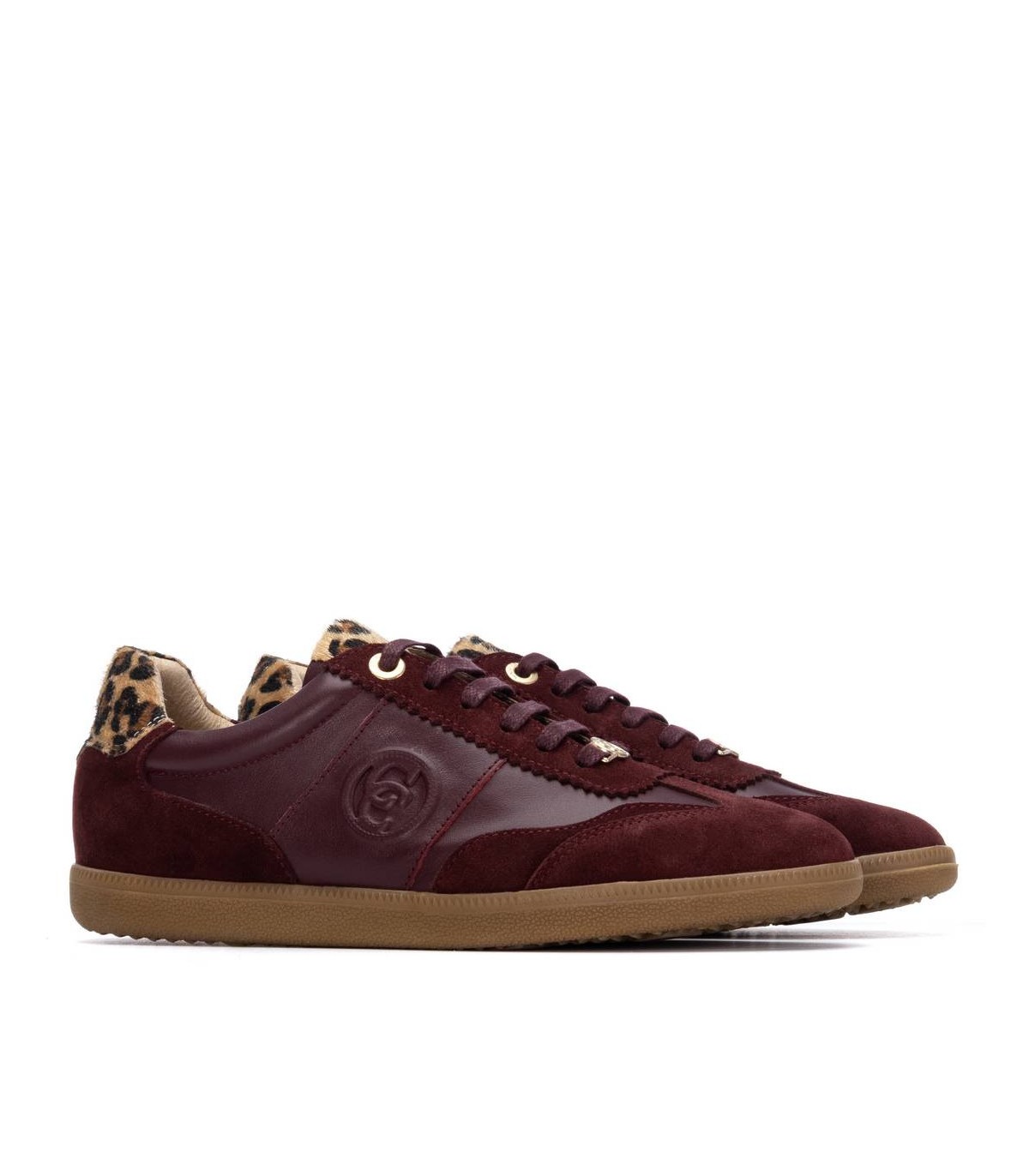Zapatilla de mujer, de la marca Carmela. Fabricado en piel de alta calidad. Cierre mediante cordones ajustables. Detalles con estampado. Cómoda suela plana de goma antideslizante. Con plantilla extraíble.