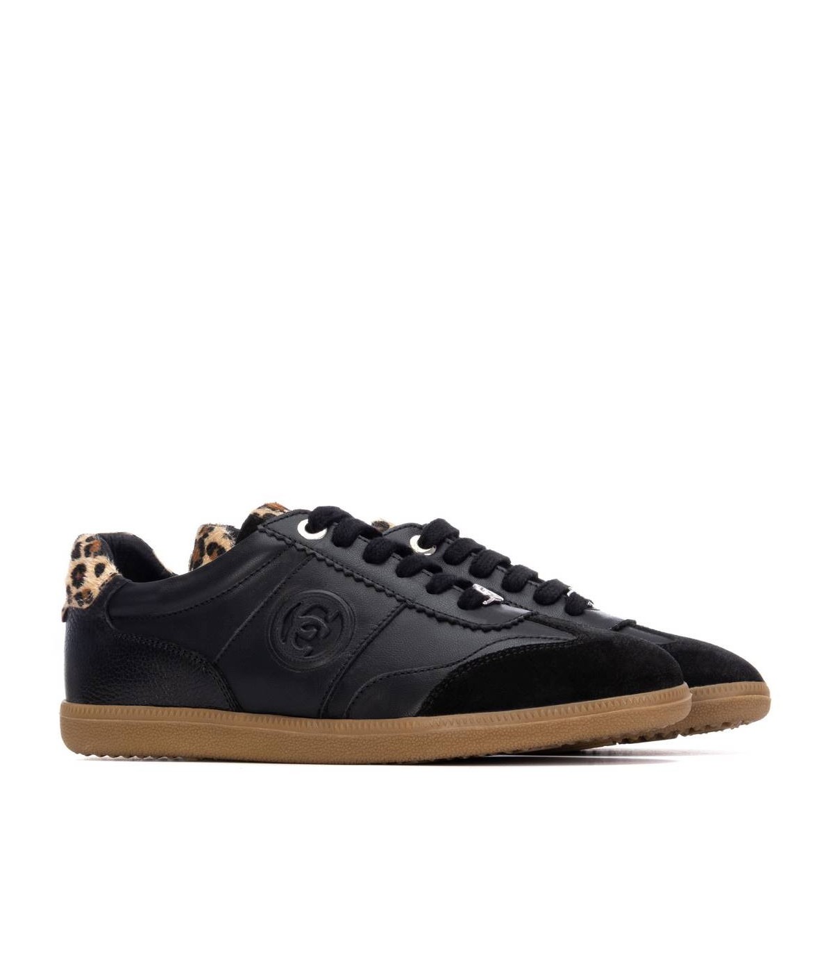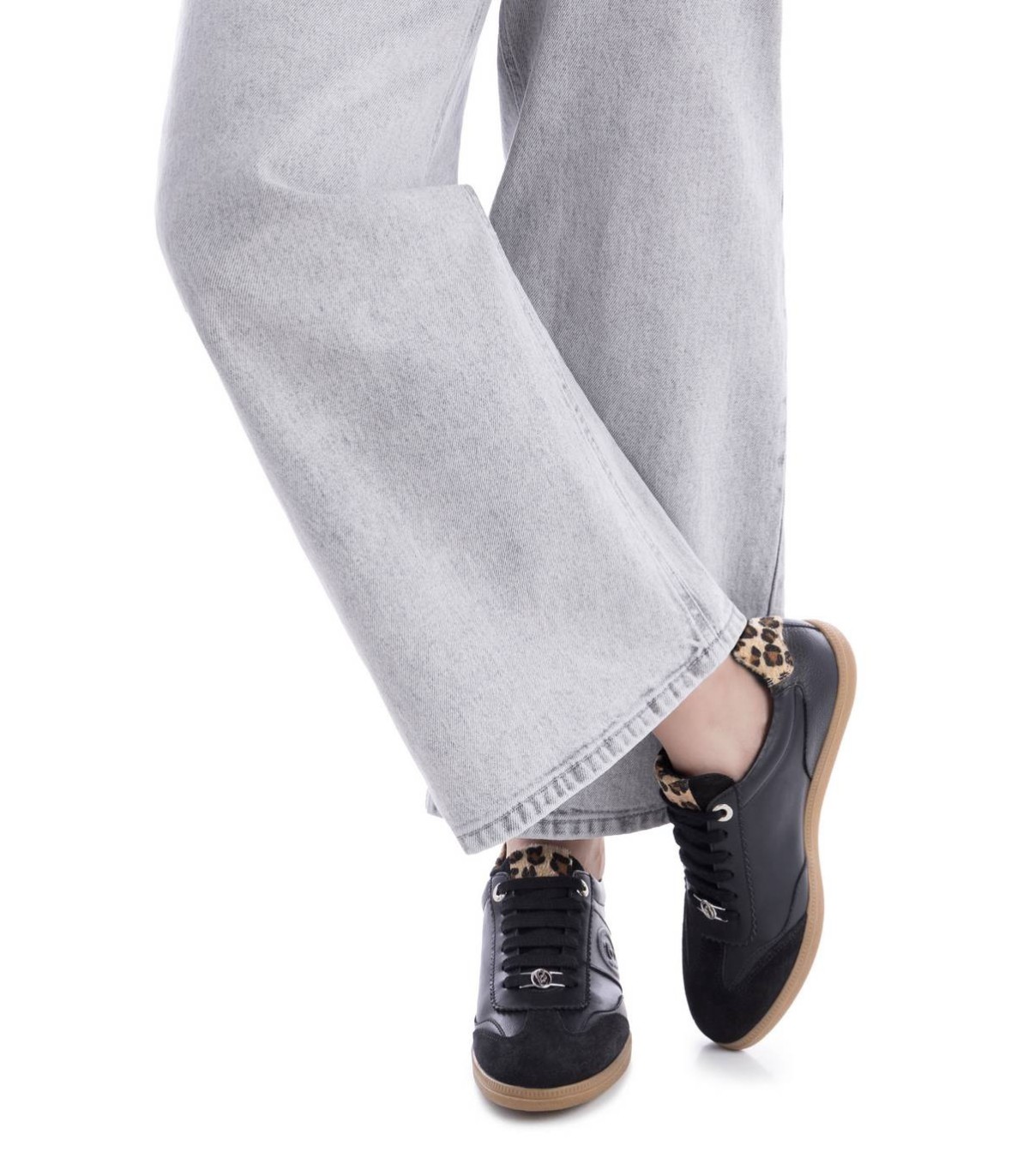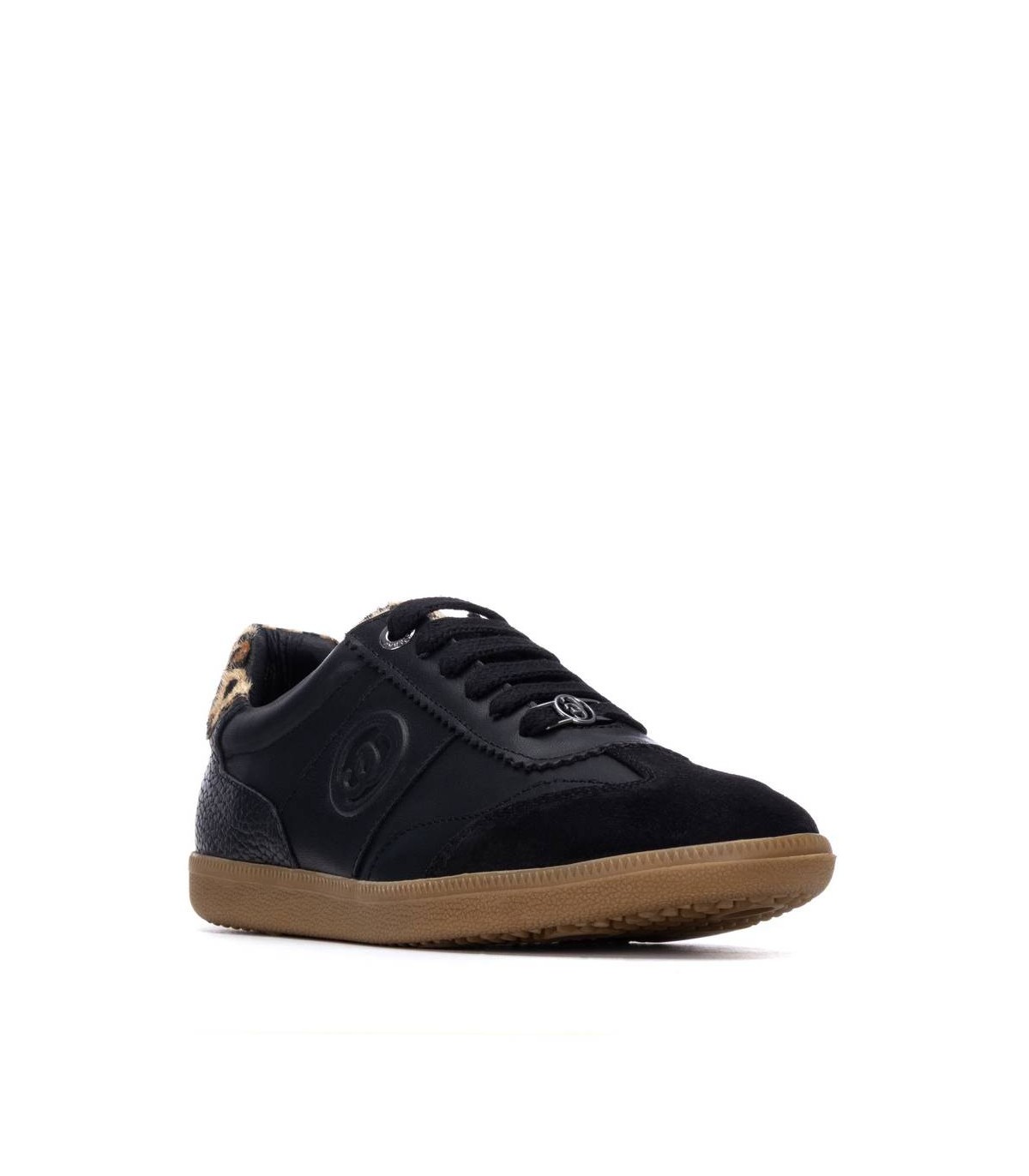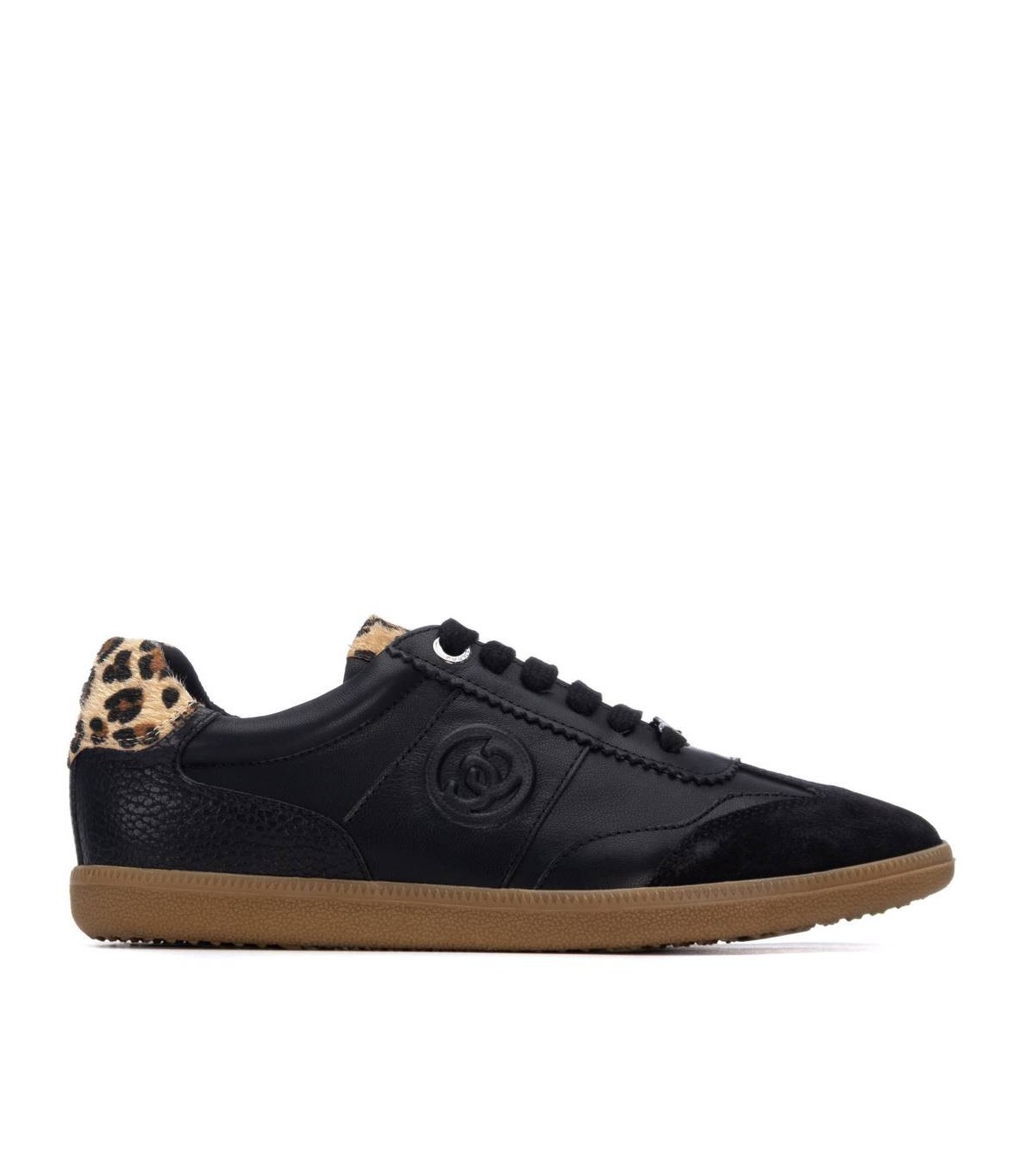 Zapatilla de mujer, de la marca Carmela. Fabricado en piel de alta calidad. Cierre mediante cordones ajustables. Detalles con estampado. Cómoda suela plana de goma antideslizante. Con plantilla extraíble.