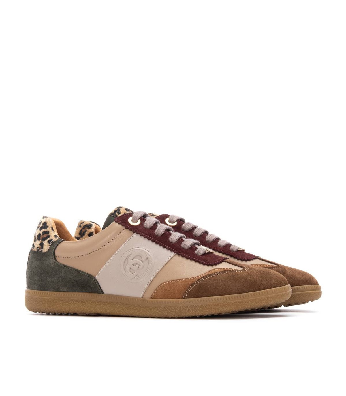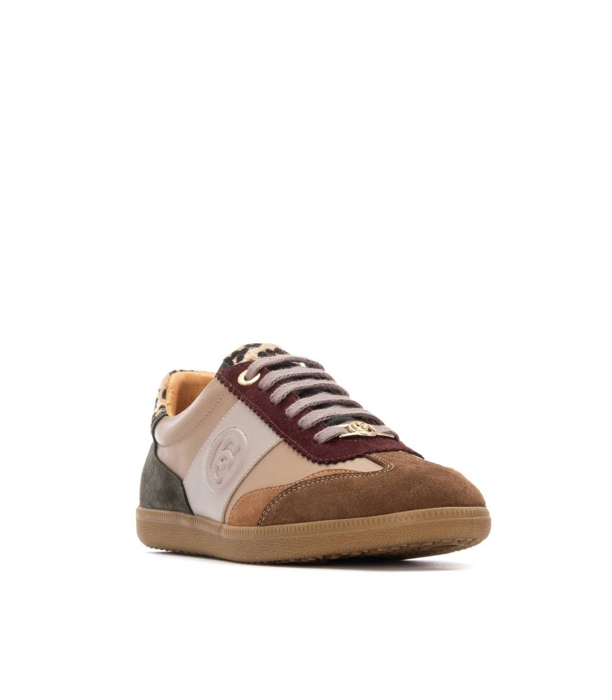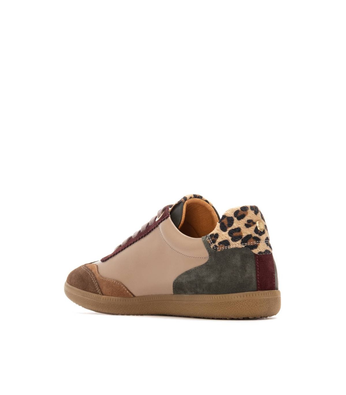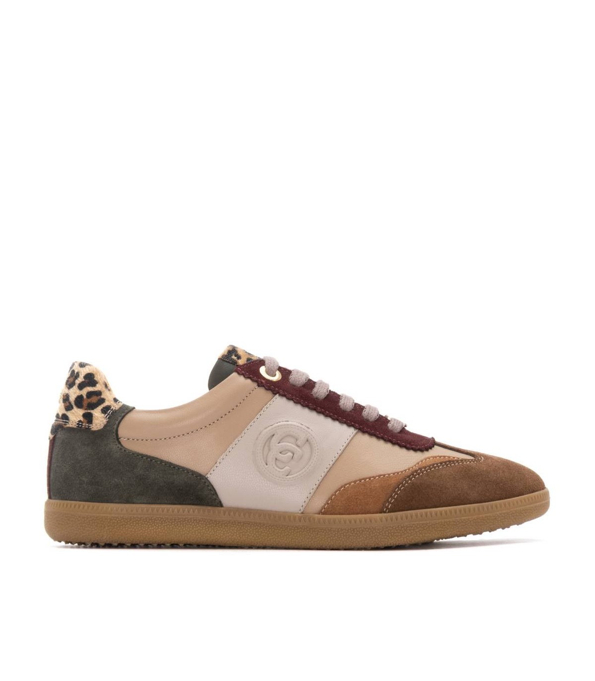 Zapatilla de mujer, de la marca Carmela. Fabricado en piel de alta calidad. Cierre mediante cordones ajustables. Detalles con estampado. Cómoda suela plana de goma antideslizante. Con plantilla extraíble.