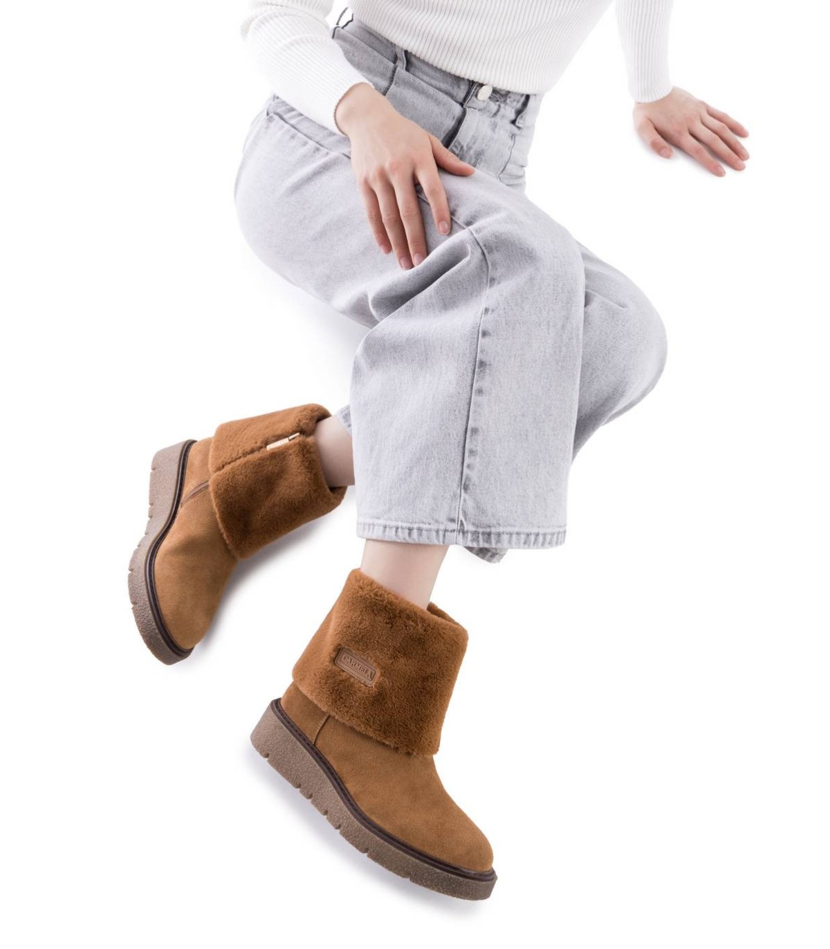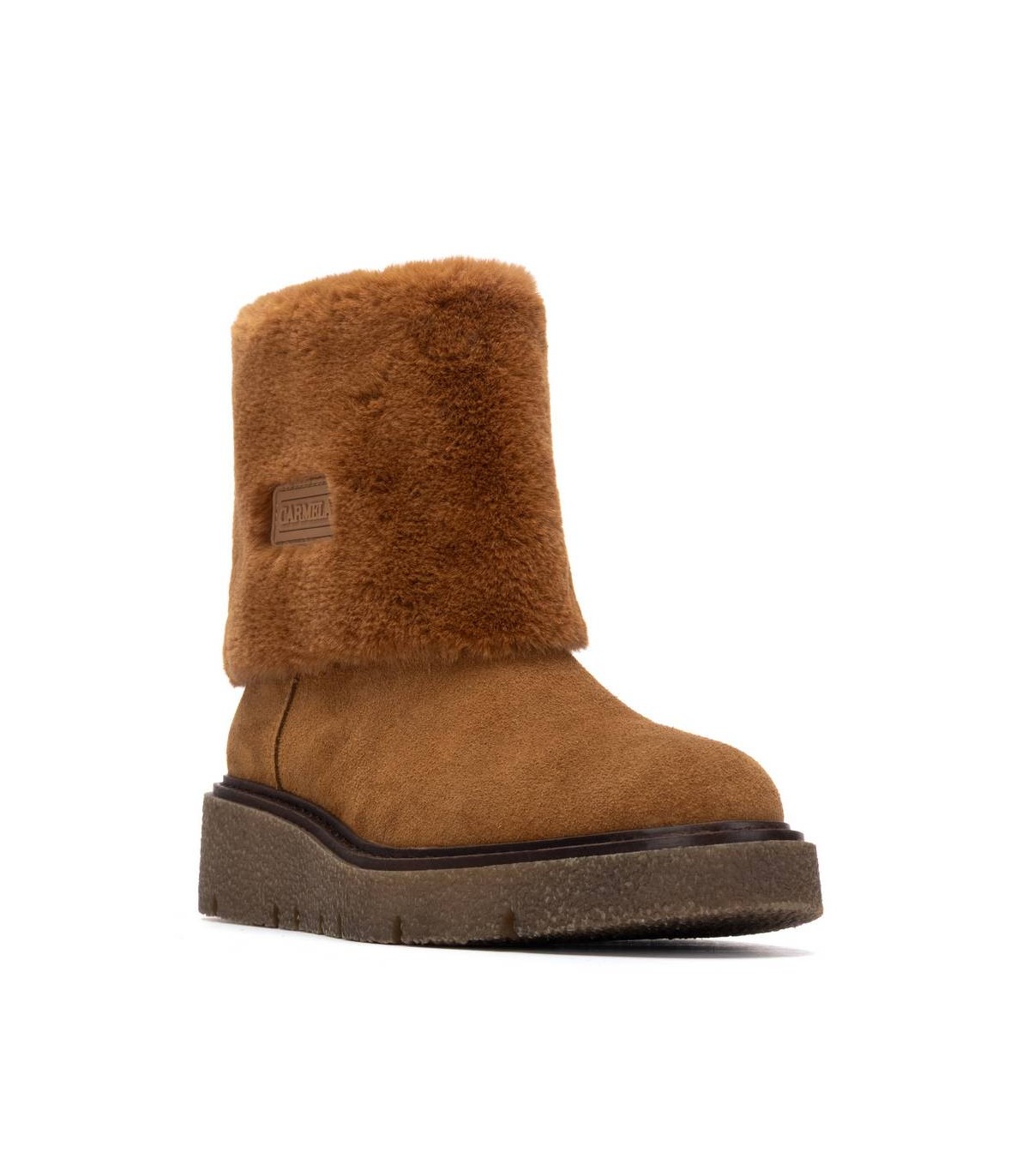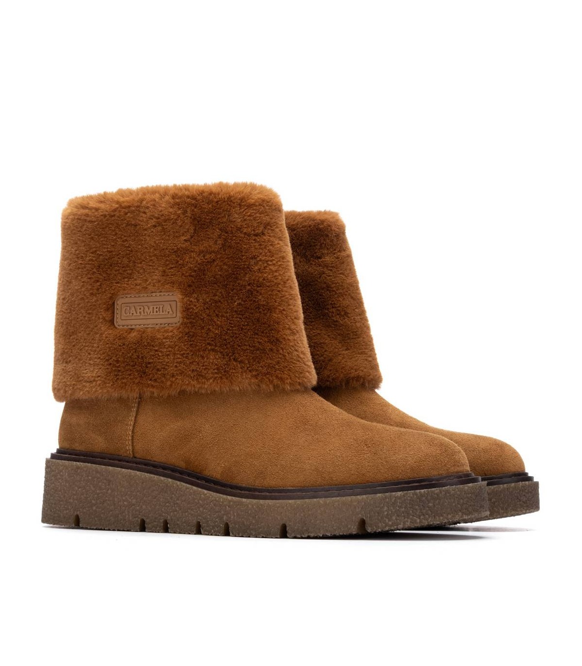 Botín de mujer, de la marca Carmela. Fabricado en un suave serraje. Cierre mediante cremallera interna. Super Calentito con piel por dentro. Suela de goma antideslizante. Plantilla extraíble