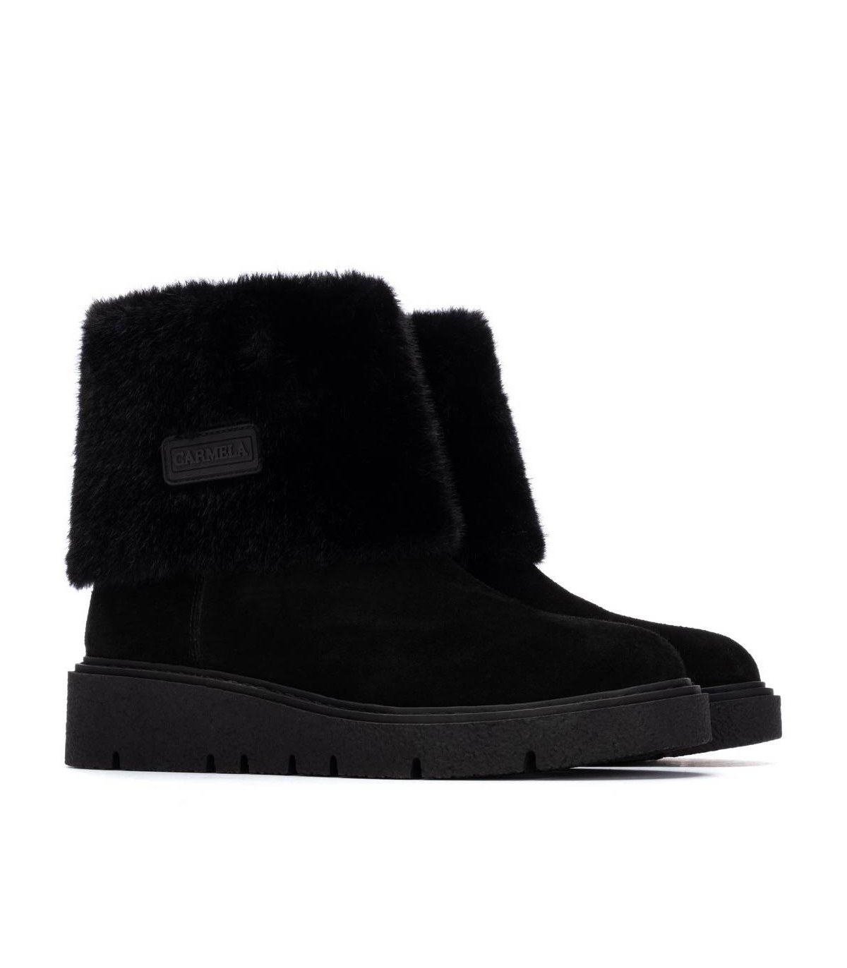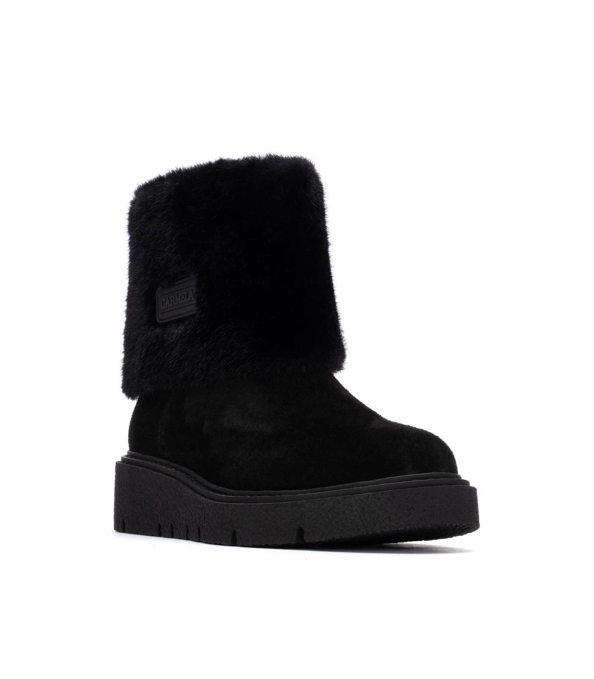 Botín de mujer, de la marca Carmela. Fabricado en un suave serraje. Cierre mediante cremallera interna. Super Calentito con piel por dentro. Suela de goma antideslizante. Plantilla extraíble