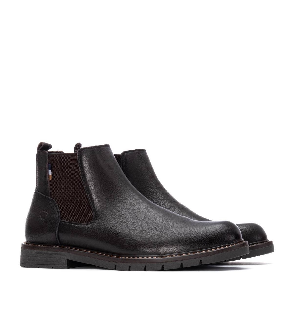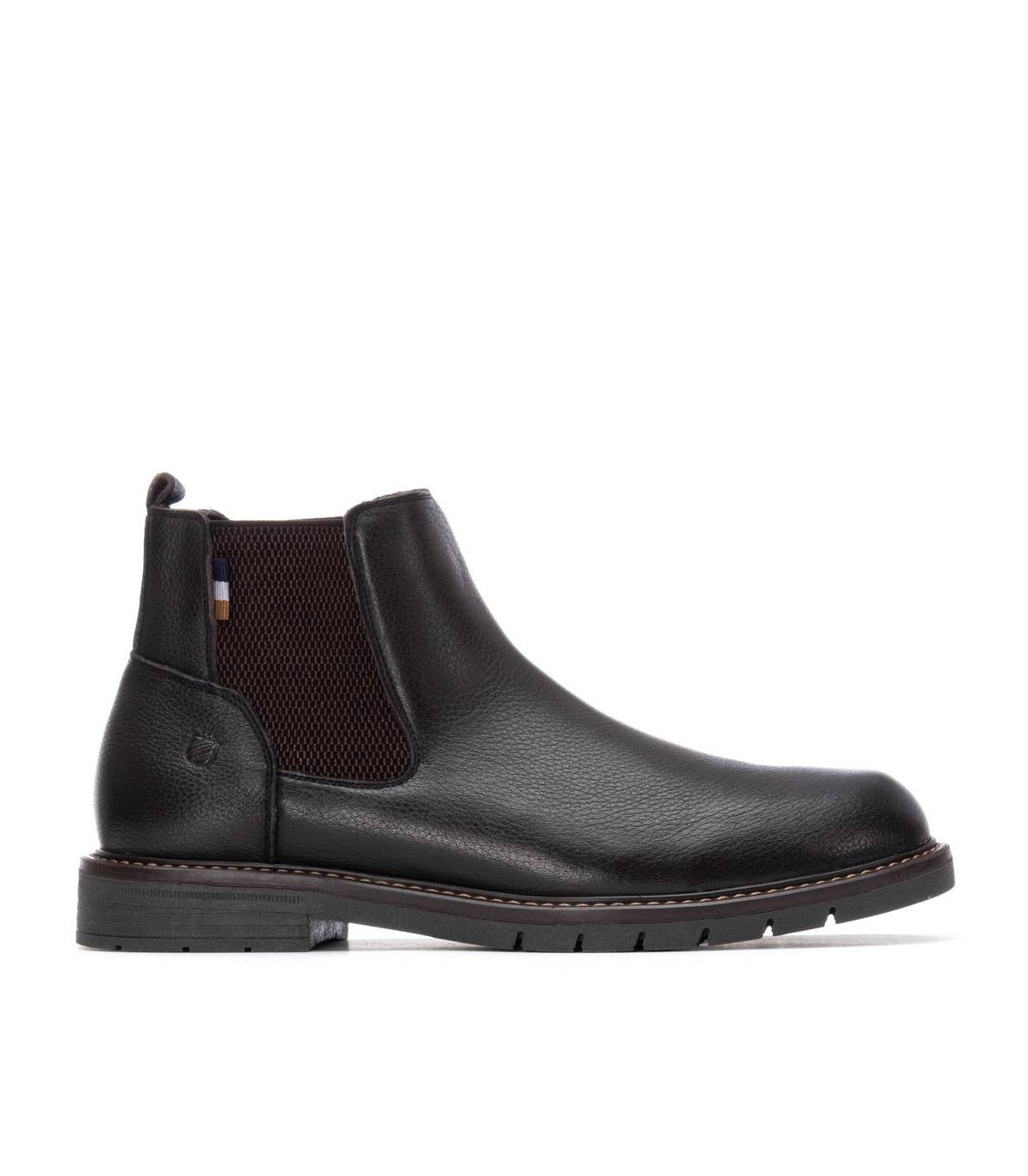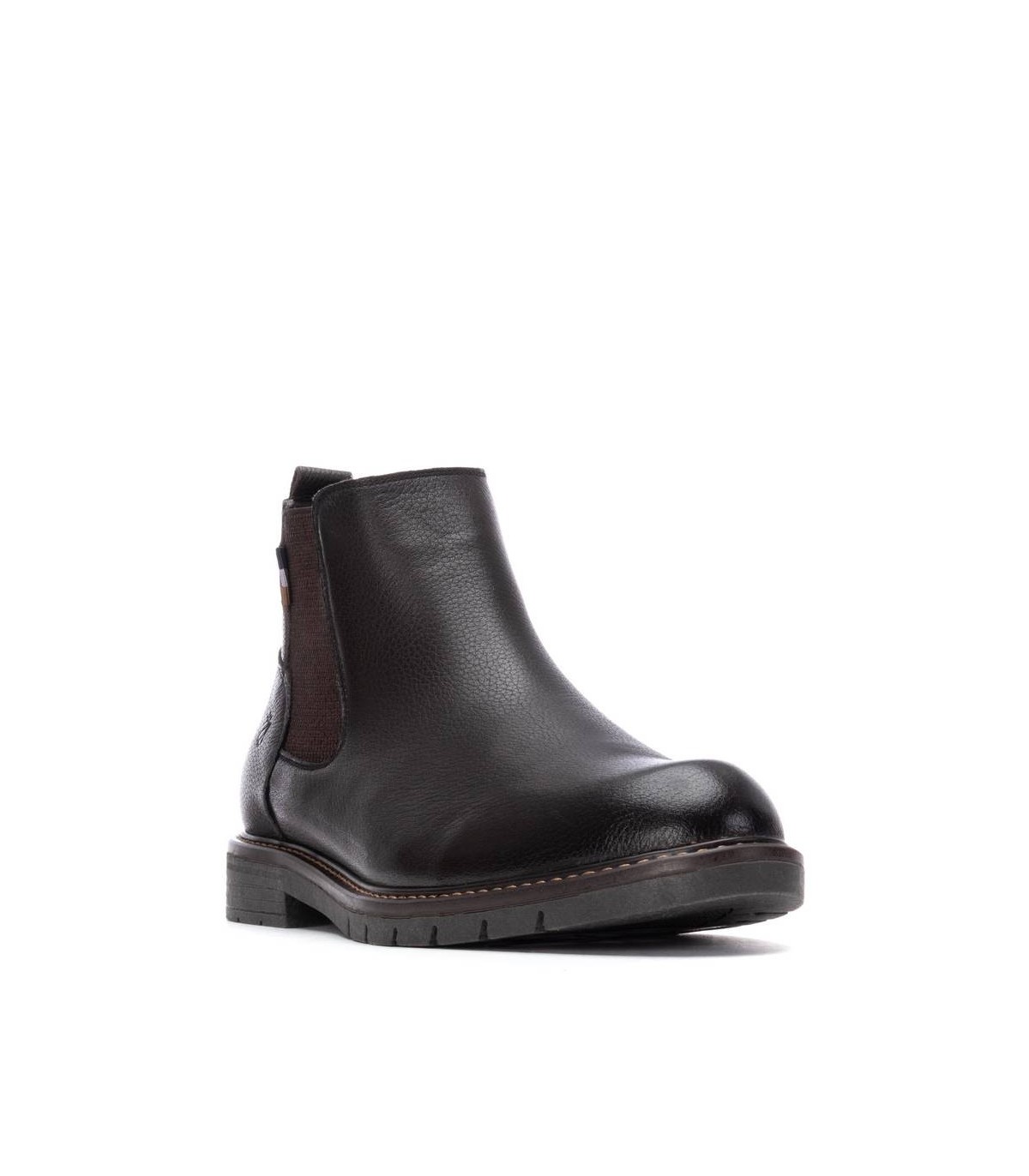 Botín de caballero, de la marca Carmela. Fabricado en piel de alta calidad. Cierre mediante chelseas laterales. Tirador trasero para facilitar la puesta. Suela de goma antideslizante.