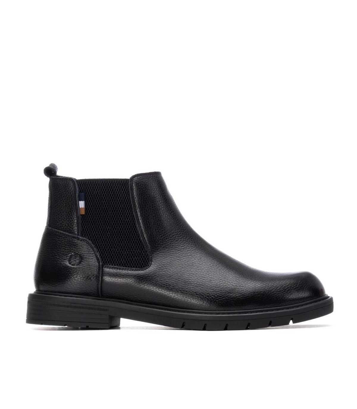 Botín de caballero, de la marca Carmela. Fabricado en piel de alta calidad. Cierre mediante chelseas laterales. Tirador trasero para facilitar la puesta. Suela de goma antideslizante.
