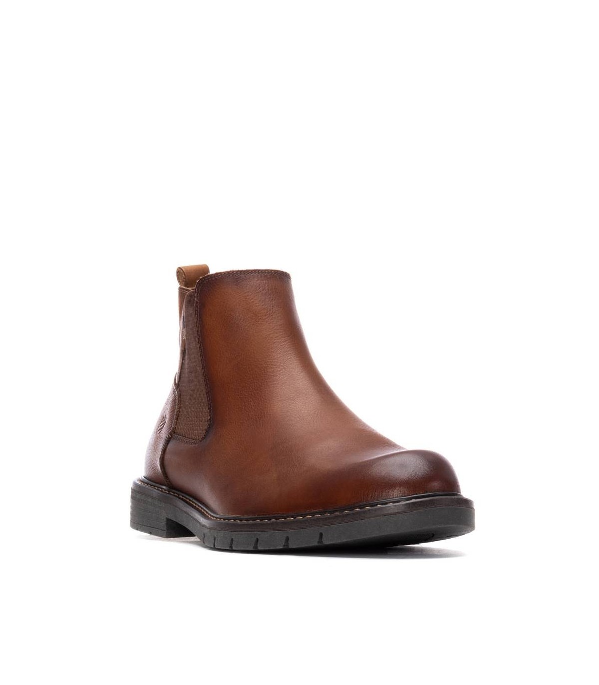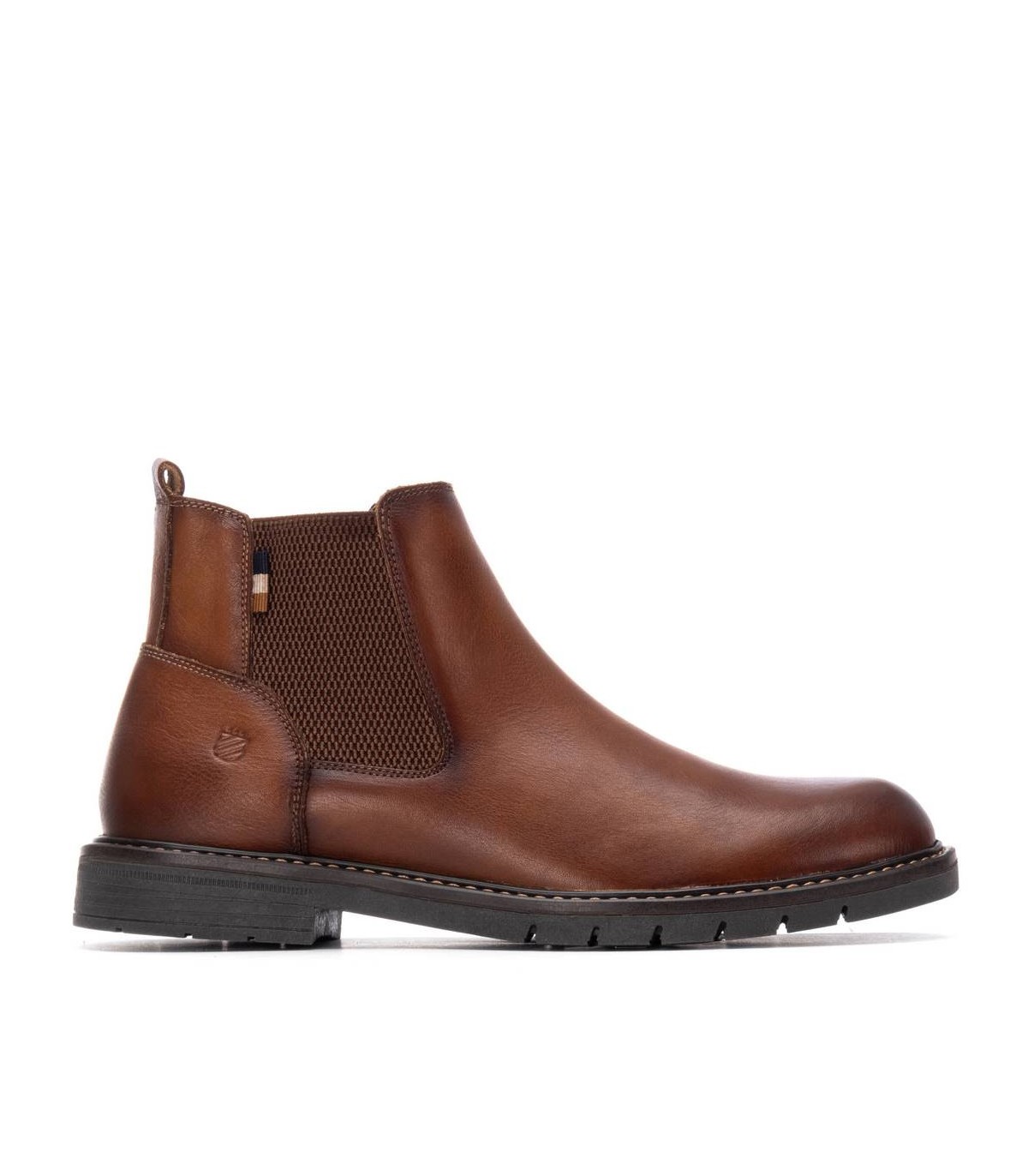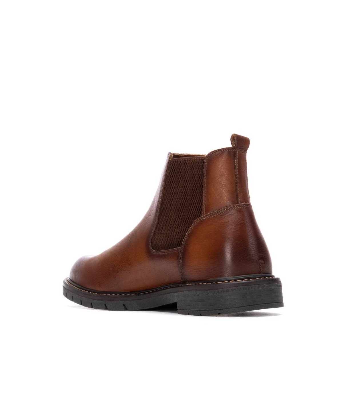 Botín de caballero, de la marca Carmela. Fabricado en piel de alta calidad. Cierre mediante chelseas laterales. Tirador trasero para facilitar la puesta. Suela de goma antideslizante.