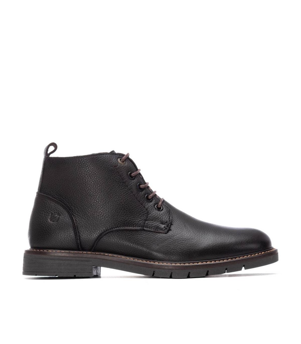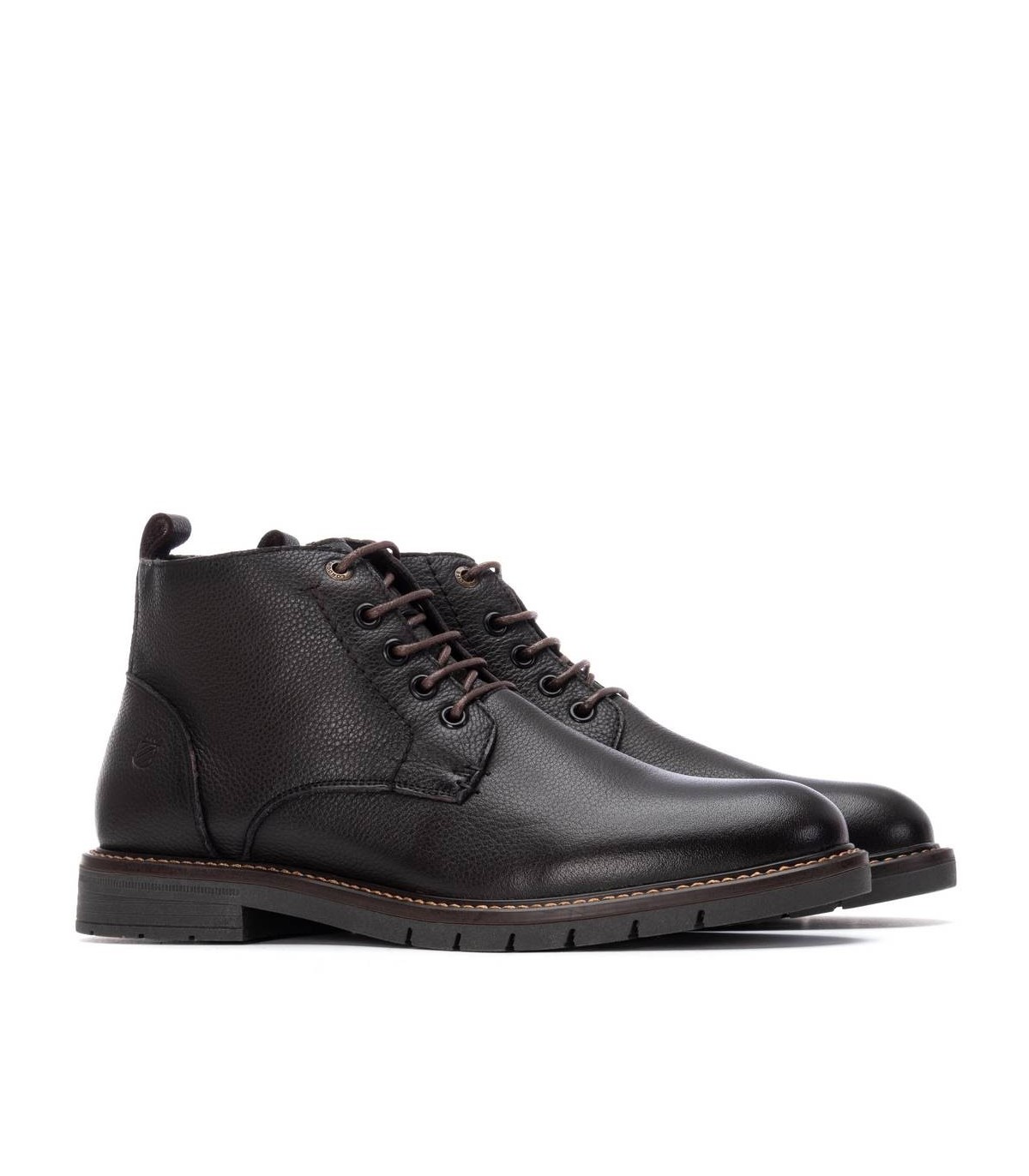 Botín de caballero, de la marca Carmela. Fabricado en piel de alta calidad. Cierre mediante cremallera interna y cordones ajustables. Tirador trasero para facilitar la puesta. Suela de goma antideslizante.