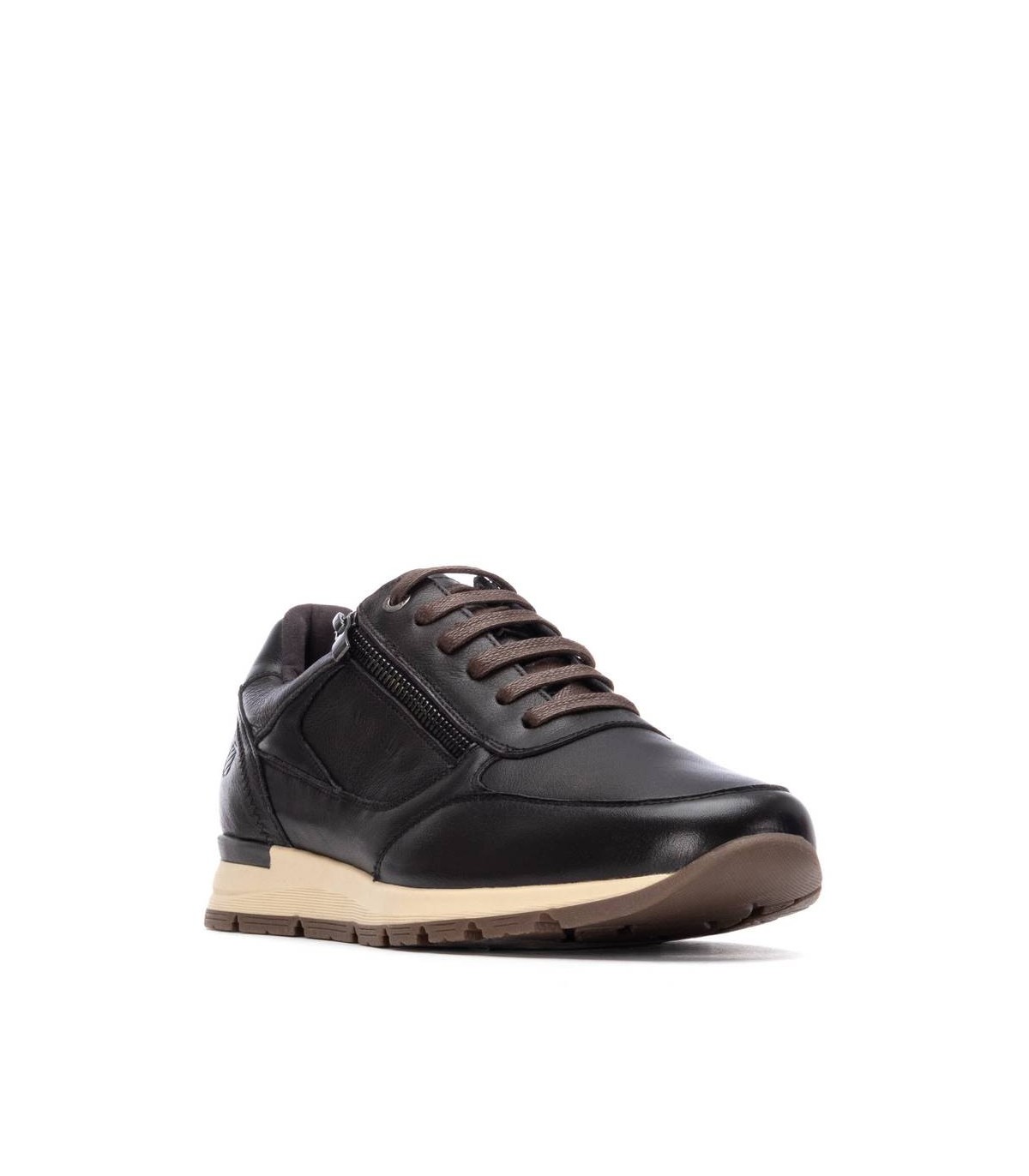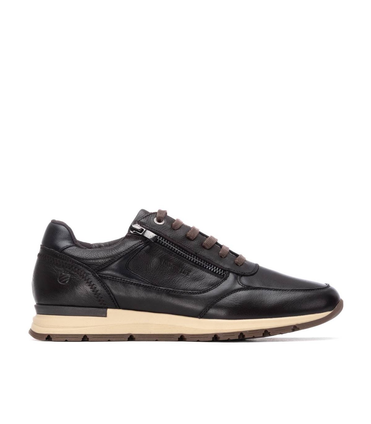 Zapatilla de caballero, de la marca Carmela. Fabricado en piel de alta calidad. Cierre mediante cremallera lateral y cordones ajustables. Suelo de cómoda goma antideslizante.