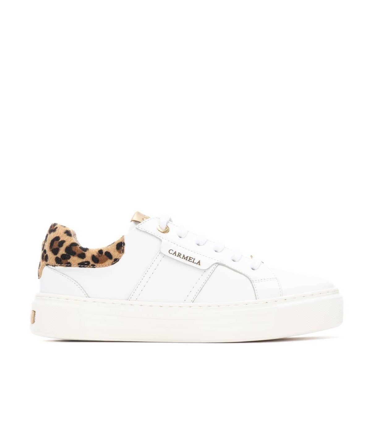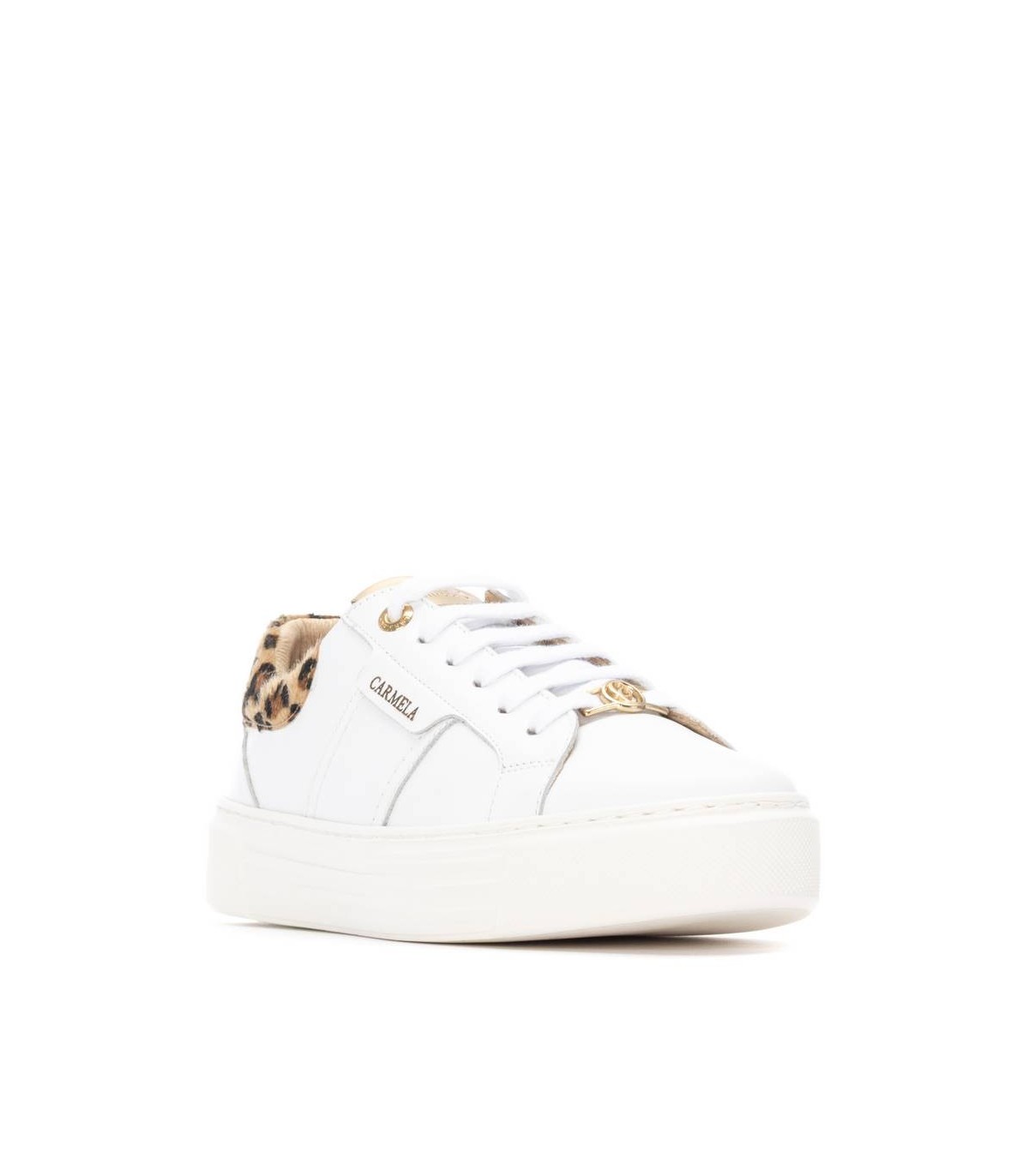 Zapatilla de mujer, de la marca Carmela. Fabricada en piel de alta calidad. Cierre mediante cordones ajustables. Detalle trasero con estampado animal. Suela de goma antideslizante. Con plantilla extraíble.