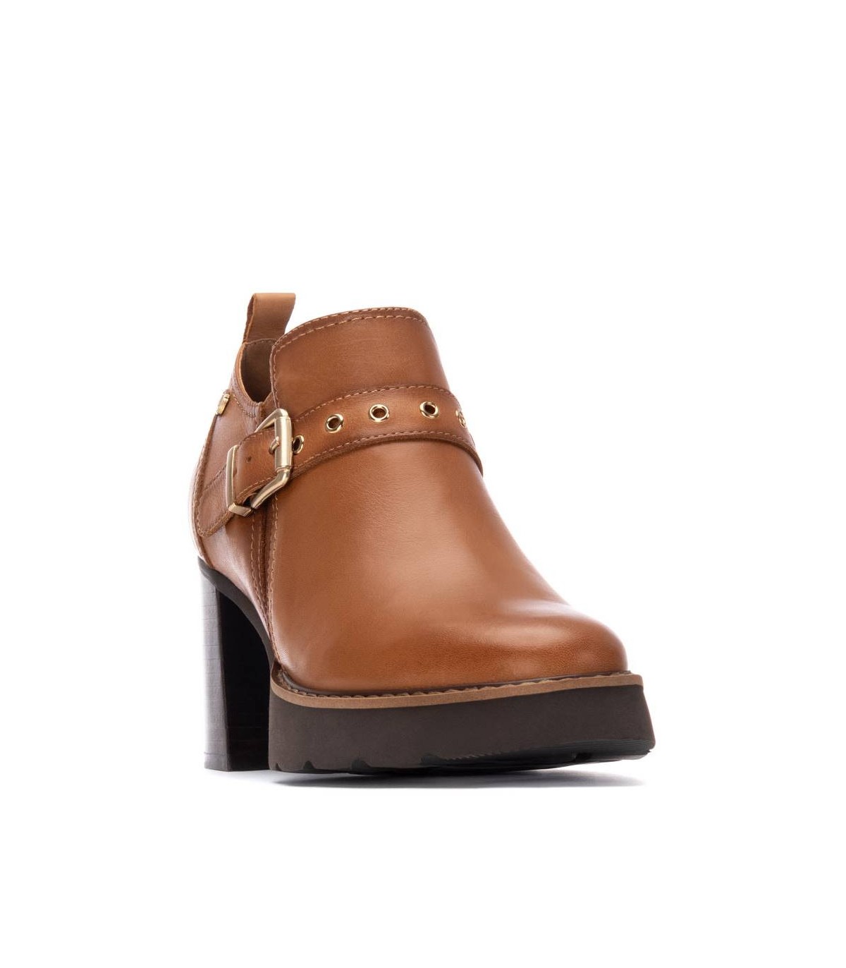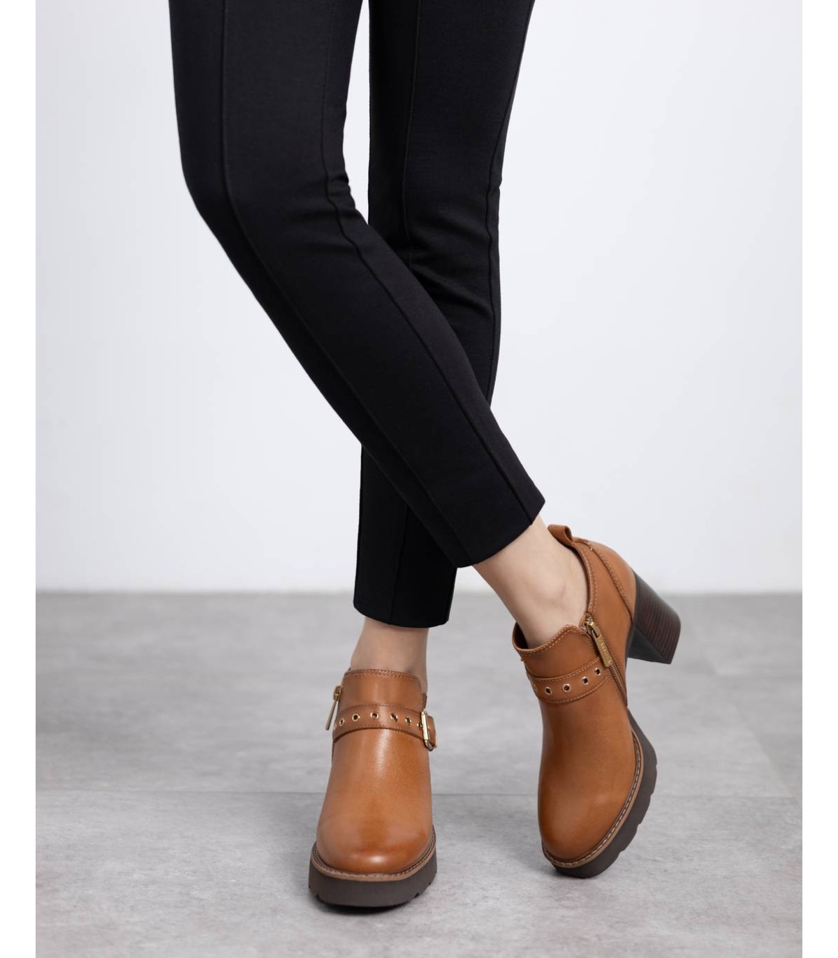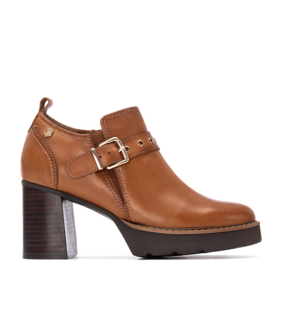 Zapato de mujer, de la marca Carmela. Fabricado en piel de alta calidad. Cierre mediante cremallera interna y hebilla delantera. Detalles laterales con chelseas. Tirador trasero para facilitar la puesta. Plantilla extraíble