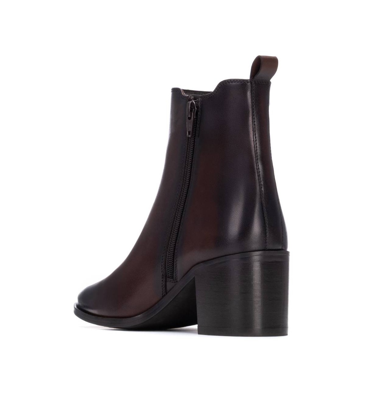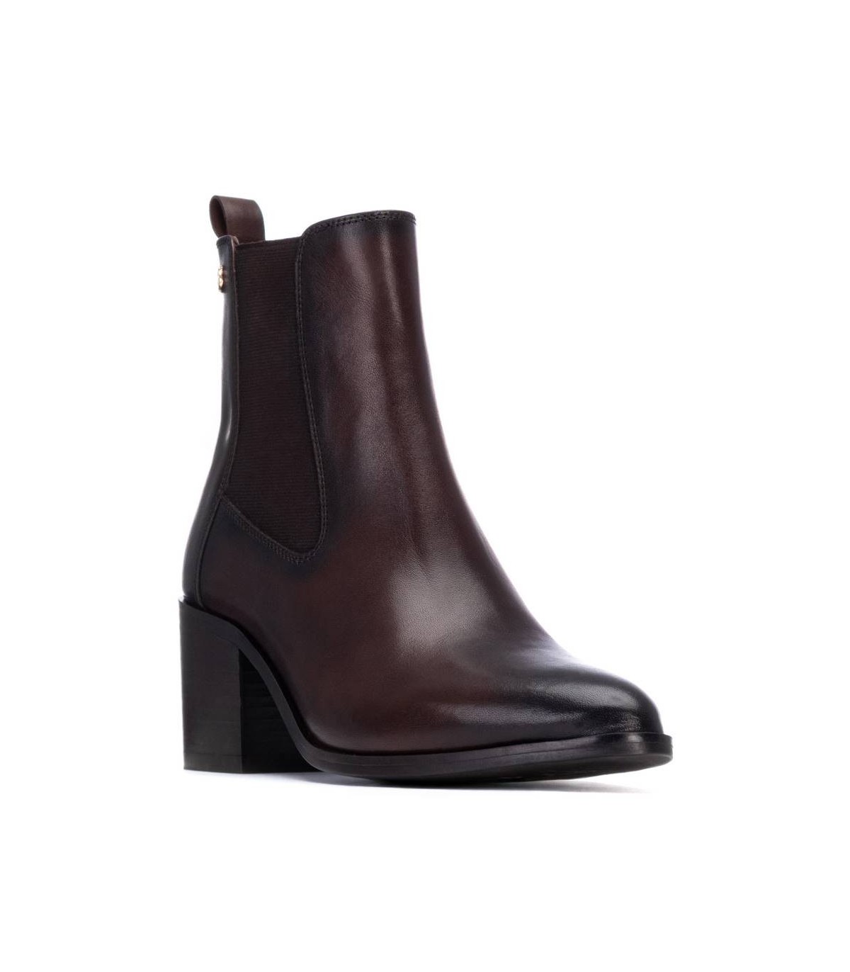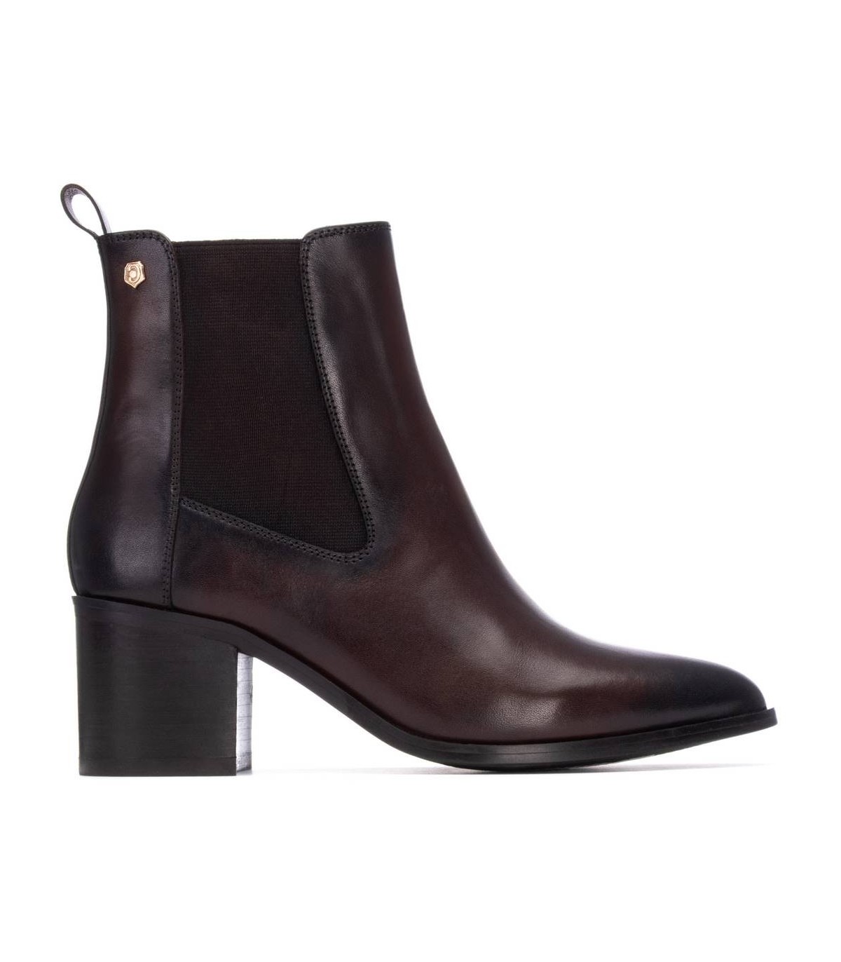 Botín de mujer, de la marca Carmela. Fabricado en piel de alta calidad. Cierre mediante chelseas laterales. Tirador trasero para facilitar la puesta. Suela antideslizante. Con plantilla extraíble. Con cremallera interior.