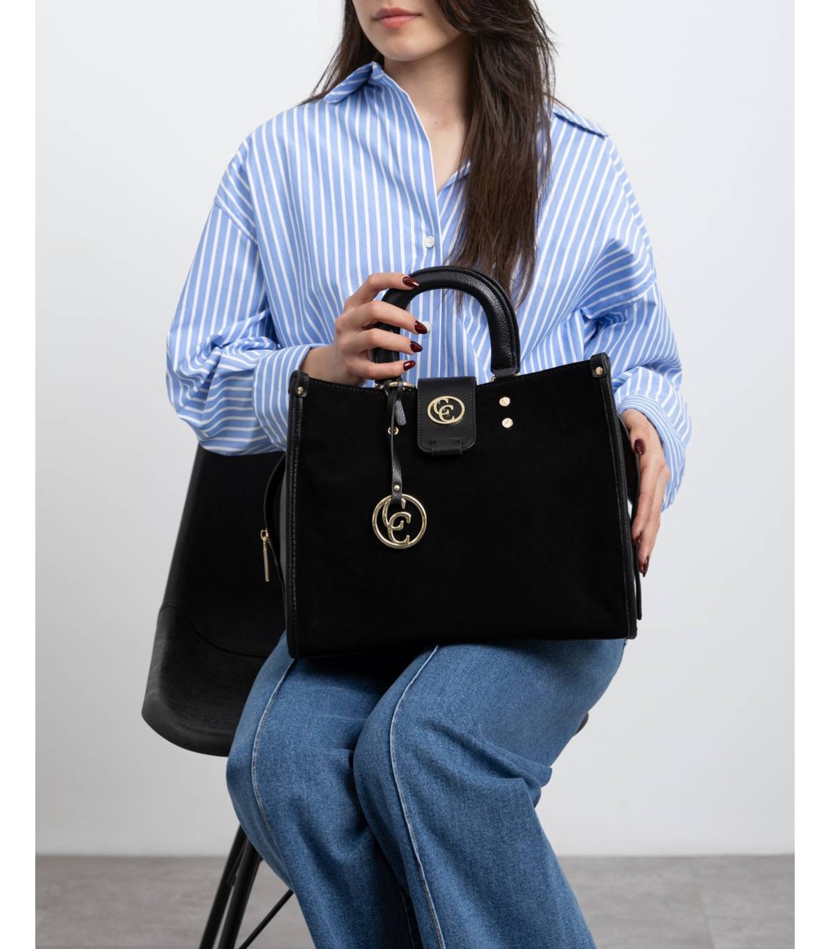 Bolso de piel de la marca Carmela con cierre de cremallera y bolsillos interiores. Medidas: 27x34x15
