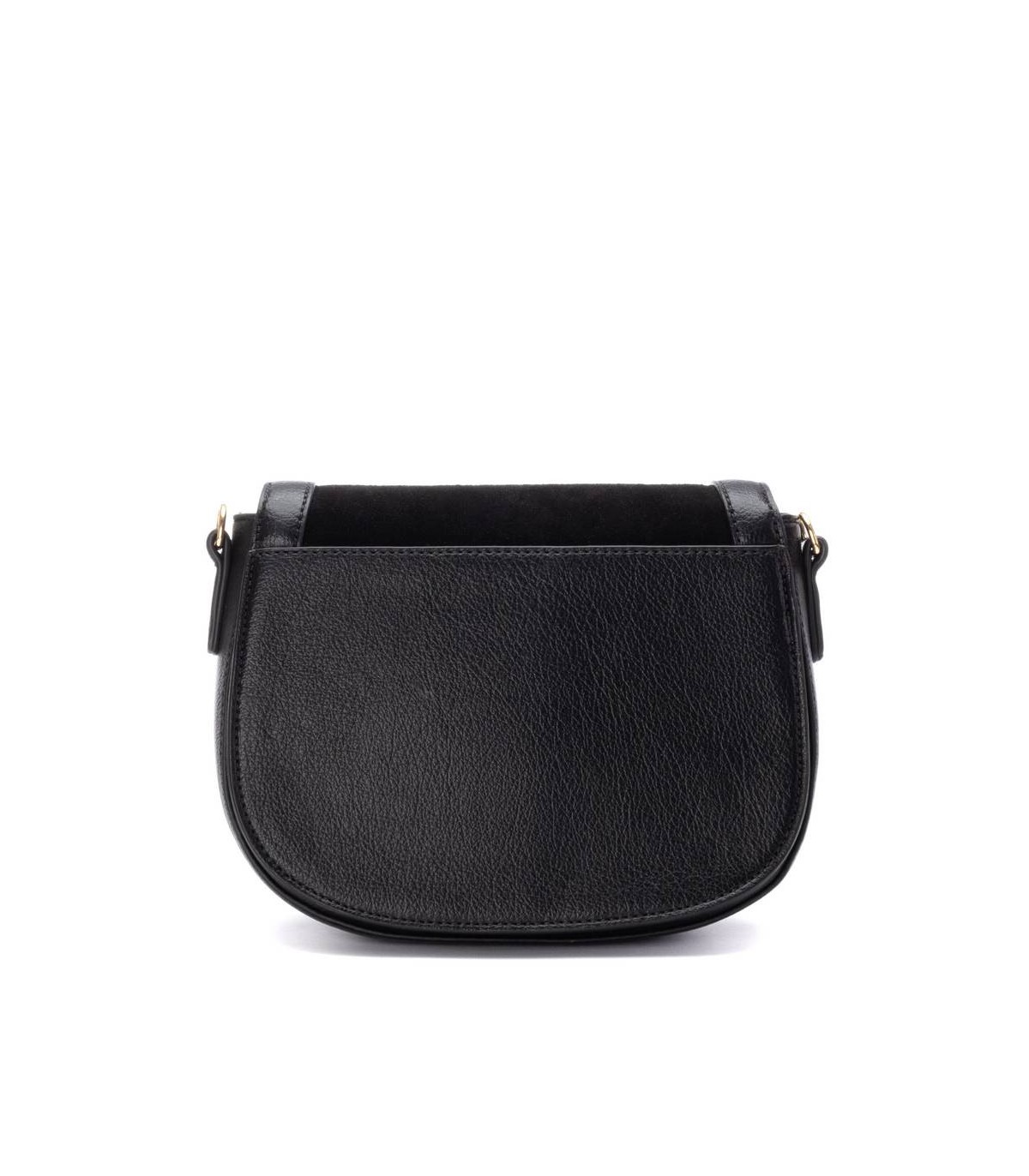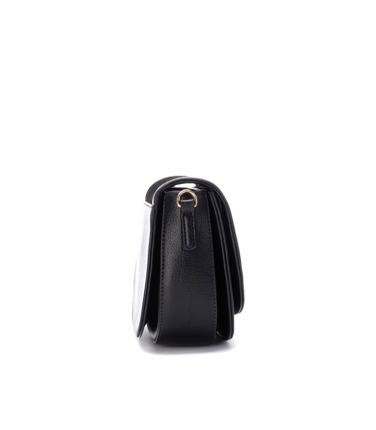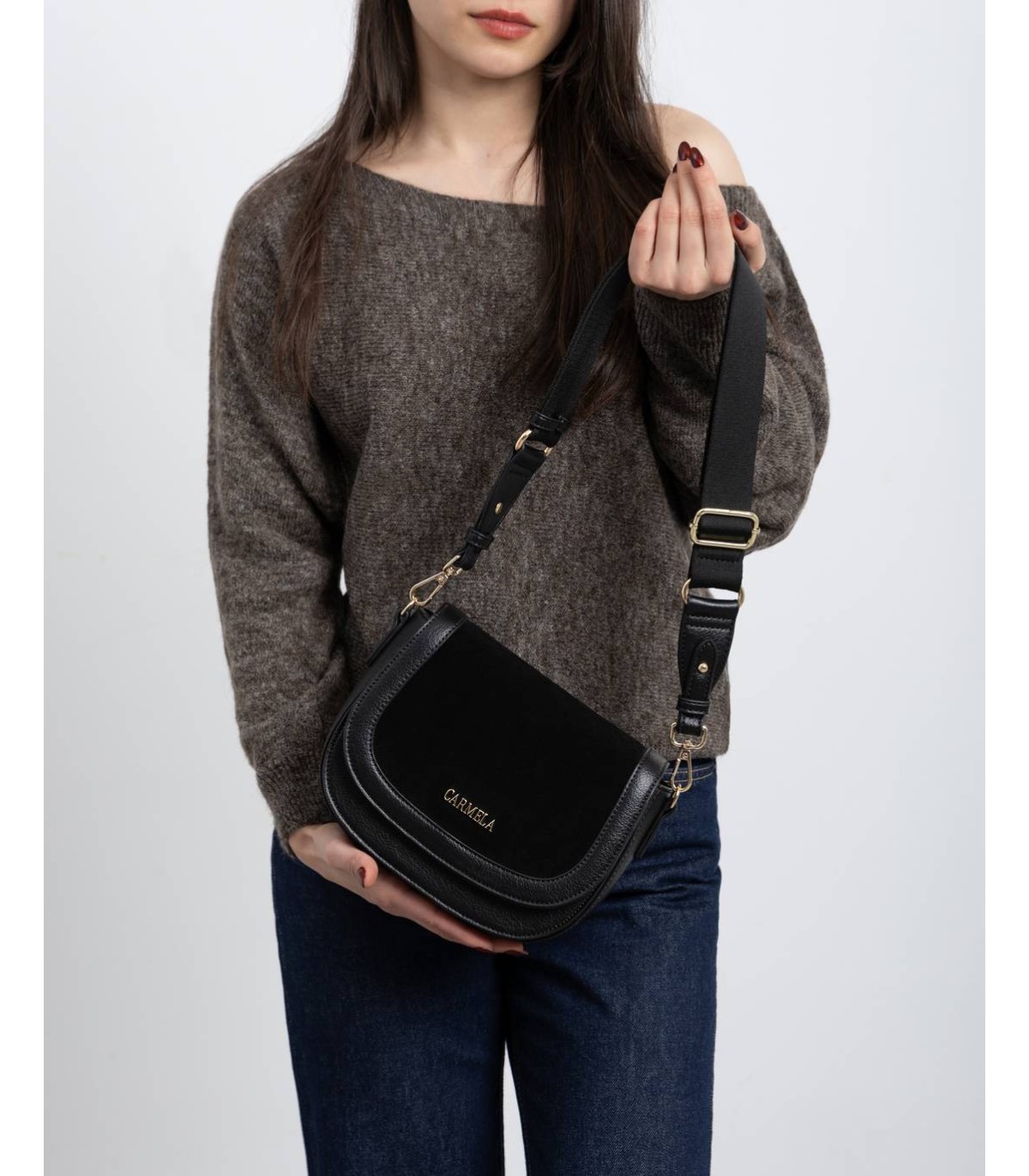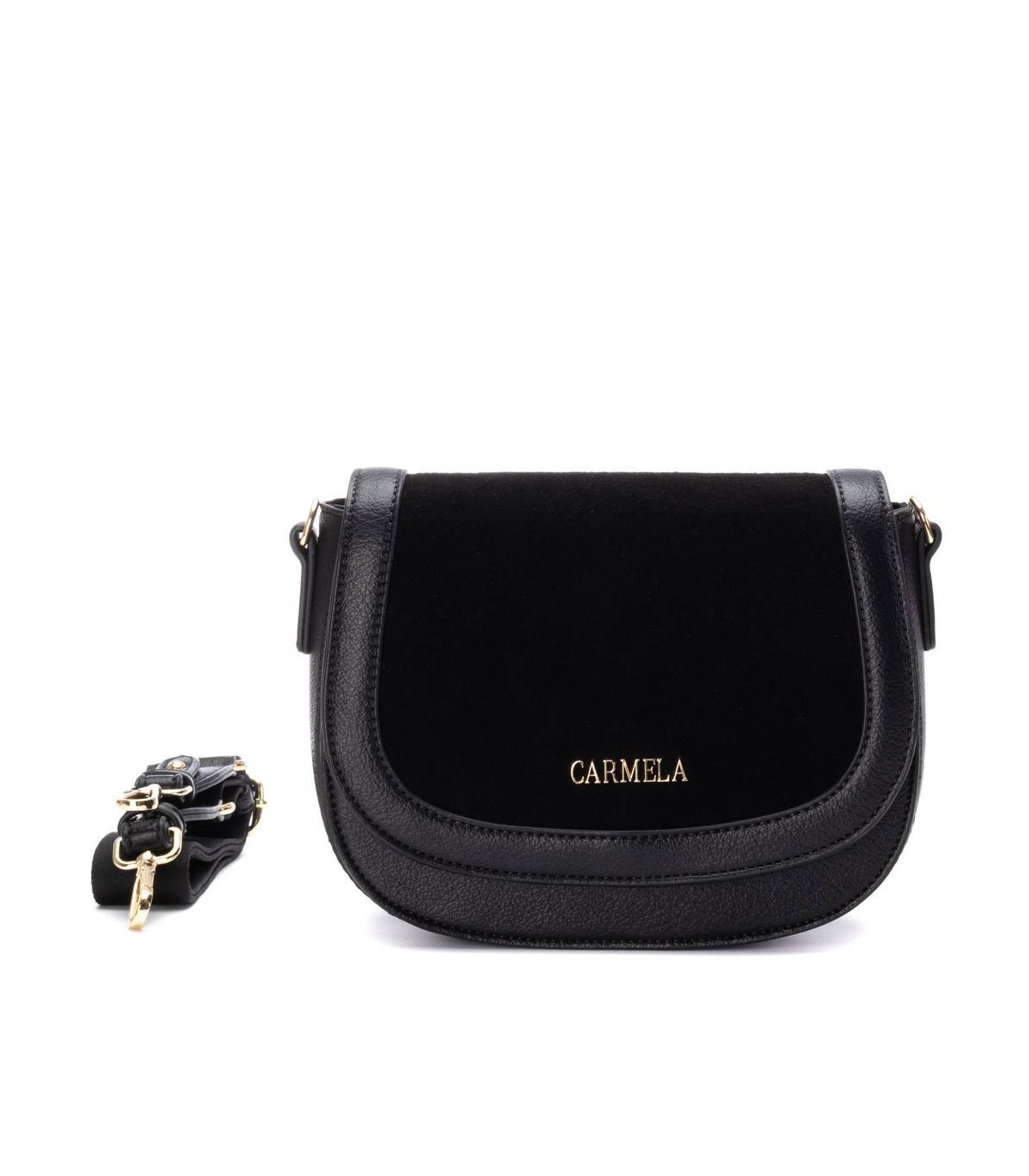 Bolso tipo bandolera de la marca Carmela. Fabricado en una combinación de materiales seleccionados, entre ellos serraje, que aportan textura y estilo único al diseño. Destaca por su acabado suave y detalles metálicos discretos, además de una correa ajustable para llevarlo cómodamente. Su interior forrado cuenta con compartimentos prácticos para organizar tus pertenencias. Ideal para quienes buscan un accesorio versátil. Medidas: 18 x 24 x 9 cm.