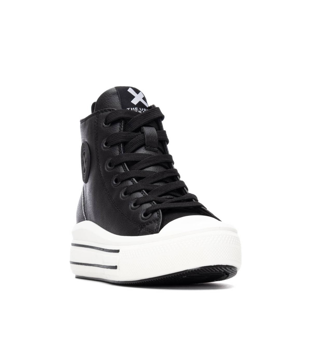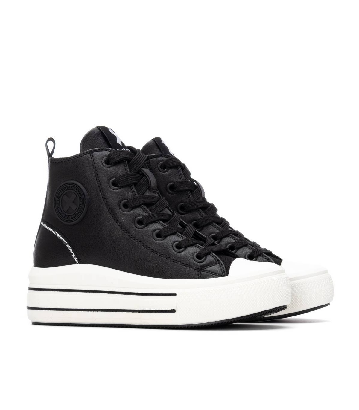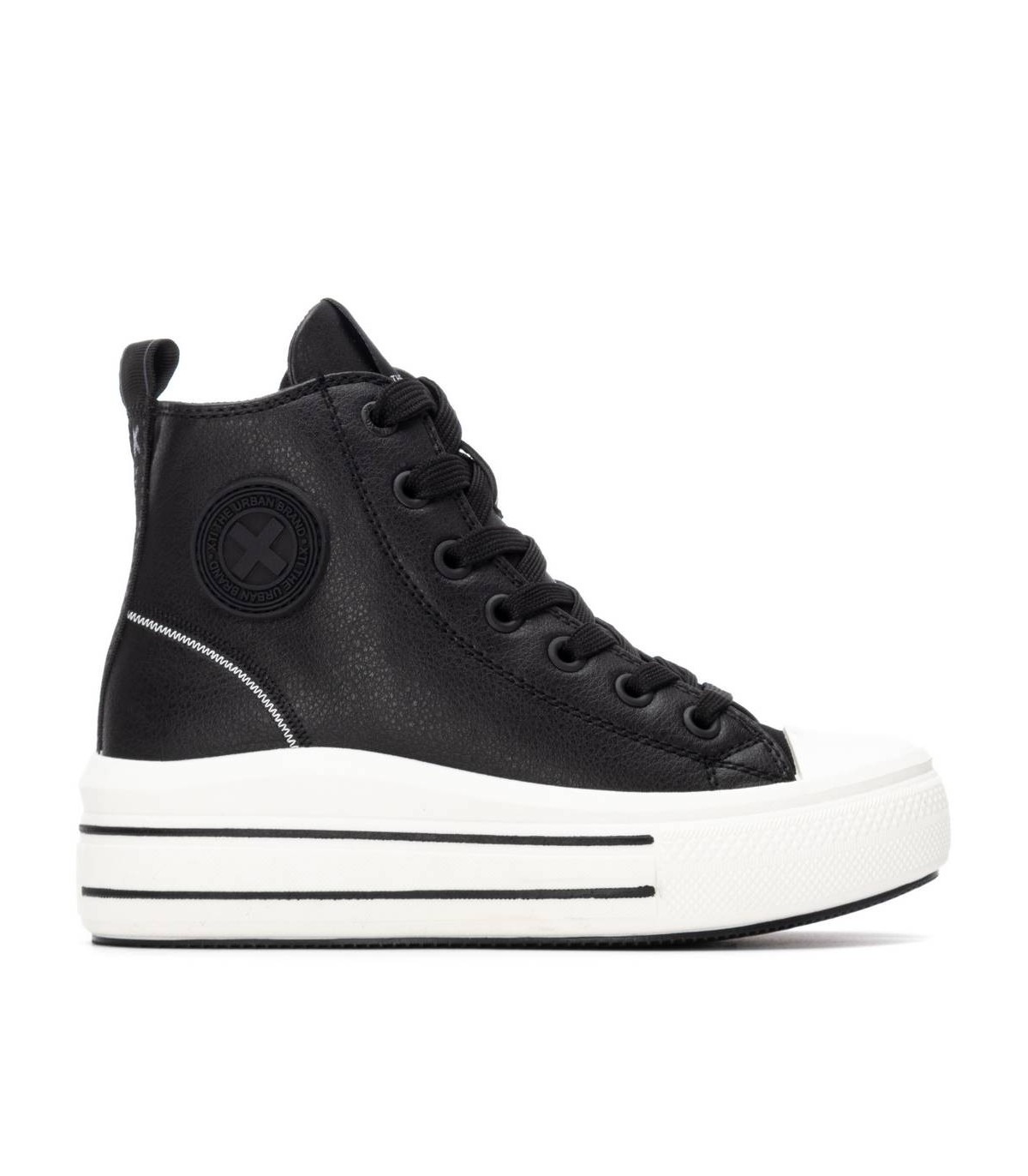 Botín estilo urbano de niña, de la marca Xti Kids. Fabricado en material sintético con acabado liso y resistente. Diseño tipo sneaker con puntera de goma y piso alto, que le aporta un look moderno y desenfadado. Incorpora cordones en la parte frontal y cremallera interior para facilitar el calce. La suela de goma proporciona comodidad y un buen agarre. Ideal para un estilo casual con un toque actual. Este modelo ha obtenido el certificado vegano por la organización mundial PETA (Organización de los derechos de los animales).