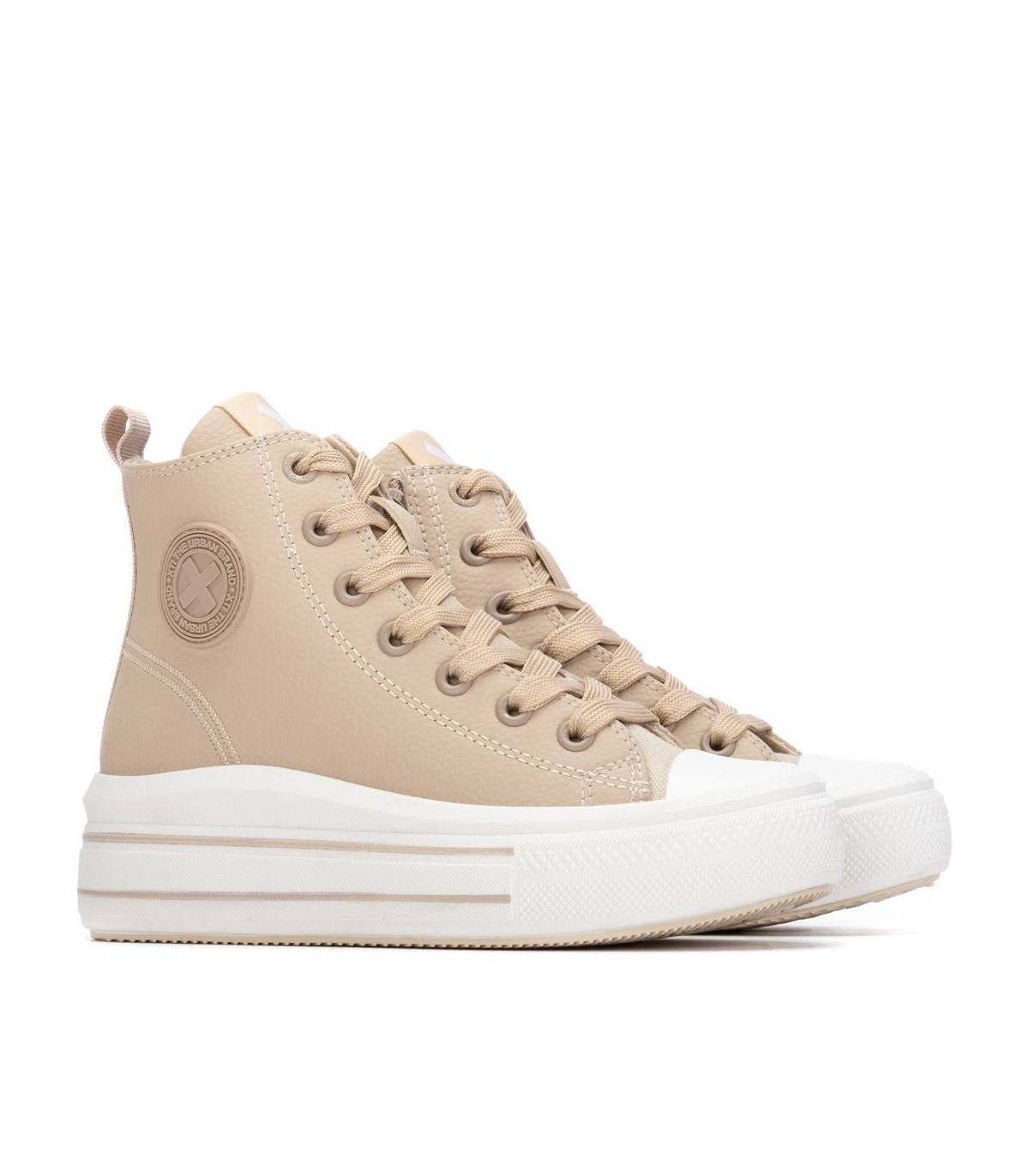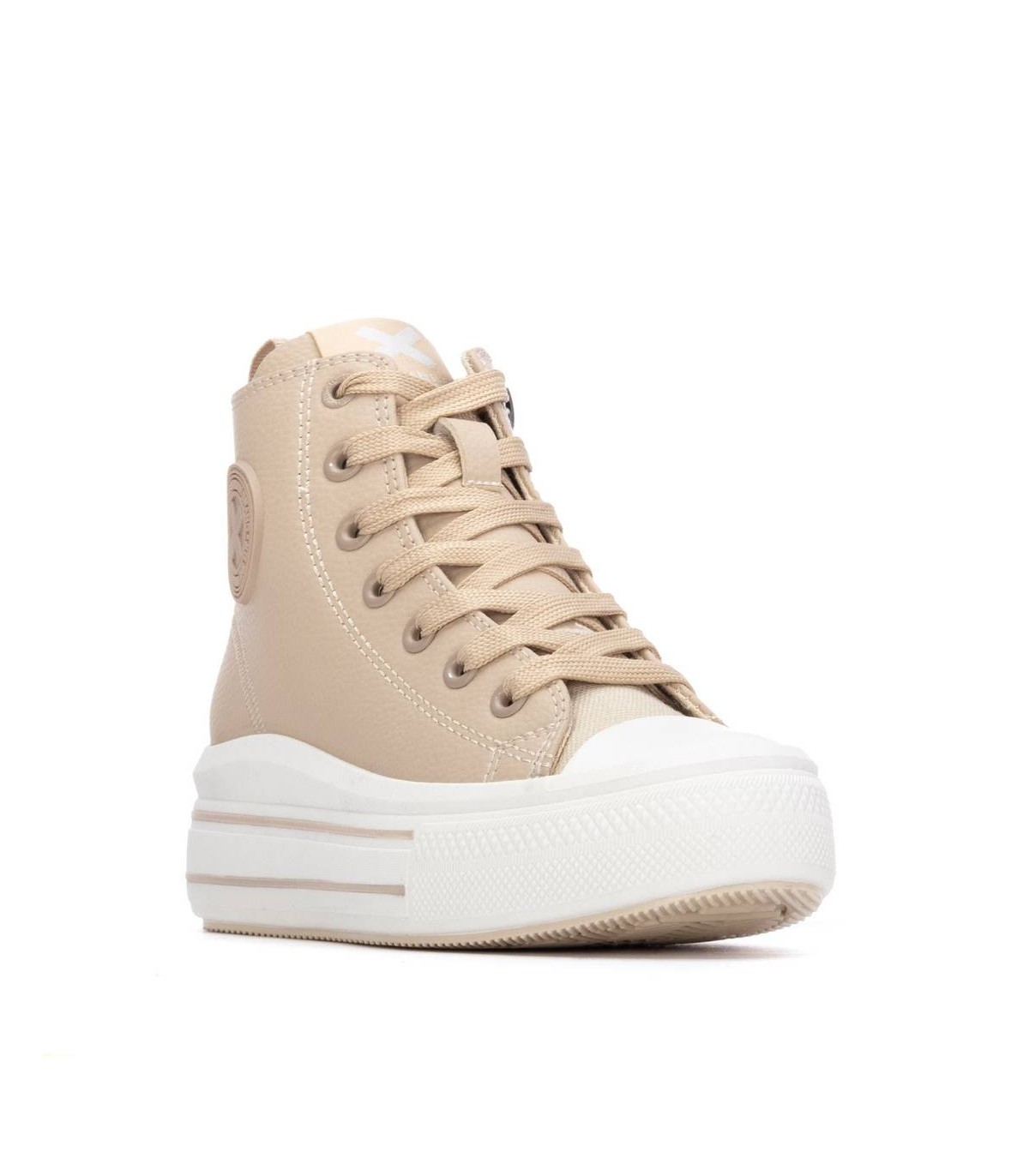Botín estilo urbano de niña, de la marca Xti Kids. Fabricado en material sintético con acabado liso y resistente. Diseño tipo sneaker con puntera de goma y piso alto, que le aporta un look moderno y desenfadado. Incorpora cordones en la parte frontal y cremallera interior para facilitar el calce. La suela de goma proporciona comodidad y un buen agarre. Ideal para un estilo casual con un toque actual. Este modelo ha obtenido el certificado vegano por la organización mundial PETA (Organización de los derechos de los animales).