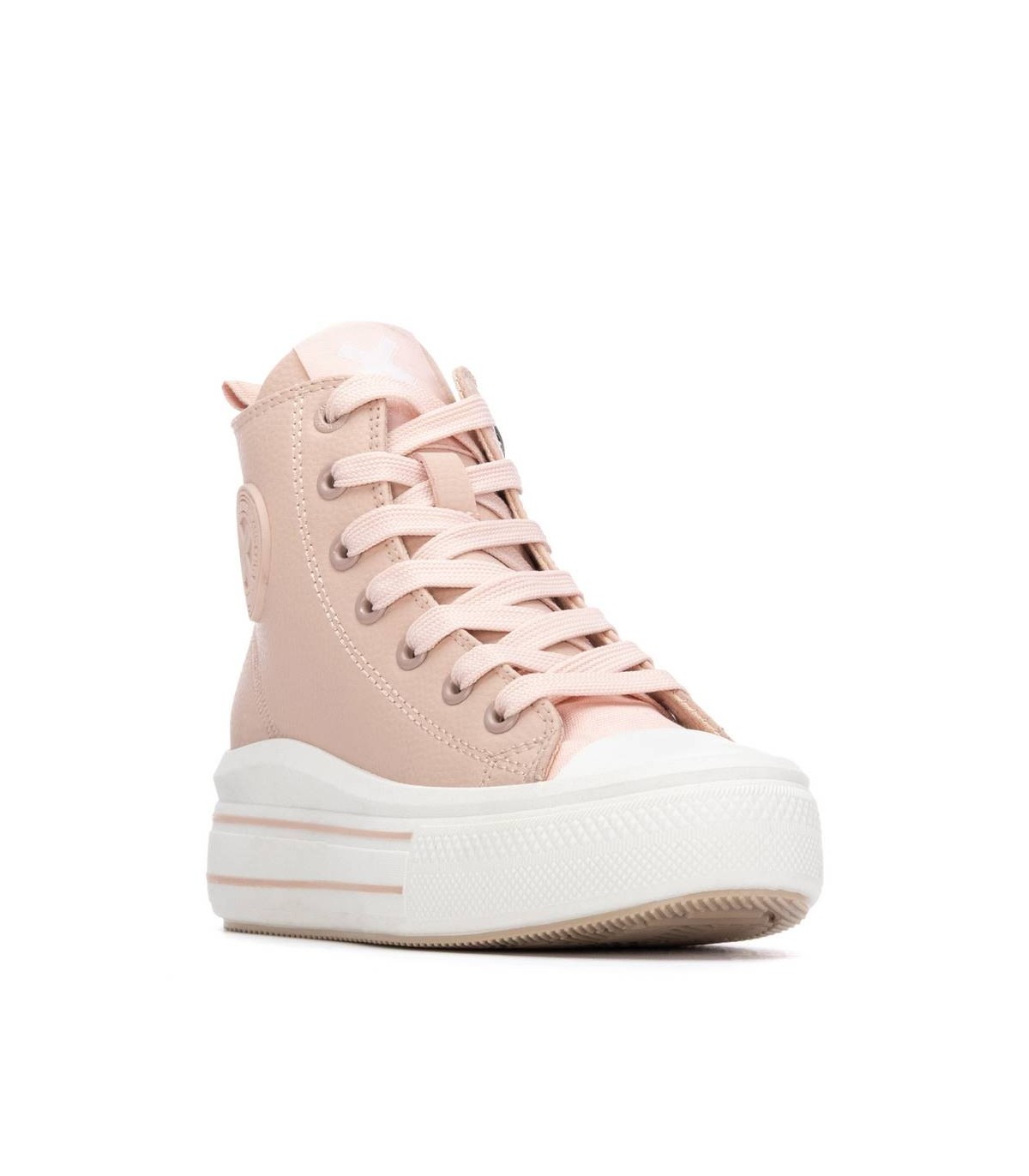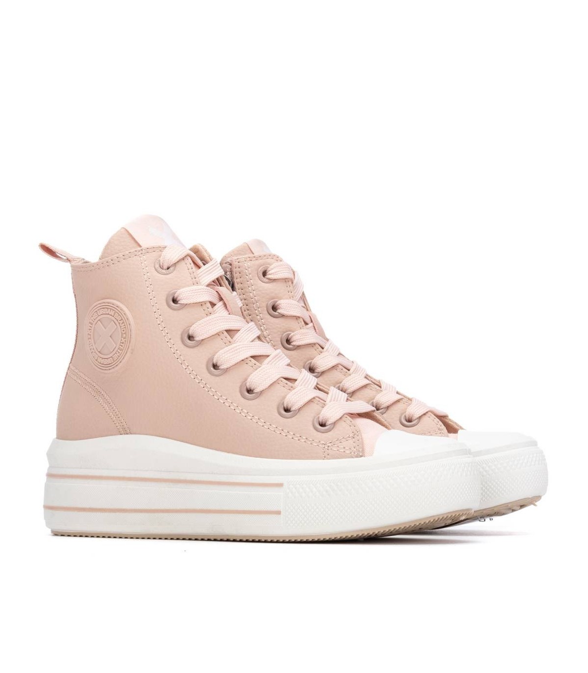 Botín estilo urbano de niña, de la marca Xti Kids. Fabricado en material sintético con acabado liso y resistente. Diseño tipo sneaker con puntera de goma y piso alto, que le aporta un look moderno y desenfadado. Incorpora cordones en la parte frontal y cremallera interior para facilitar el calce. La suela de goma proporciona comodidad y un buen agarre. Ideal para un estilo casual con un toque actual. Este modelo ha obtenido el certificado vegano por la organización mundial PETA (Organización de los derechos de los animales).