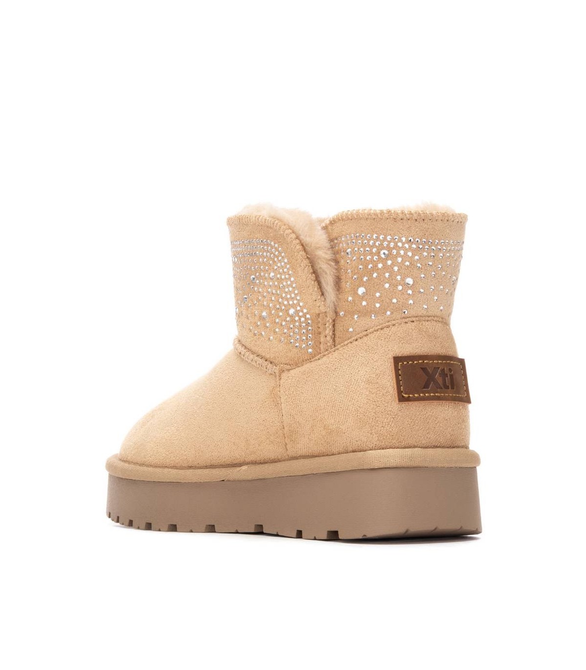 Botín tipo australiano de niña, de la marca Xti Kids. Fabricado en suave antelina, con un acabado cálido y confortable ideal para los días fríos. Su diseño clásico y minimalista se complementa con un interior afelpado que aporta mayor calidez. Cuenta con suela de goma antideslizante para una pisada segura y estable. Perfecto para el uso diario durante el otoño e invierno. Este modelo ha obtenido el certificado vegano por la organización mundial PETA (Organización de los derechos de los animales).